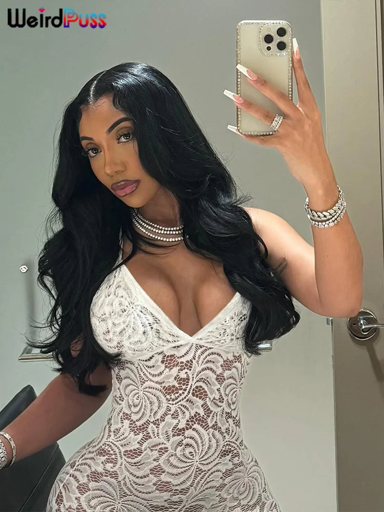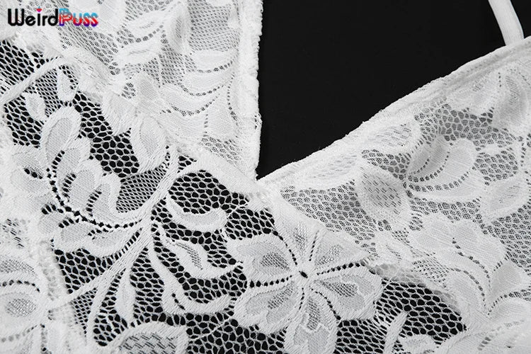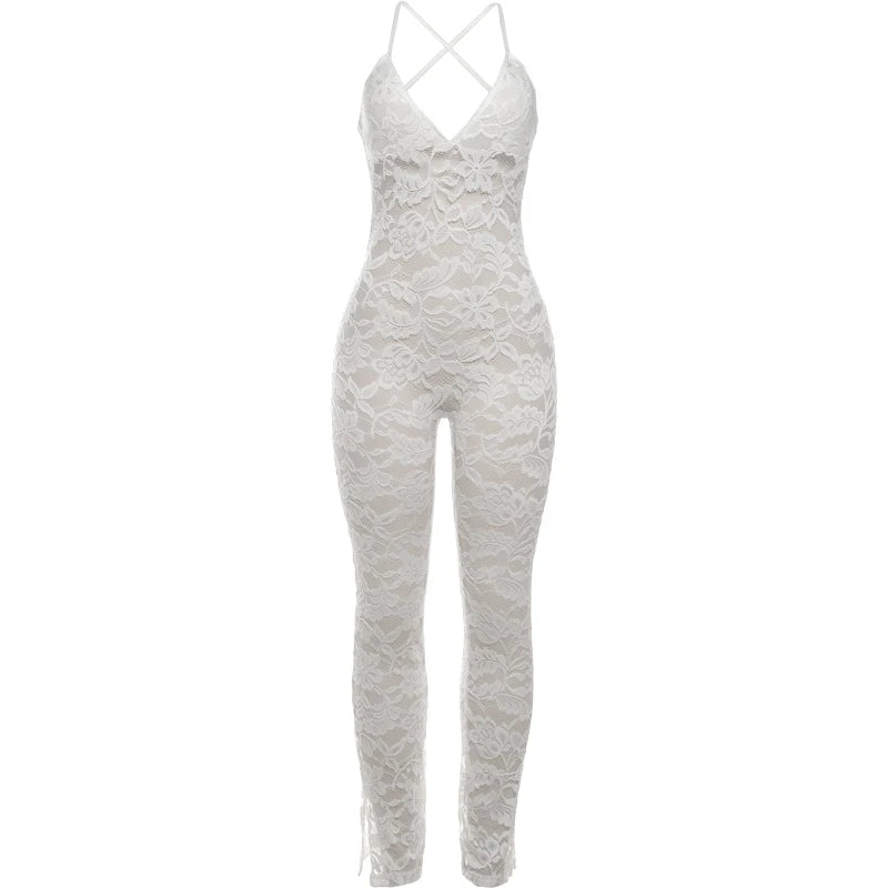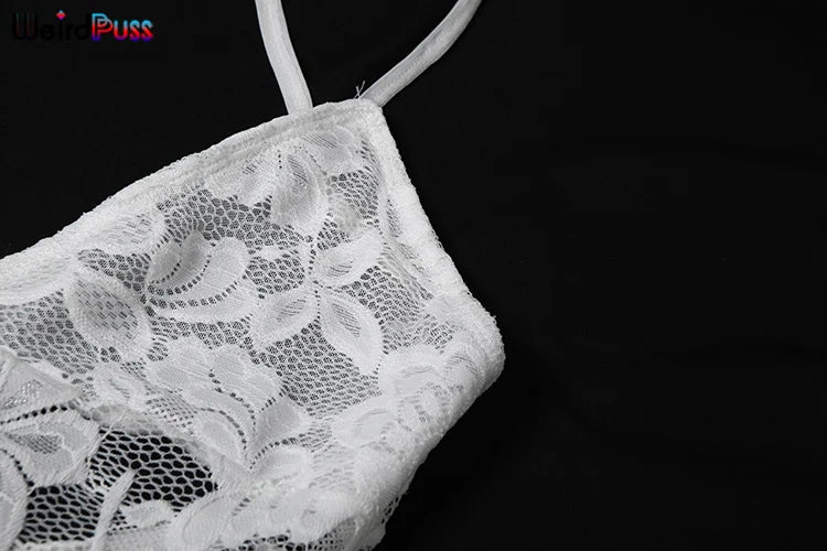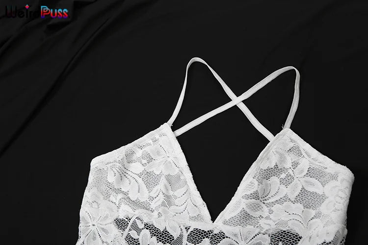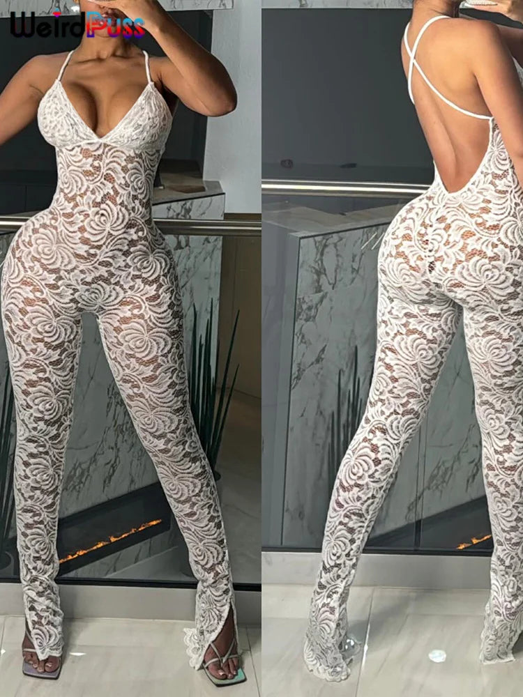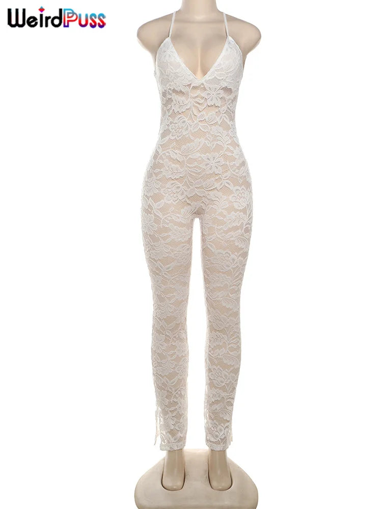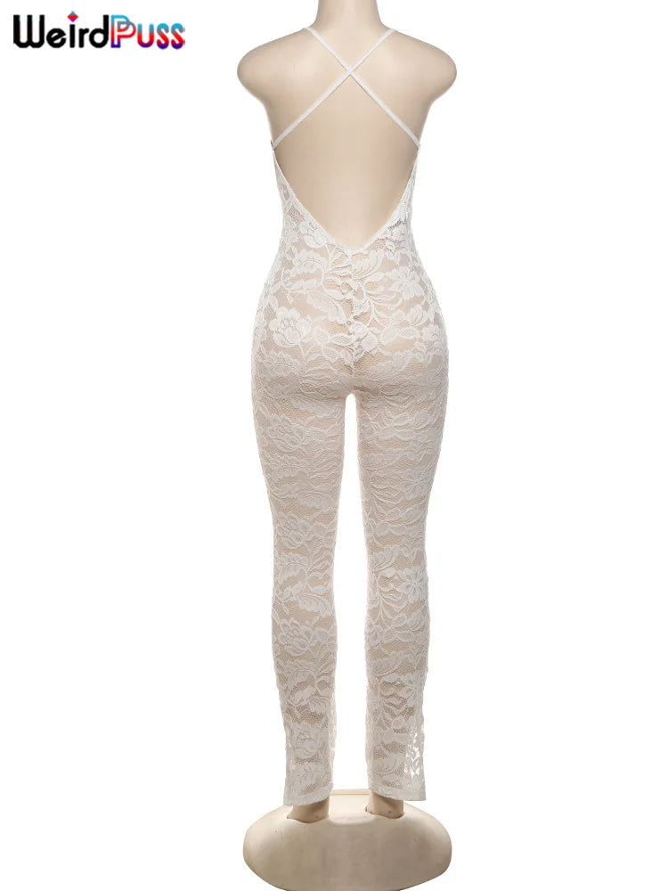 Weird Puss Cross Backless Jumpsuit Women Sexy See Thorough v-Neck Sleeveless Summer Coquette Stretch Activity Workout Overalls