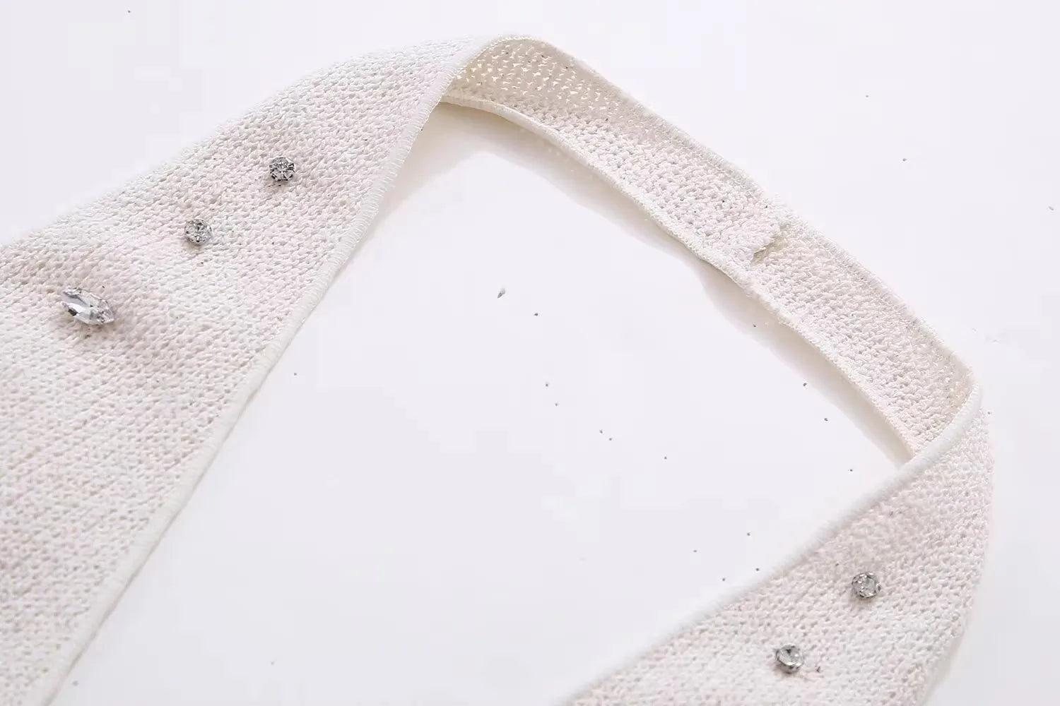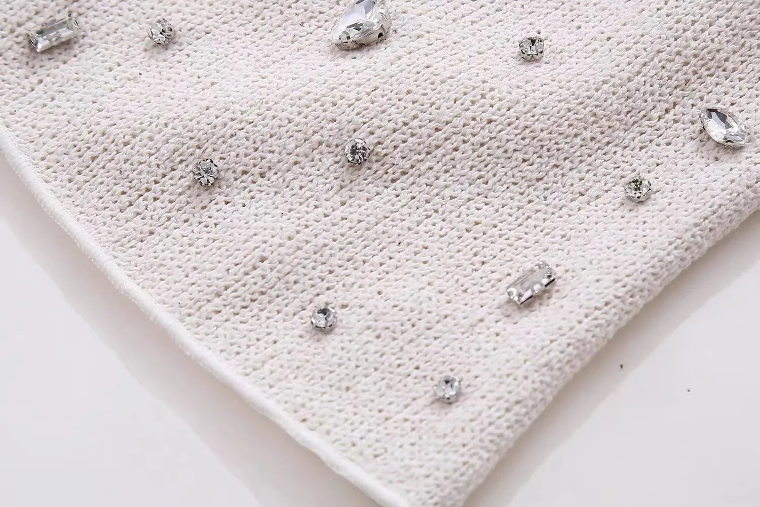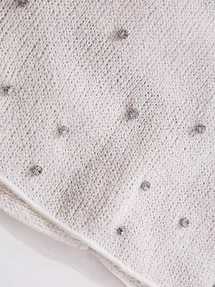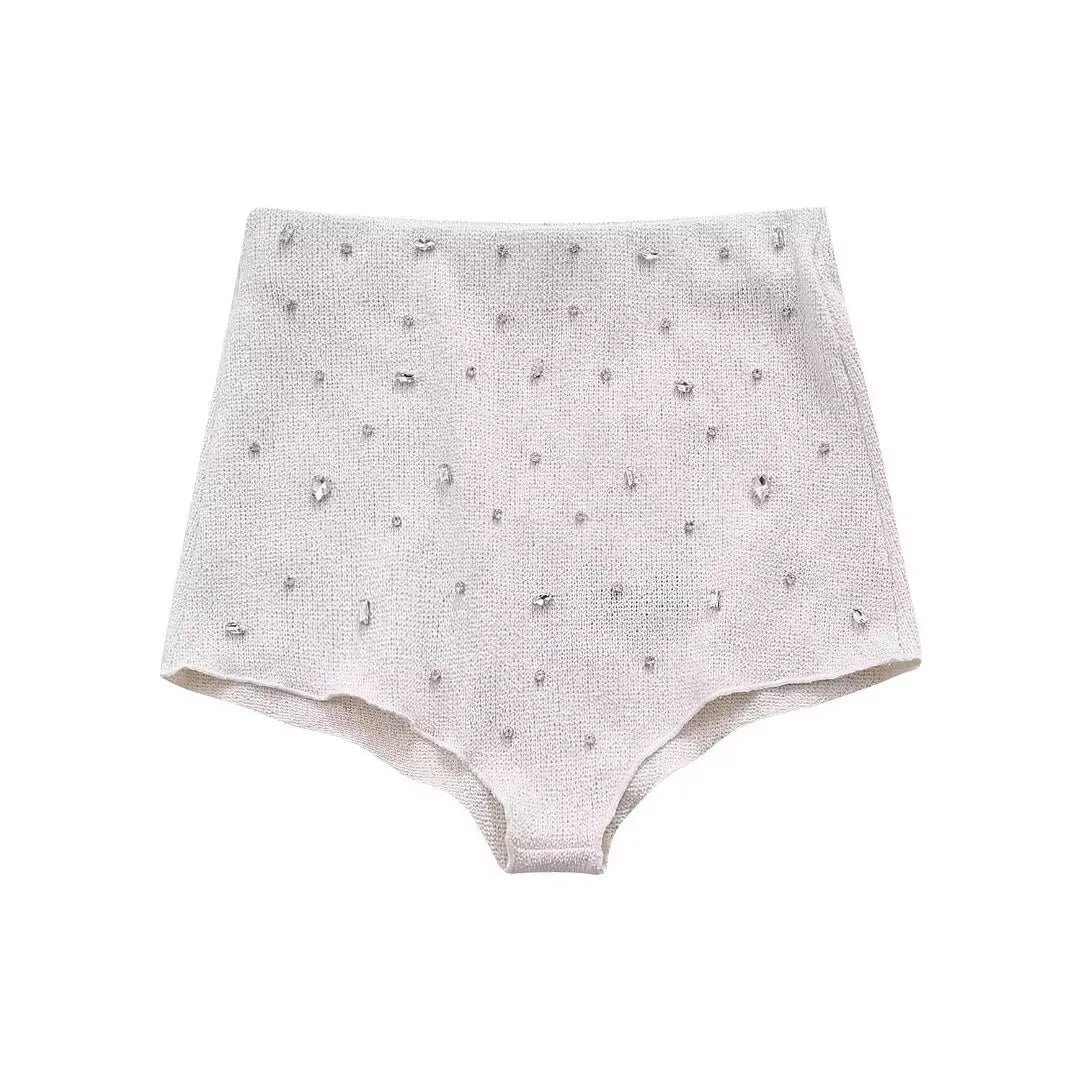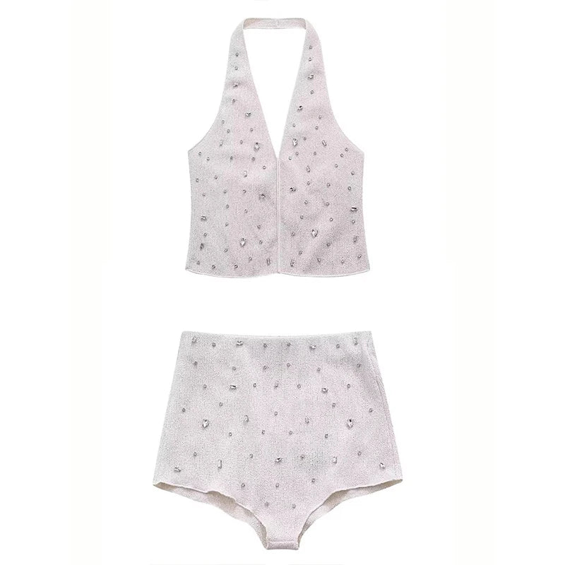 Weird Puss Diamond Women 2 Piece Set Luxury Knit Halter Backless Tank Tops+Shorts Casual Matching Streetwear Stretch Simple Suit
