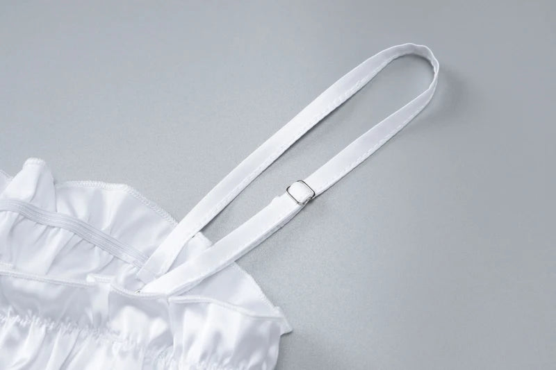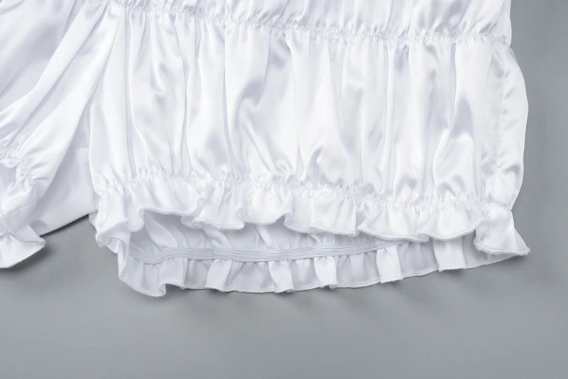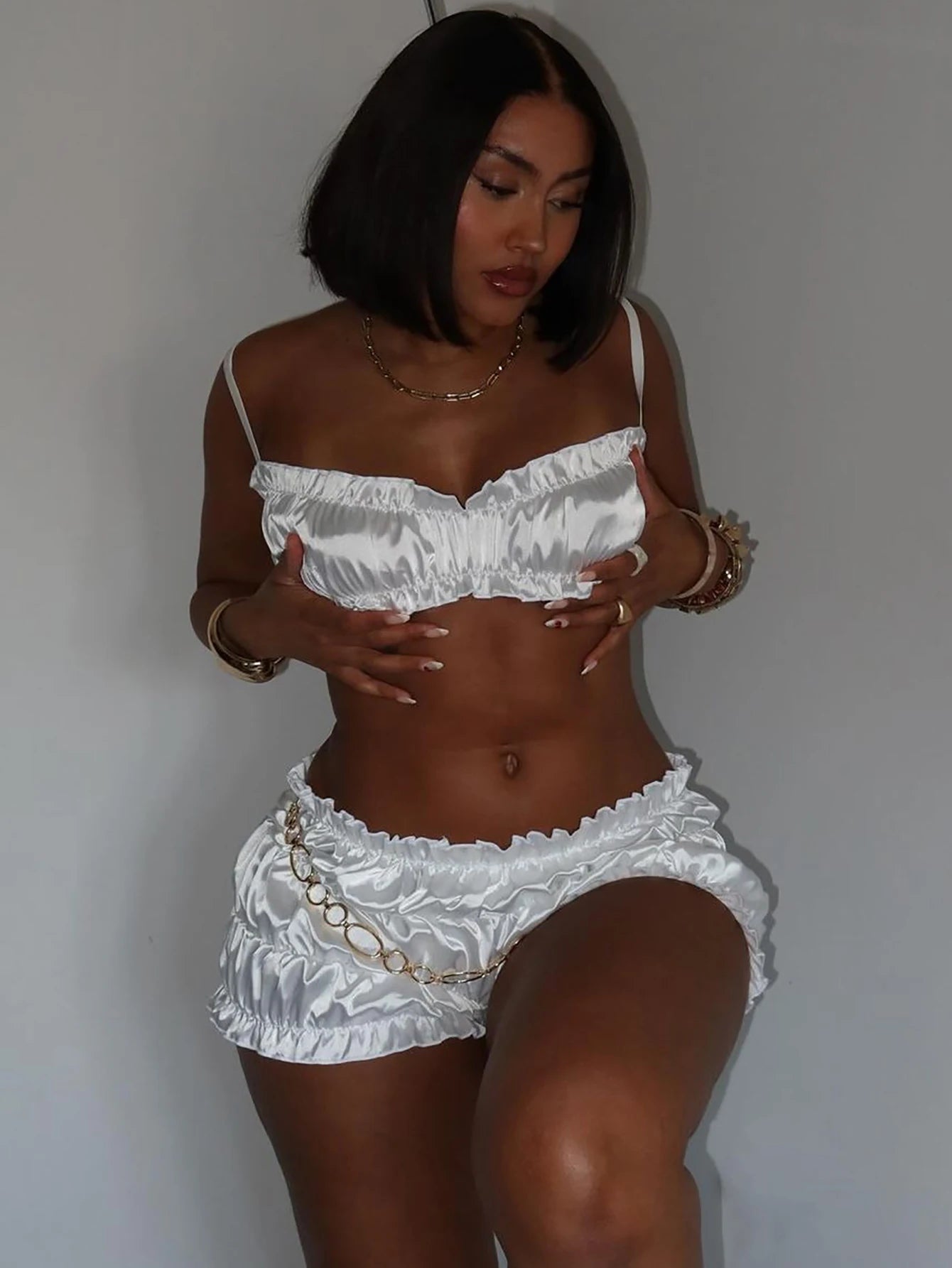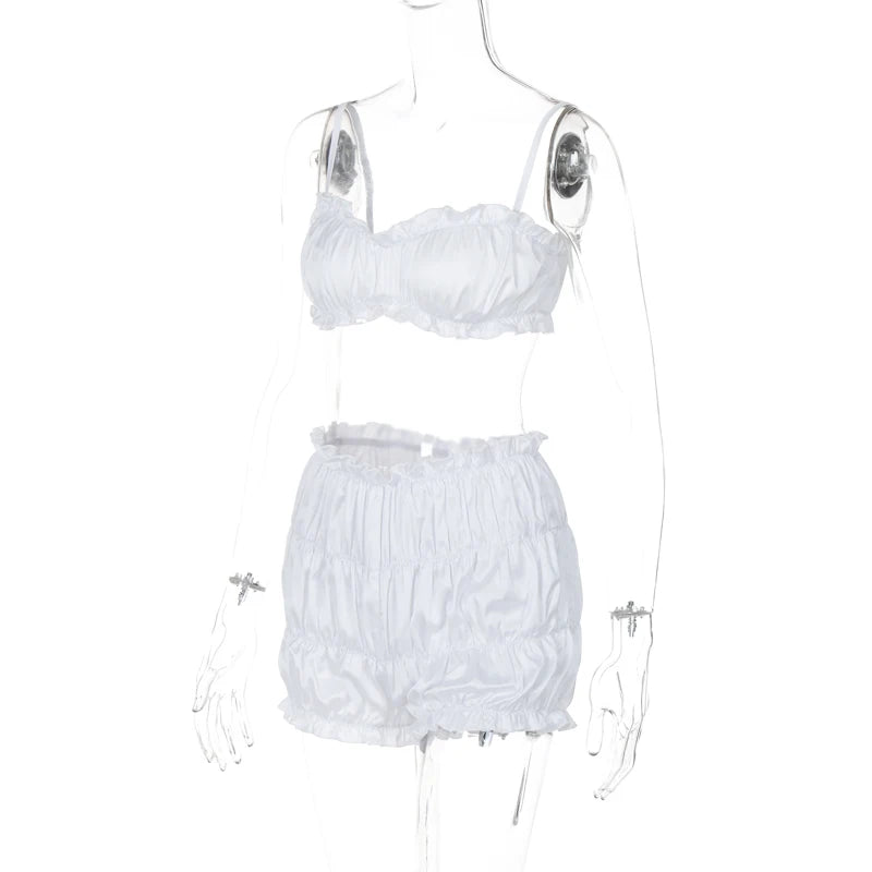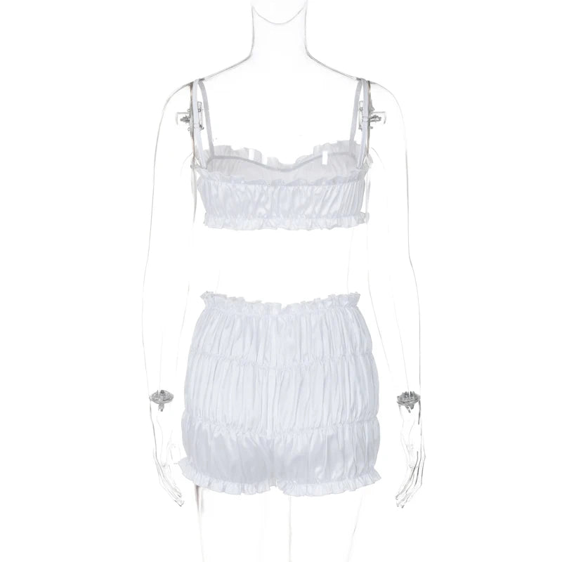 Weird Puss Elegant Trend Women 2 Piece Set Ruched Tracksuit Summer Sexy Ruffles Skinny Camisole+Shorts Casual Streetwear Outfits