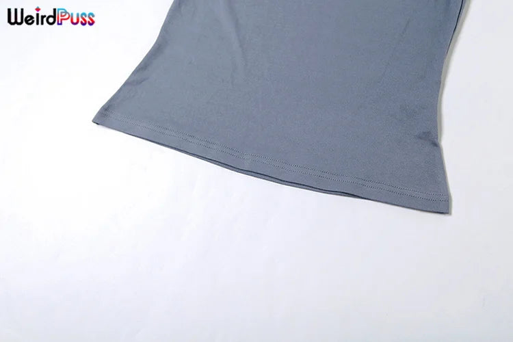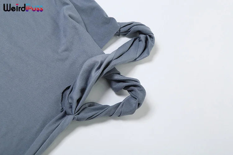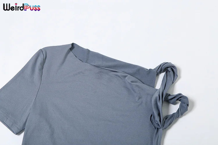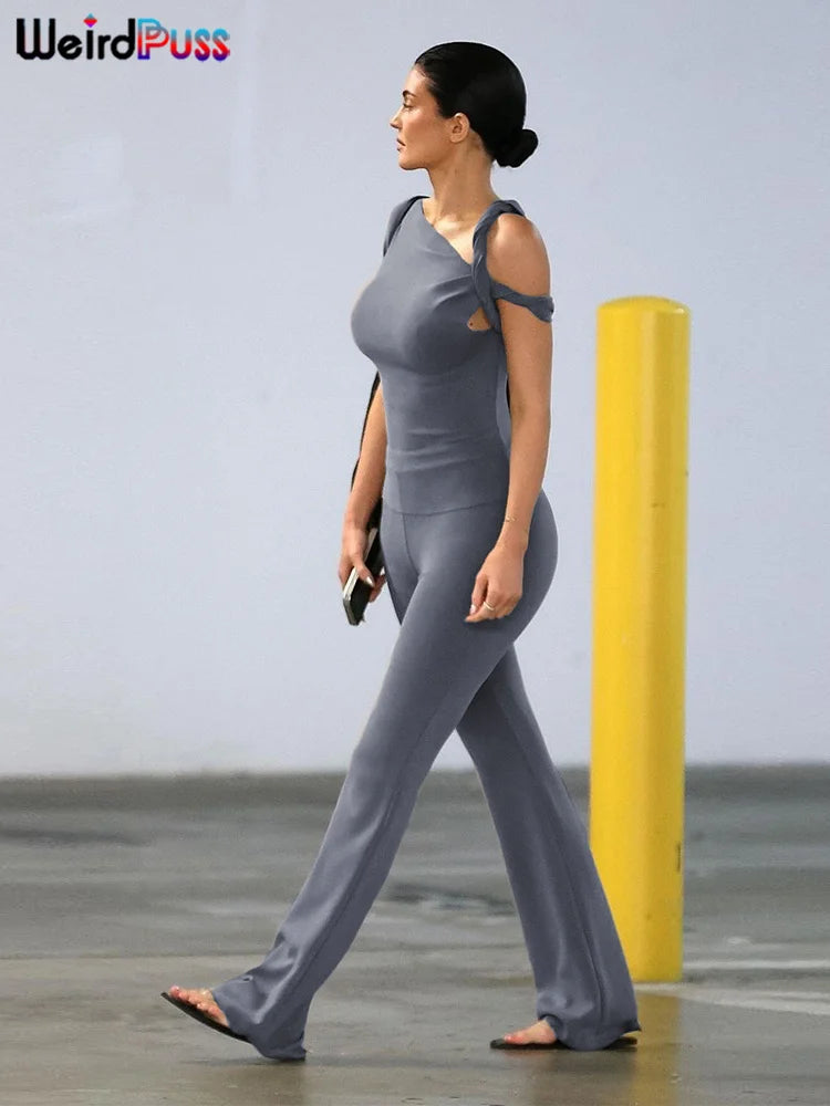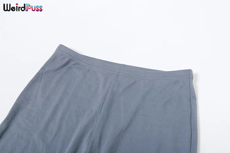 Weird Puss Elegant Women 2 Piece Set Stretch Irregular Knot Short Sleeve Tank Tops+Flare Pants Matching Stretch Slim Streetwear