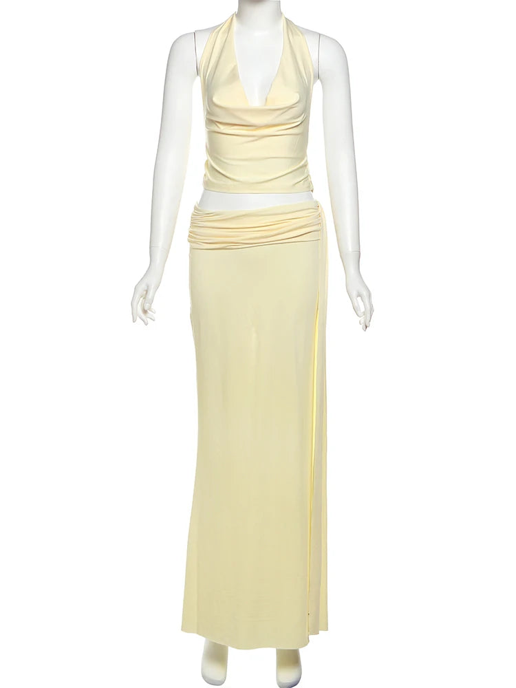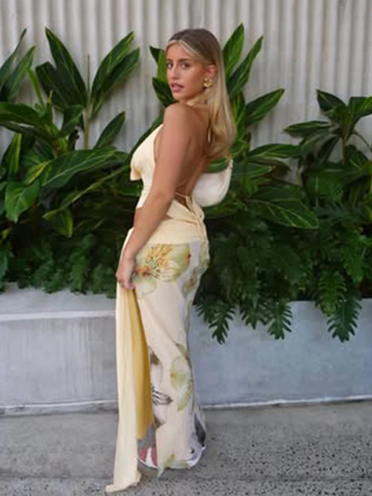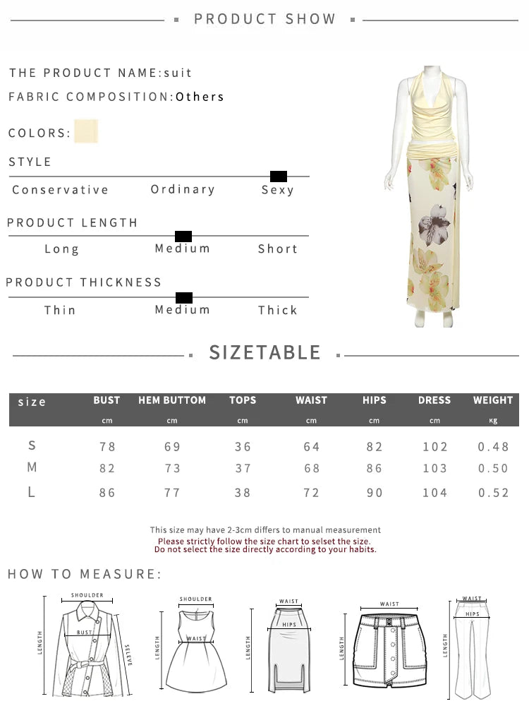 Weird Puss Elegant Women 3 Piece Set Stack Trend Halter Tops+Split Tassel Tassel+Flowers Mesh Skirts Matching Vacation Clubwear