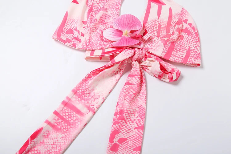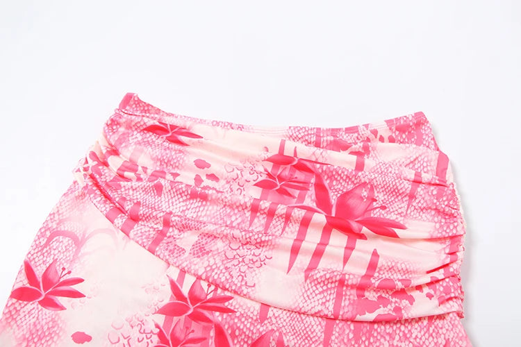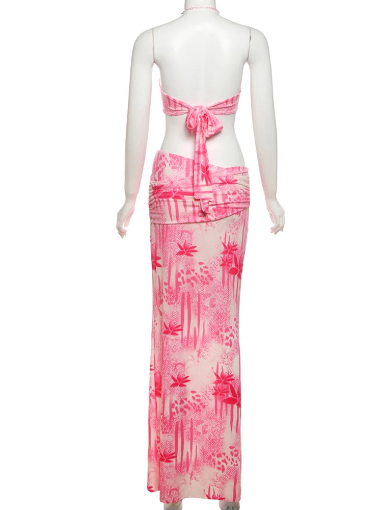 Weird Puss Fashion Patchwork 2 Piece Set Women Pearls Necklace Halter Applique Crop Tops+Skinny Skirts Vacation Beach Style Suit