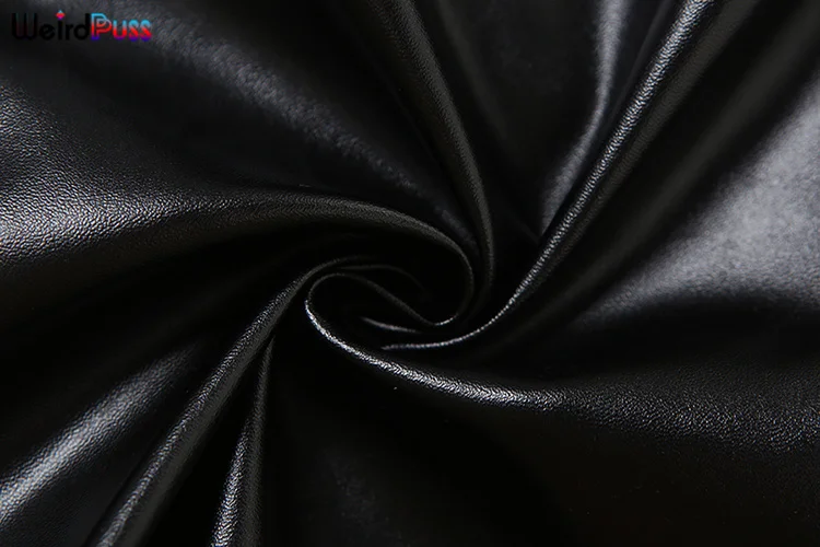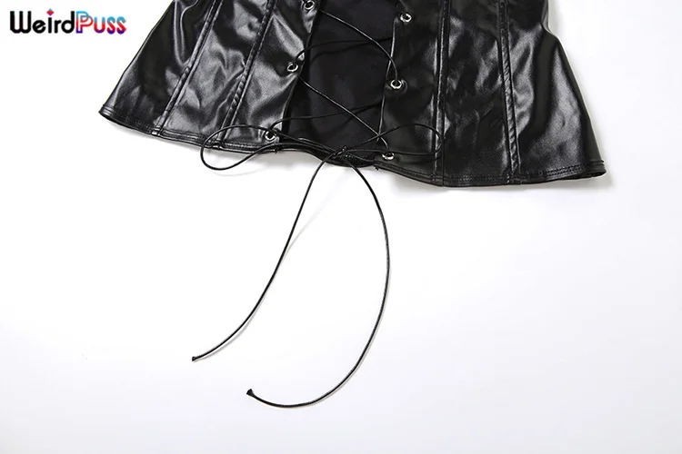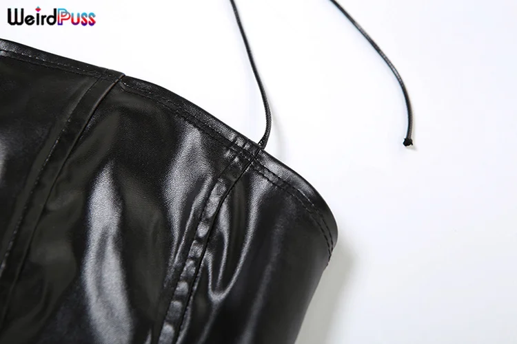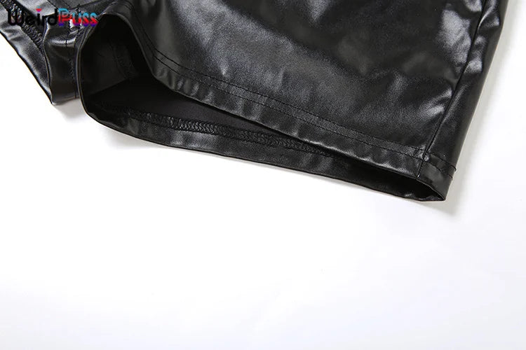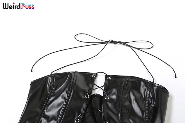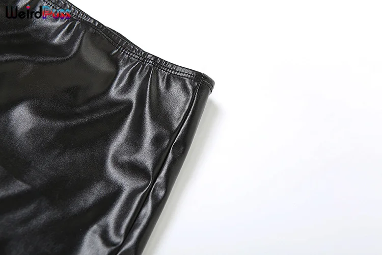 Weird Puss Faux Leather Sexy 2 Piece Set Women Hipster Strapless Shirring Hollow Strapless Tops+Shorts Midnight Clubwear Outfits