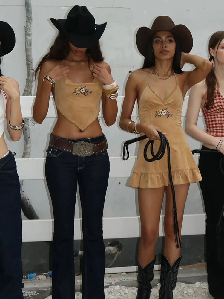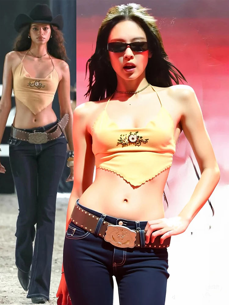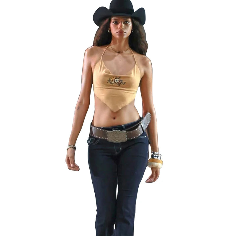 Weird Puss Flower Print Camisole Women Y2K Irregular Backless Halter Simple Classic Summer Sexy Wild Midnight Street Tank Tops