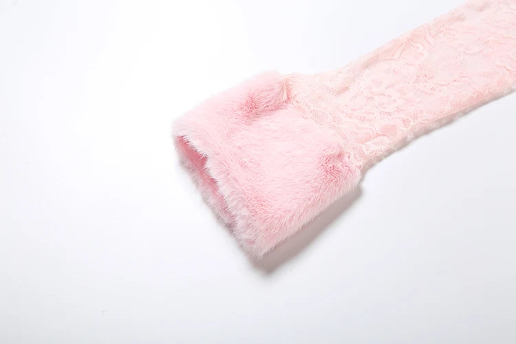 Weird Puss Furry Jacquard Patchwork 2-Piece Set Women Hook Buckle Crop Top+Stretch Ruched Peach Hip Skirt Sexy Skinny Outfits