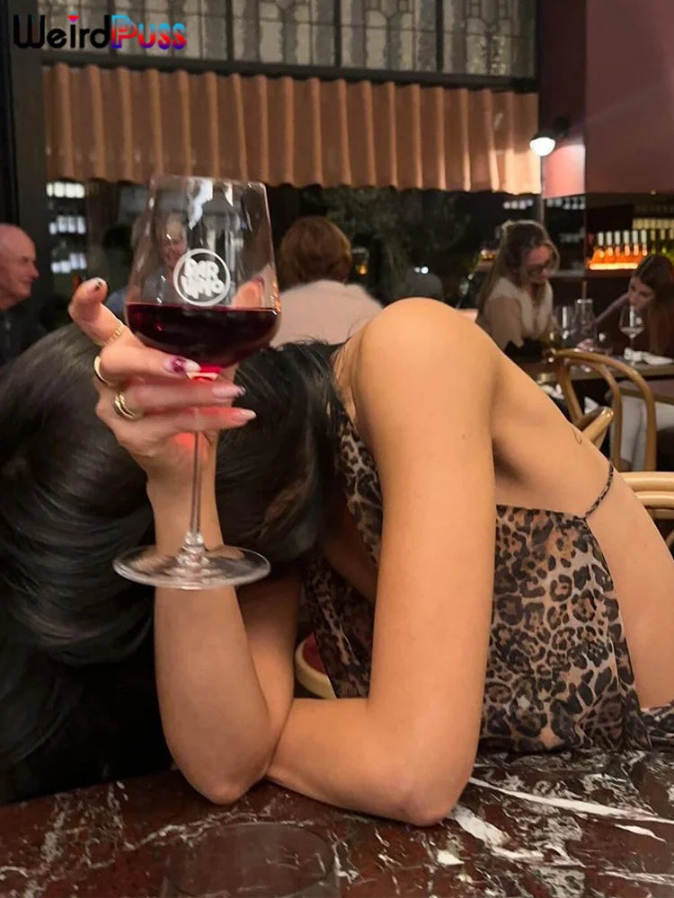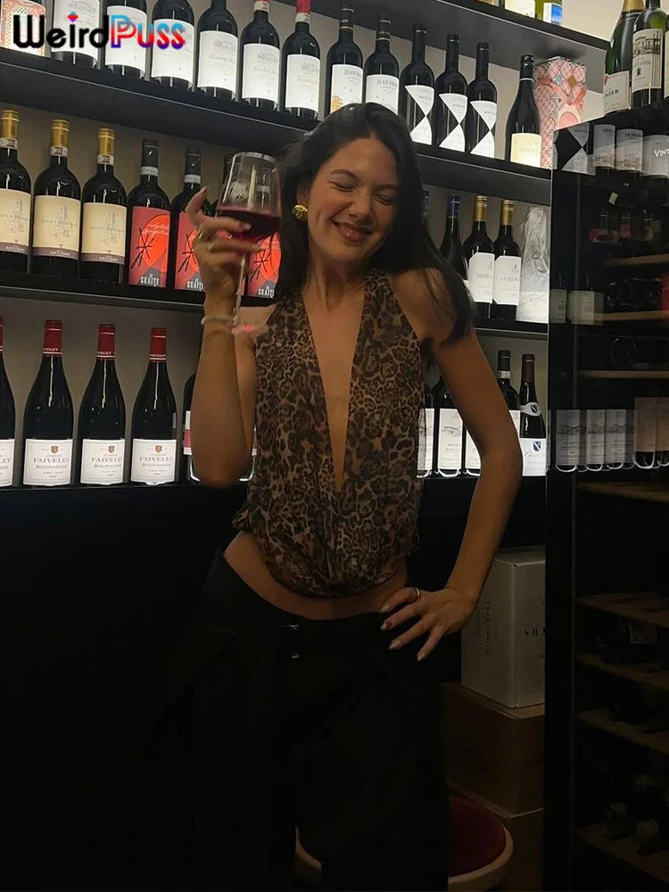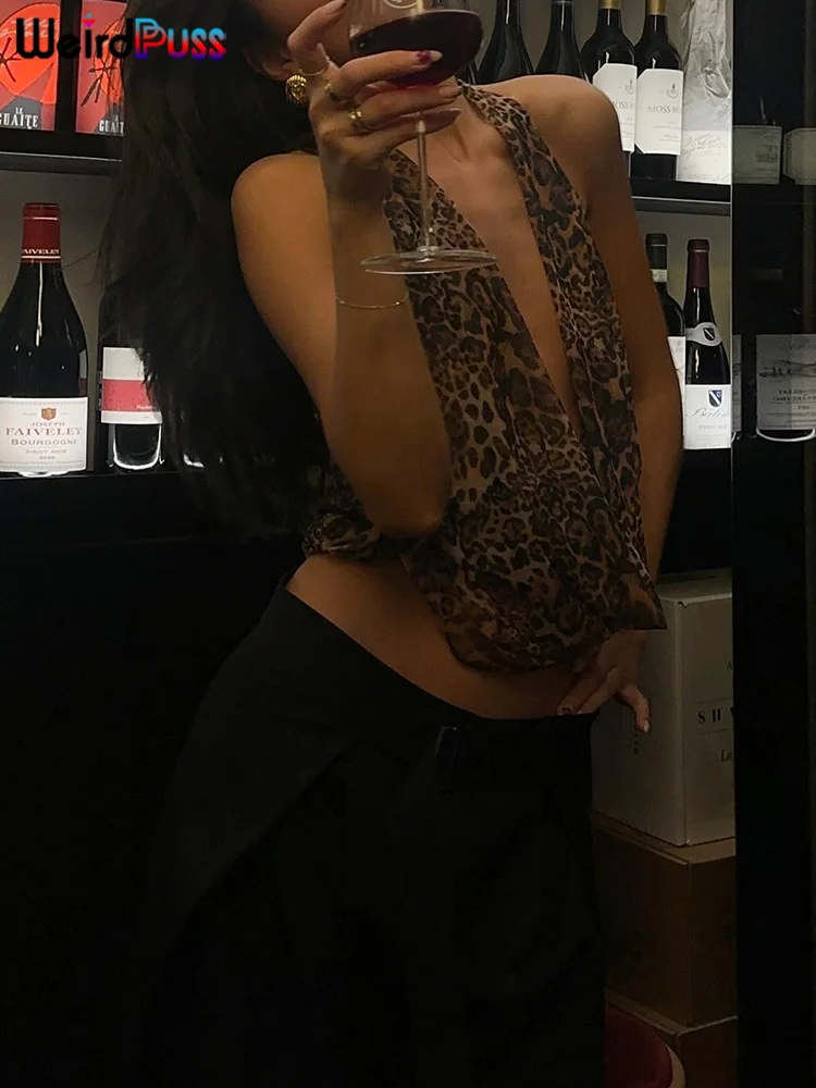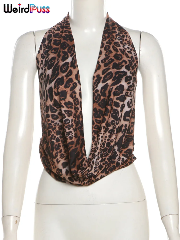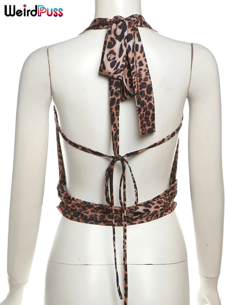Weird Puss Halter Backless Tank Tops Women Sexy Hipster Swing Collar Leopard Print Summer Trend Hot Chick Wild Streetwear Vest