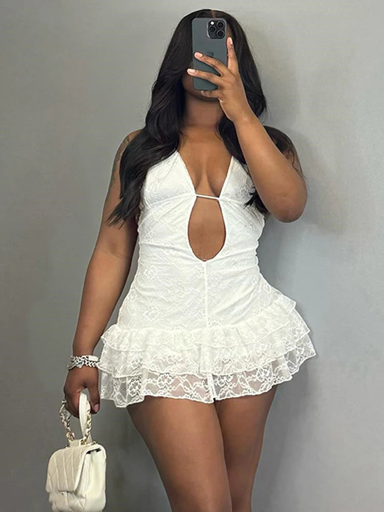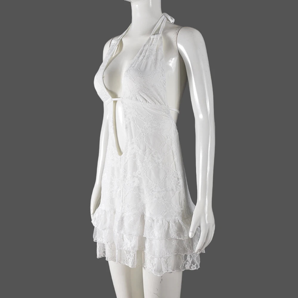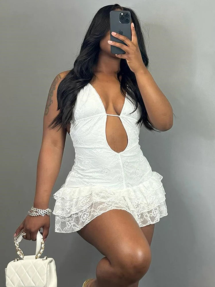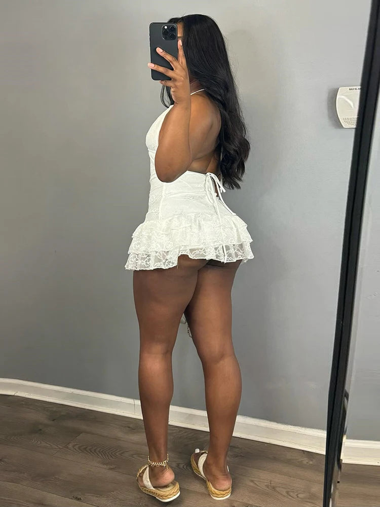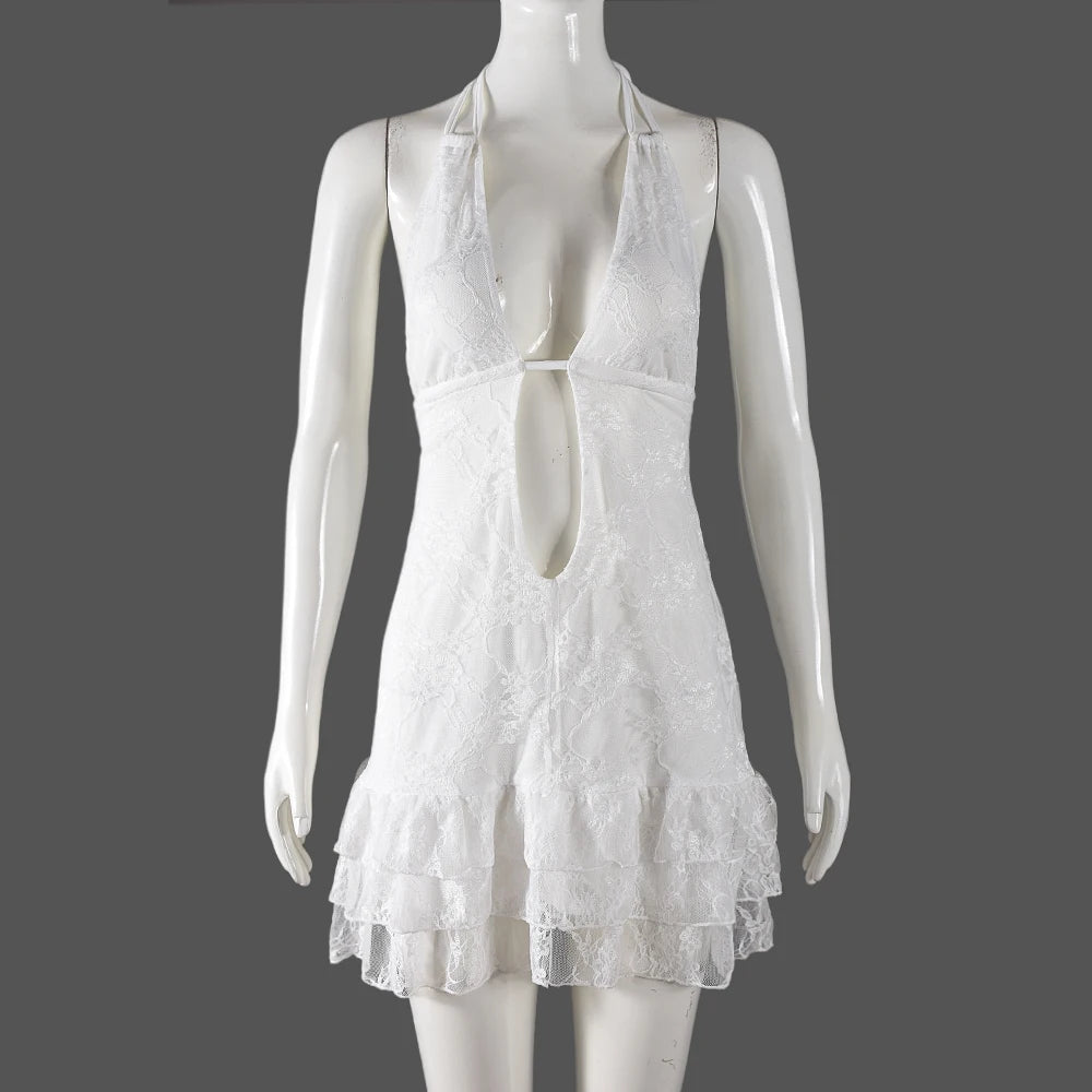 Weird Puss Halter Tierred Cake Dress Low-Neck Sexy Backless Midnight Party Coquette Summer Trend Stretch Vacation Rave Bodycon