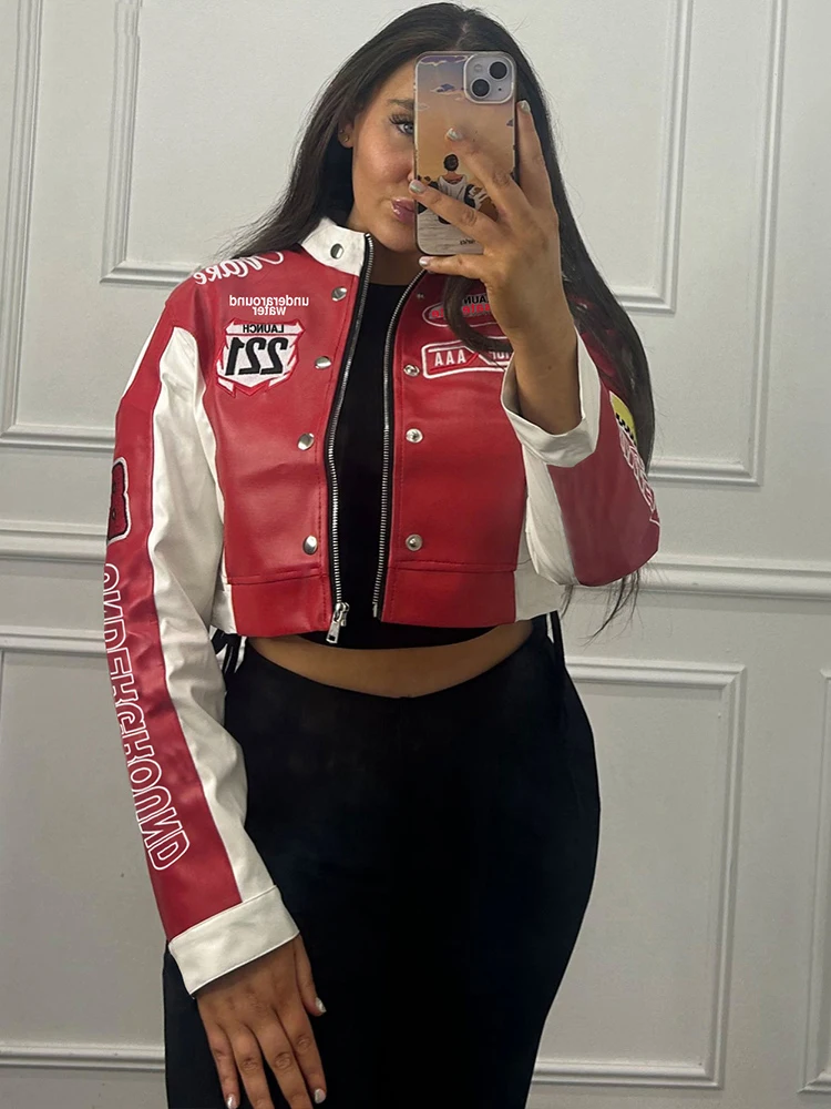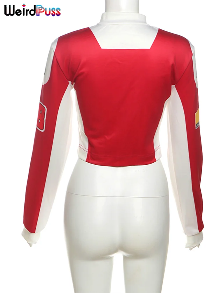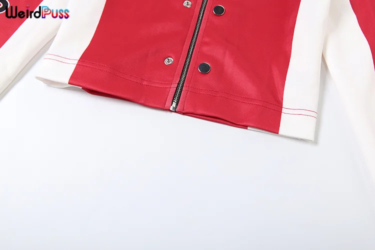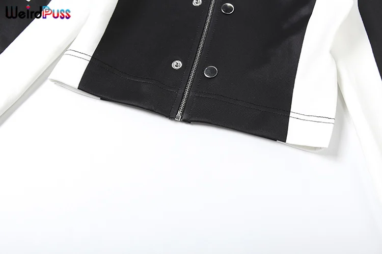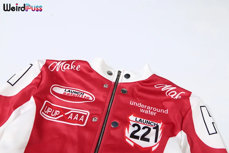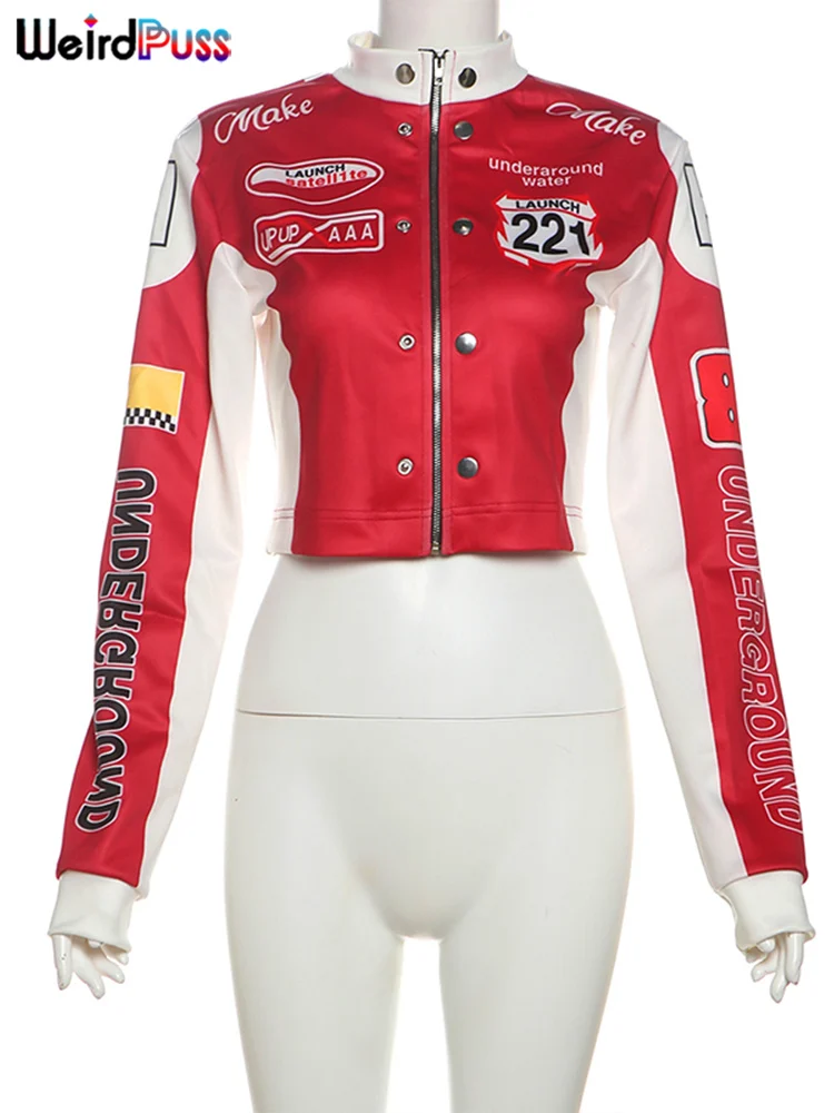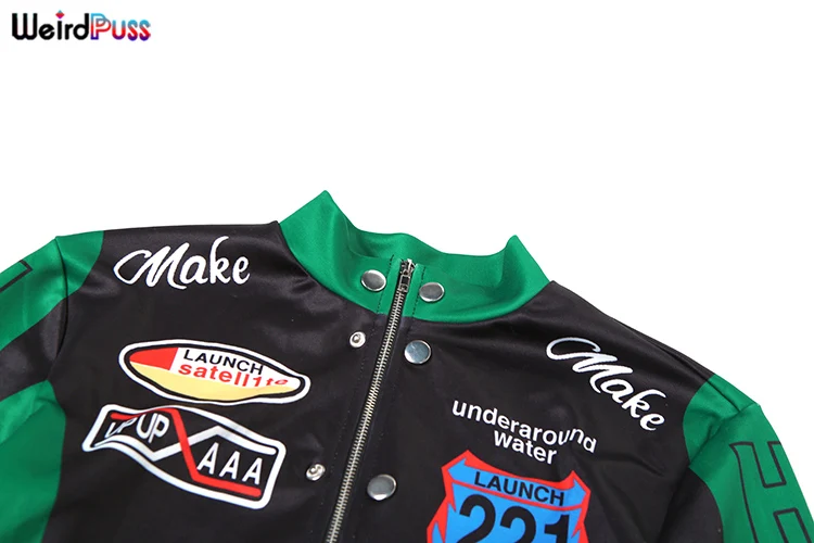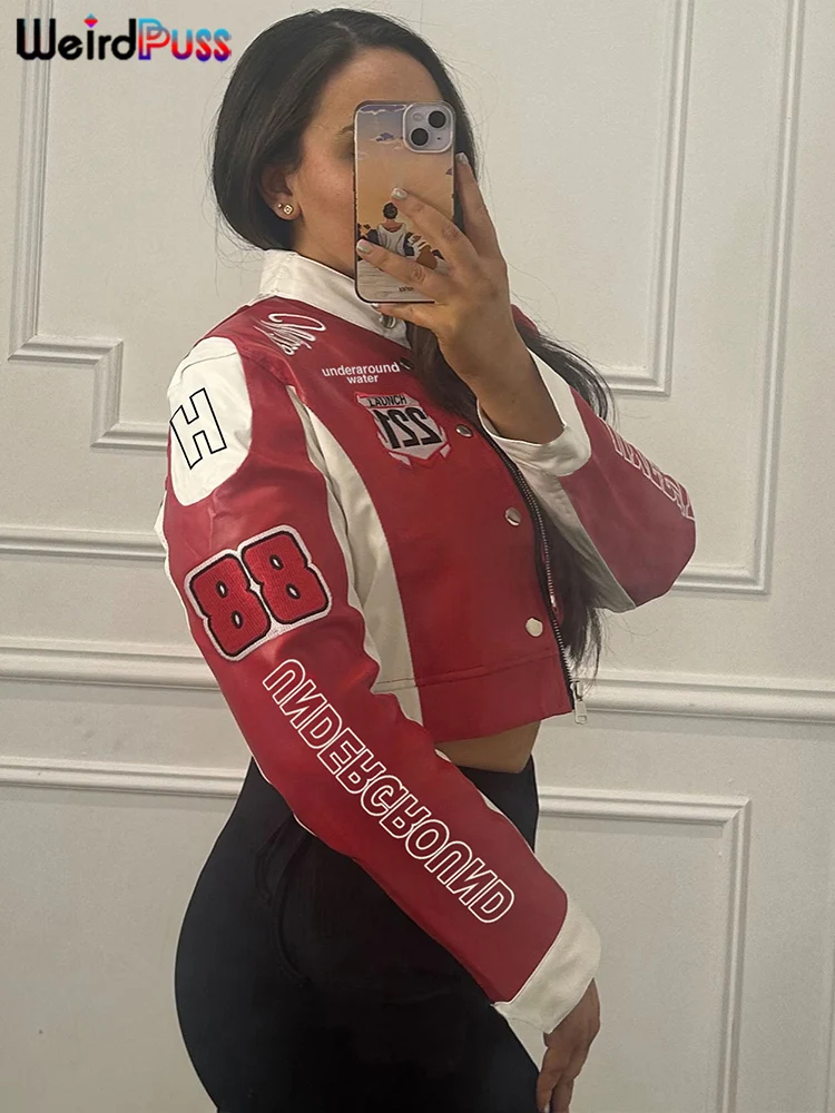 Weird Puss Hipster Patchwork Jacket Women Y2K Letter Print Hipster Uniform Street Single-Breasted Hipster Autumn Trend Zip Coat