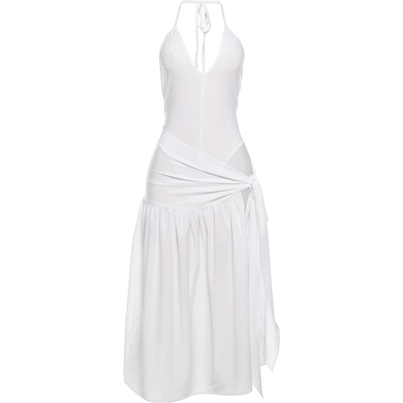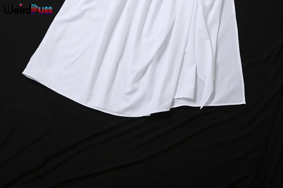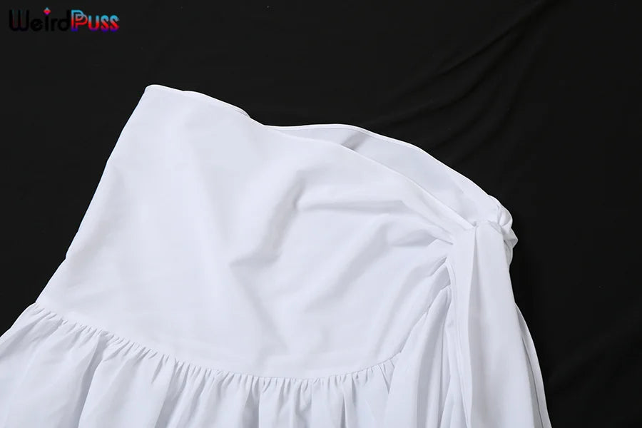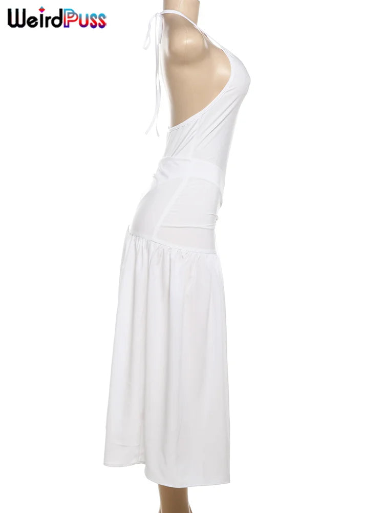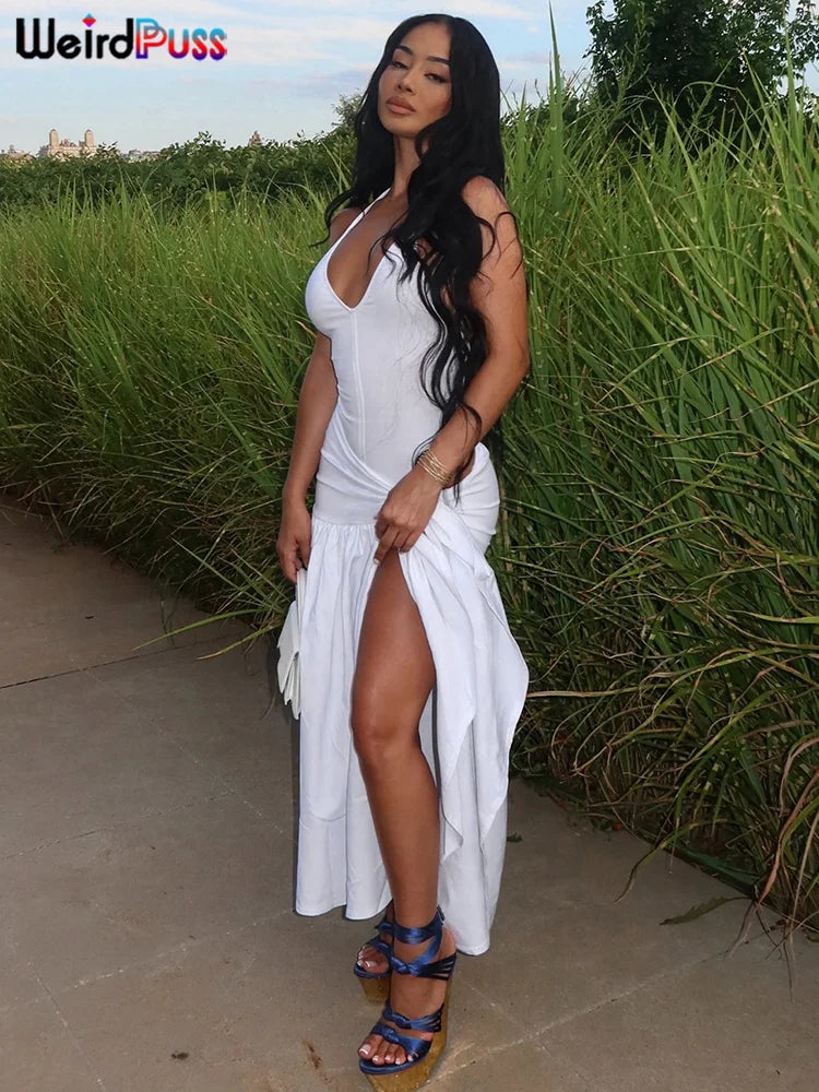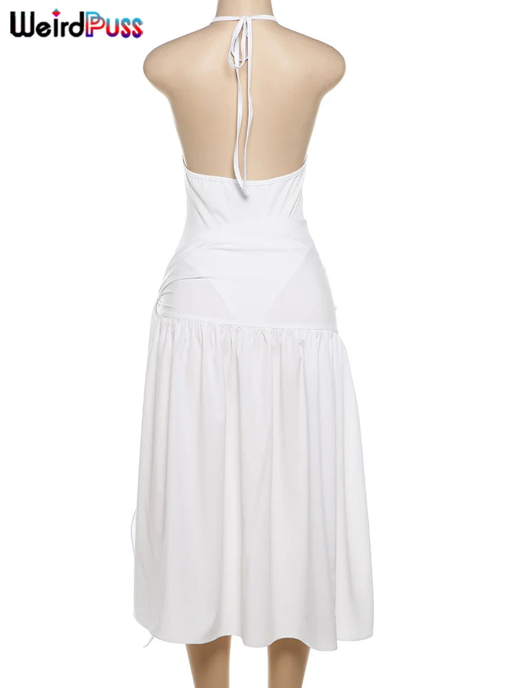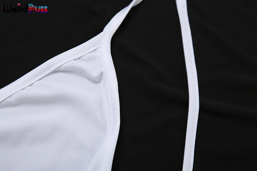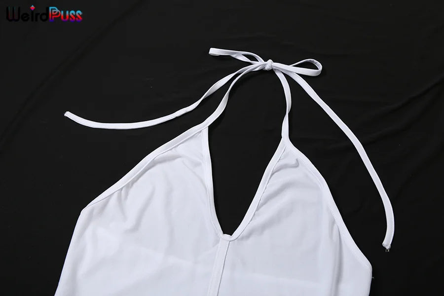 Weird Puss Hipster Solid 2 Piece Set Women Summer Trend Elegant Halter Bodysuit+Wrapped Long Skirts Matching Clubwear Outfits