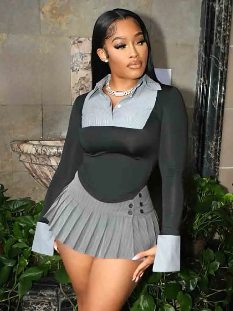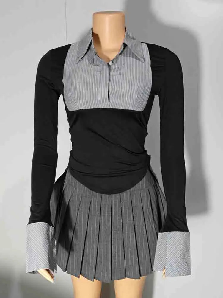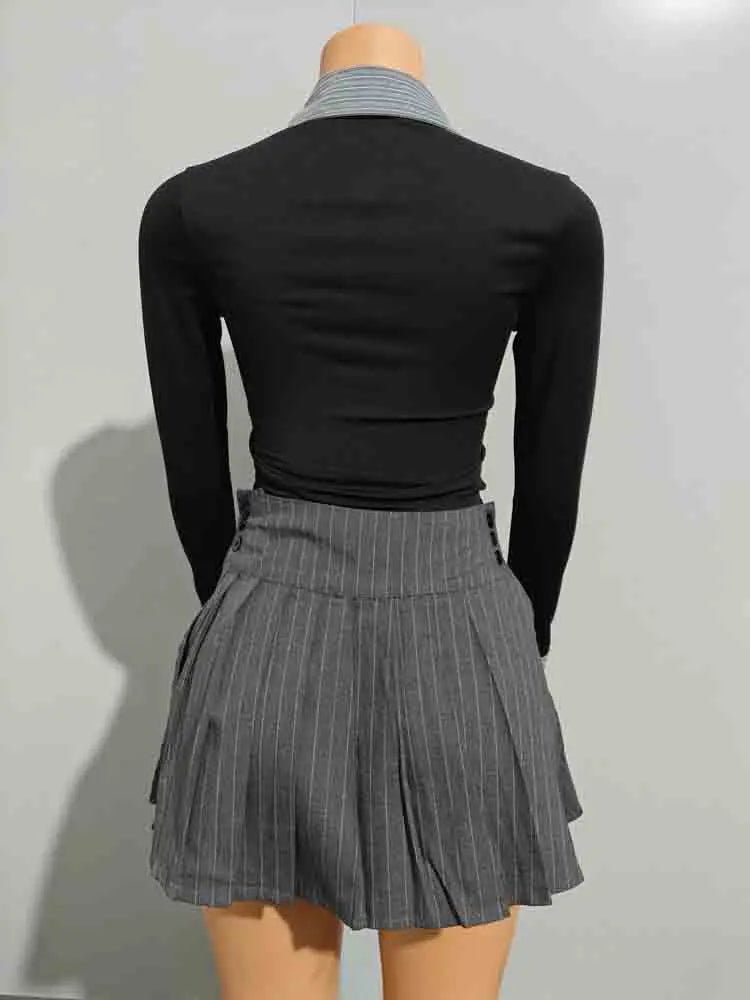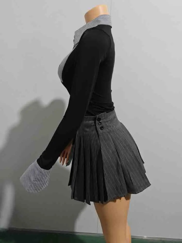 Weird Puss Hipster Women 2 Piece Set Y2K Chic Patchwork Irregular Button Crop Tops+Pleated Skirts Matching Club Skinny Outfits