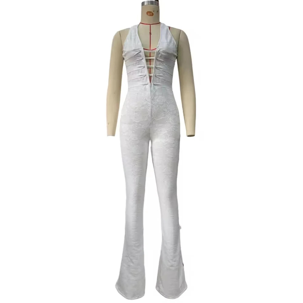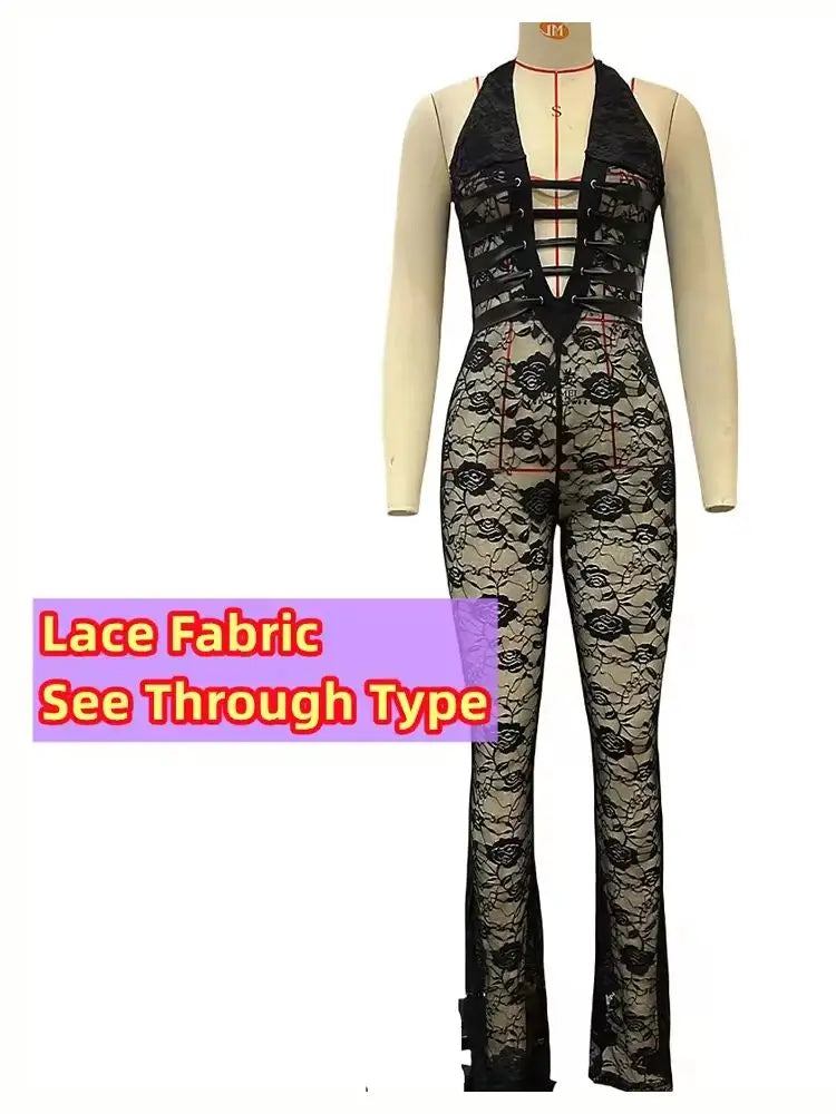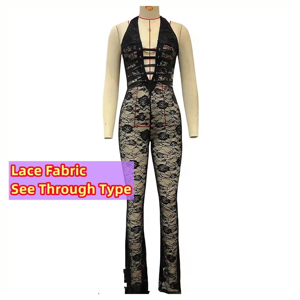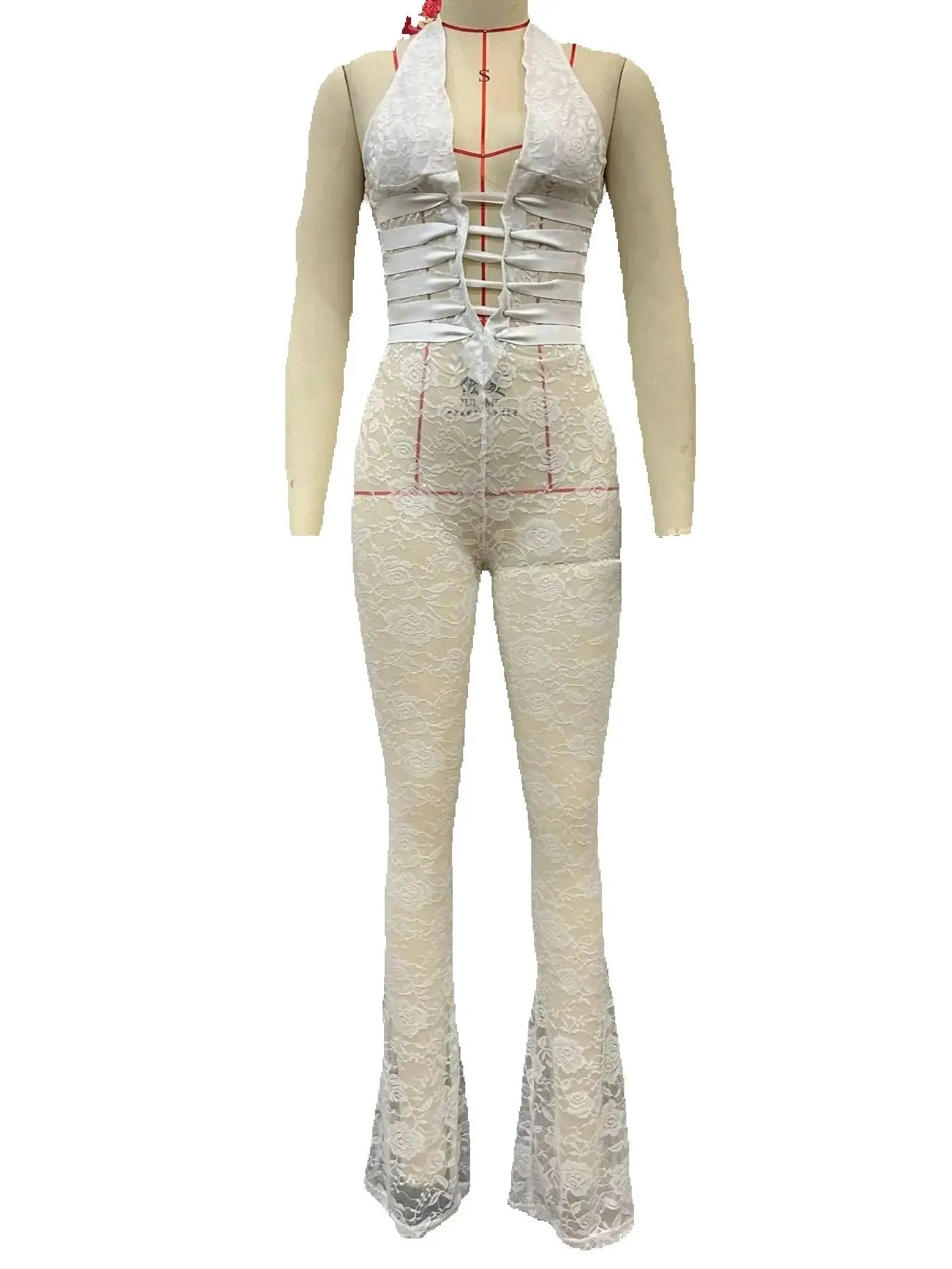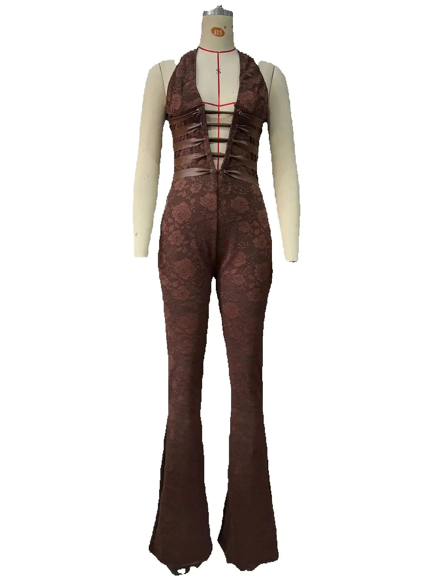Weird Puss Hollow Bandage Jumpsuits Women Halter Sexy Jacquard Backless Sleeveless Skinny Street Workout Club Hipster Overalls