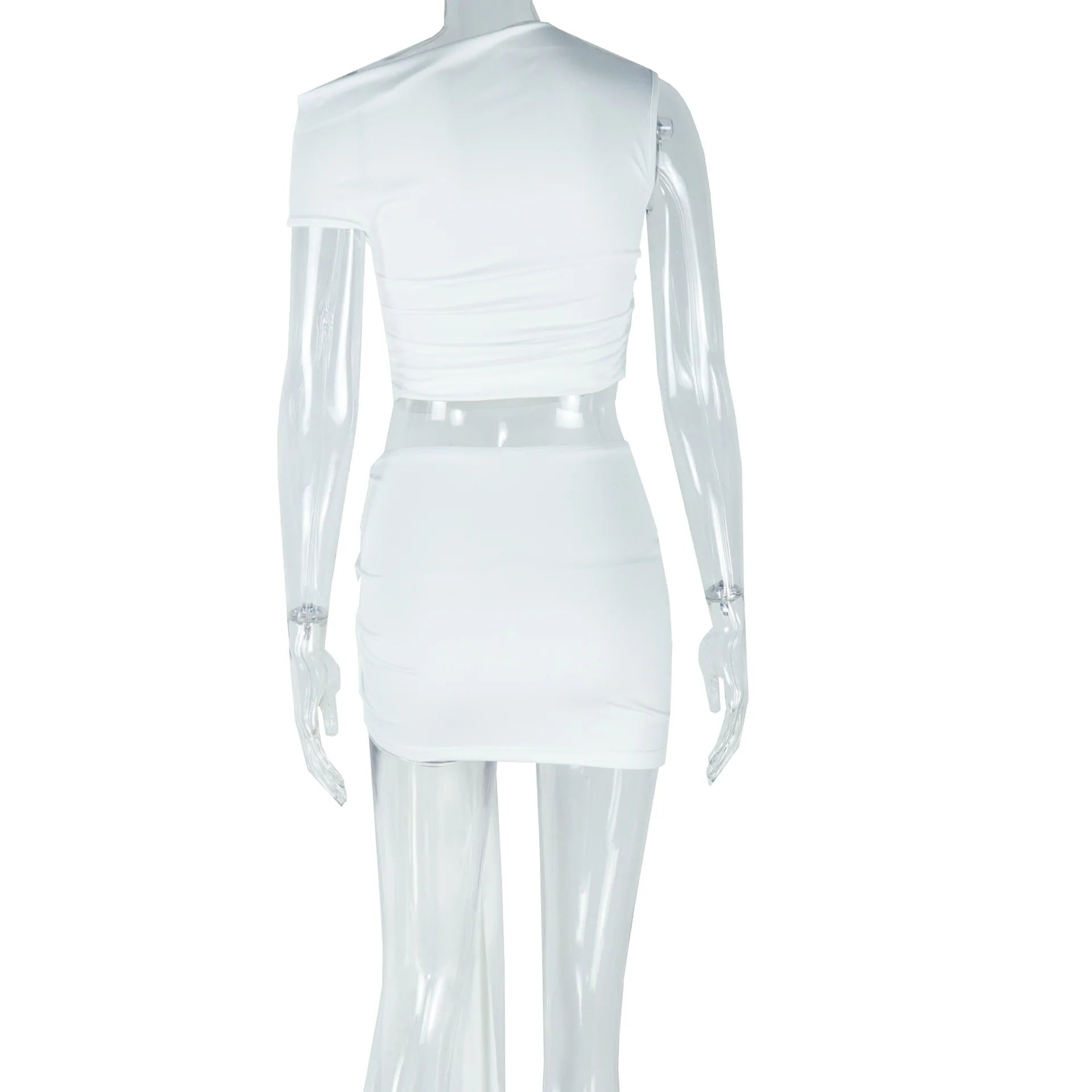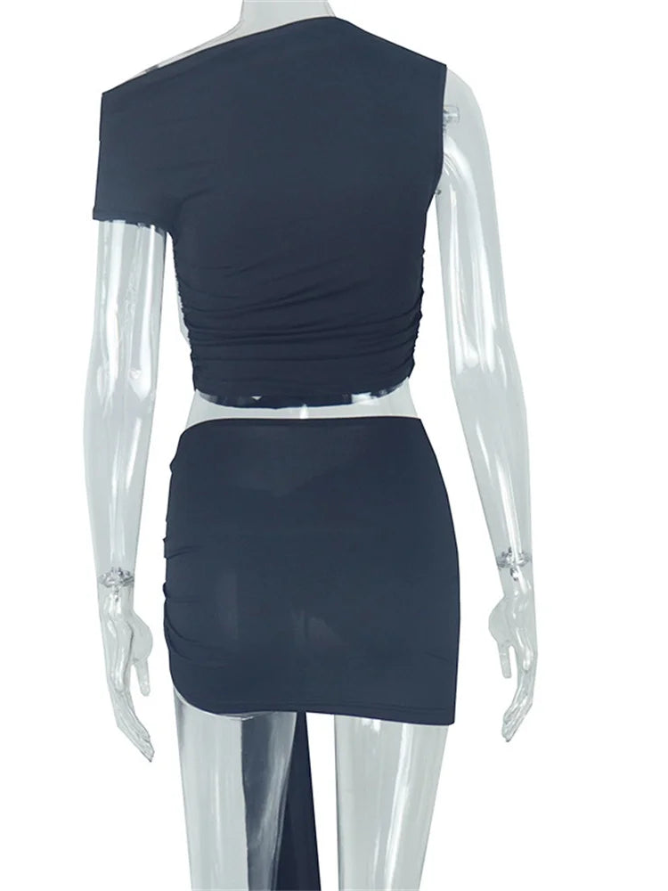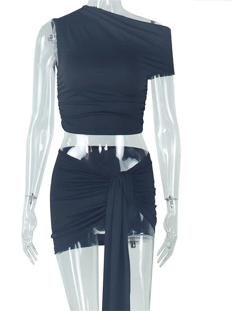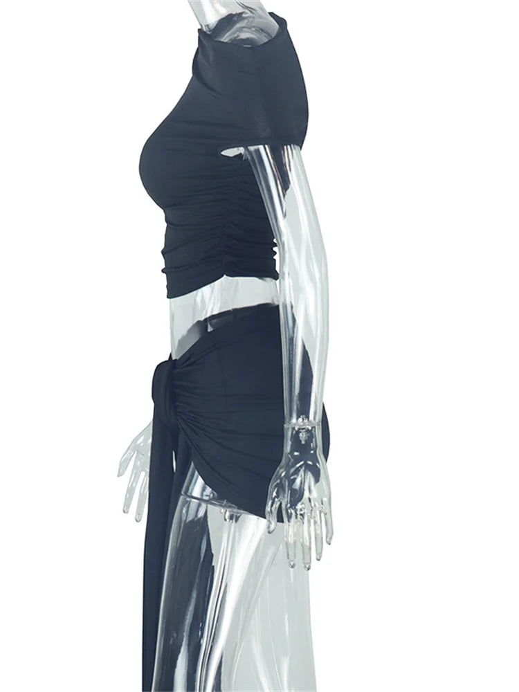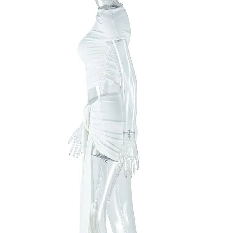 Weird Puss Hottie Ruched 2 Piece Set Women o-Neck Sleeveless Crop Tops+Skinny Bandage Tassel Skirts Matching Elegant Trend Suits