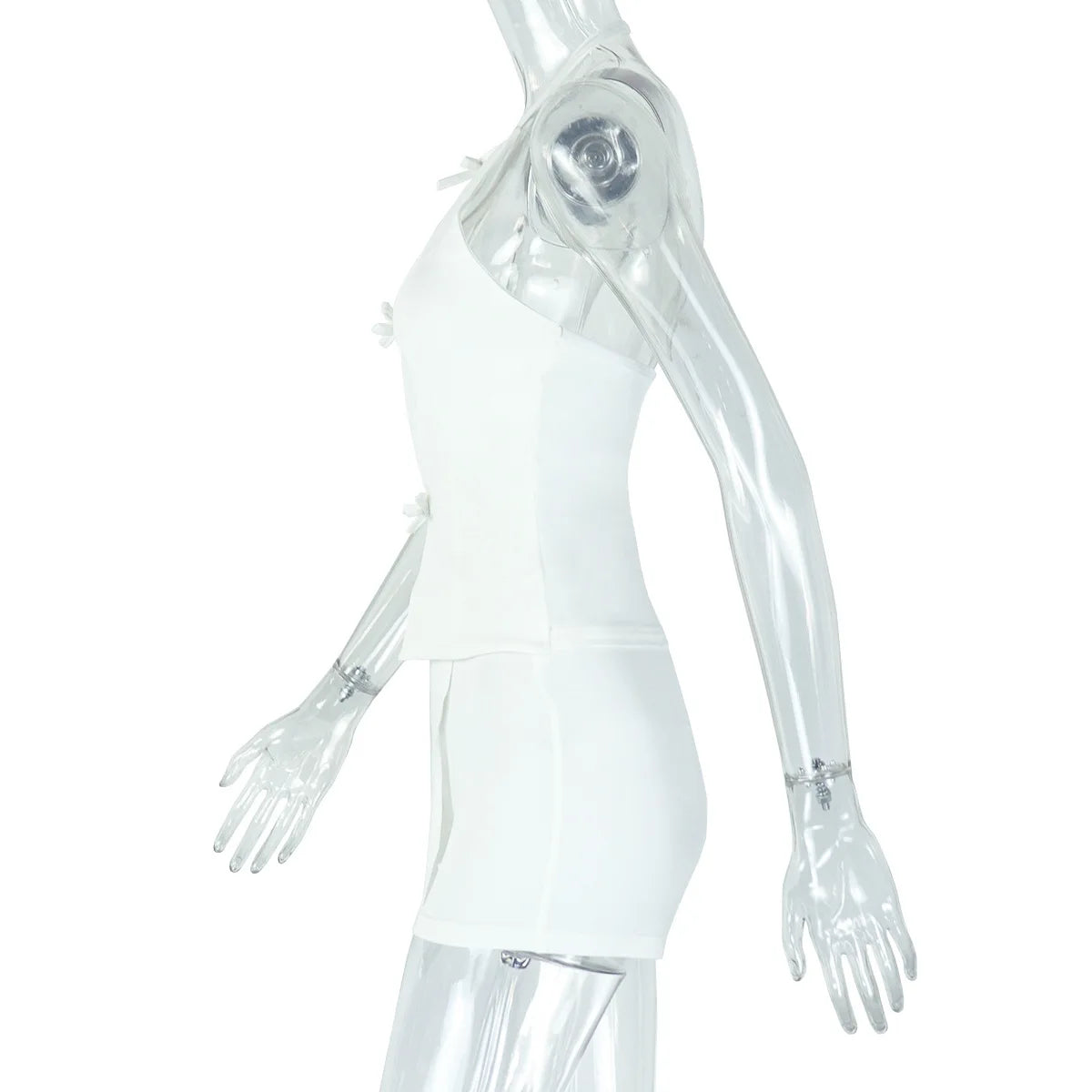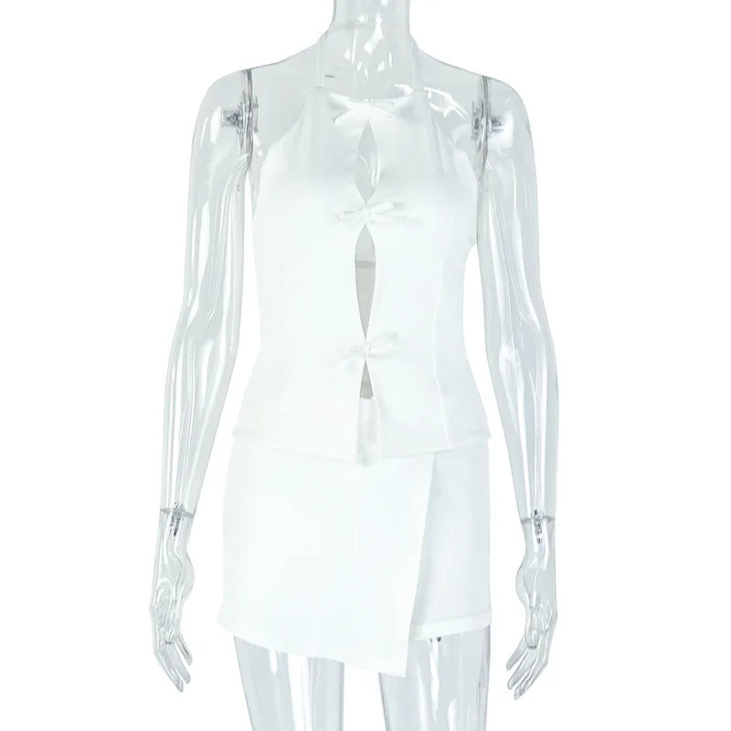 Weird Puss Irregular Sexy 2 Piece Set Women Halter Hollow Knot Backless Tops+Skinny Peach Hip Skirts Midnight hottie Wild Suits