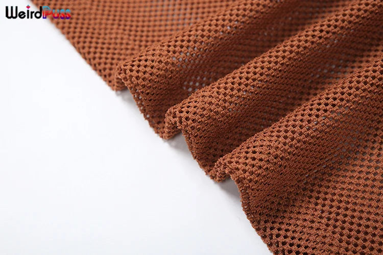 Weird Puss Knit Sexy Women 2 Piece Set Summer Trend Metal Chain Camisole+Bandage Long Skirts Vacation Matching Midnight Clubwear