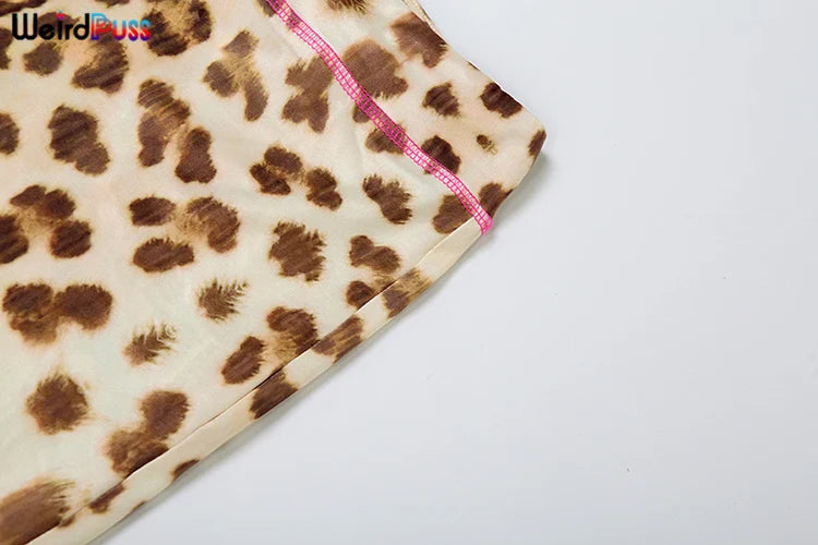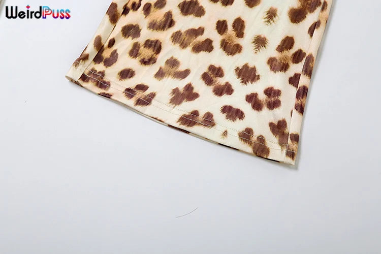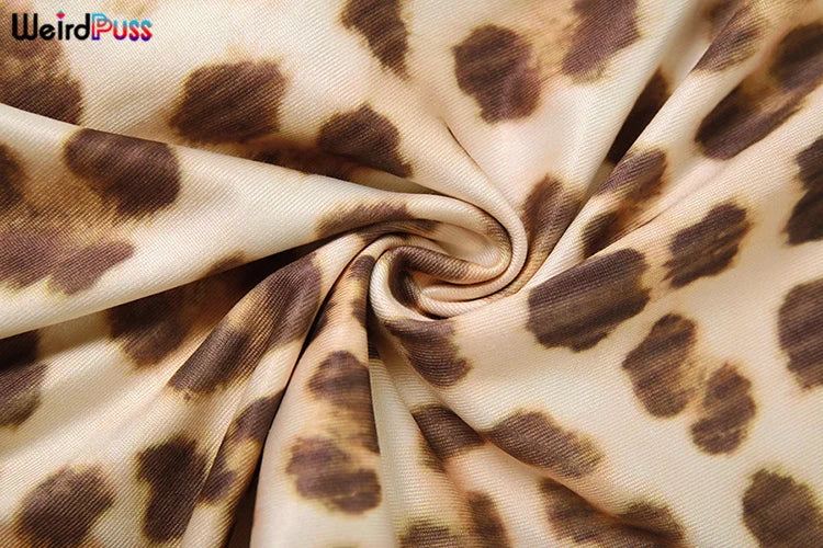 Weird Puss Leopard Contrast Letter Print 2 Piece Set Women Hooded Full Sleeve Crop Jacket+Skinny Stretch Flare Pants Trend Suits