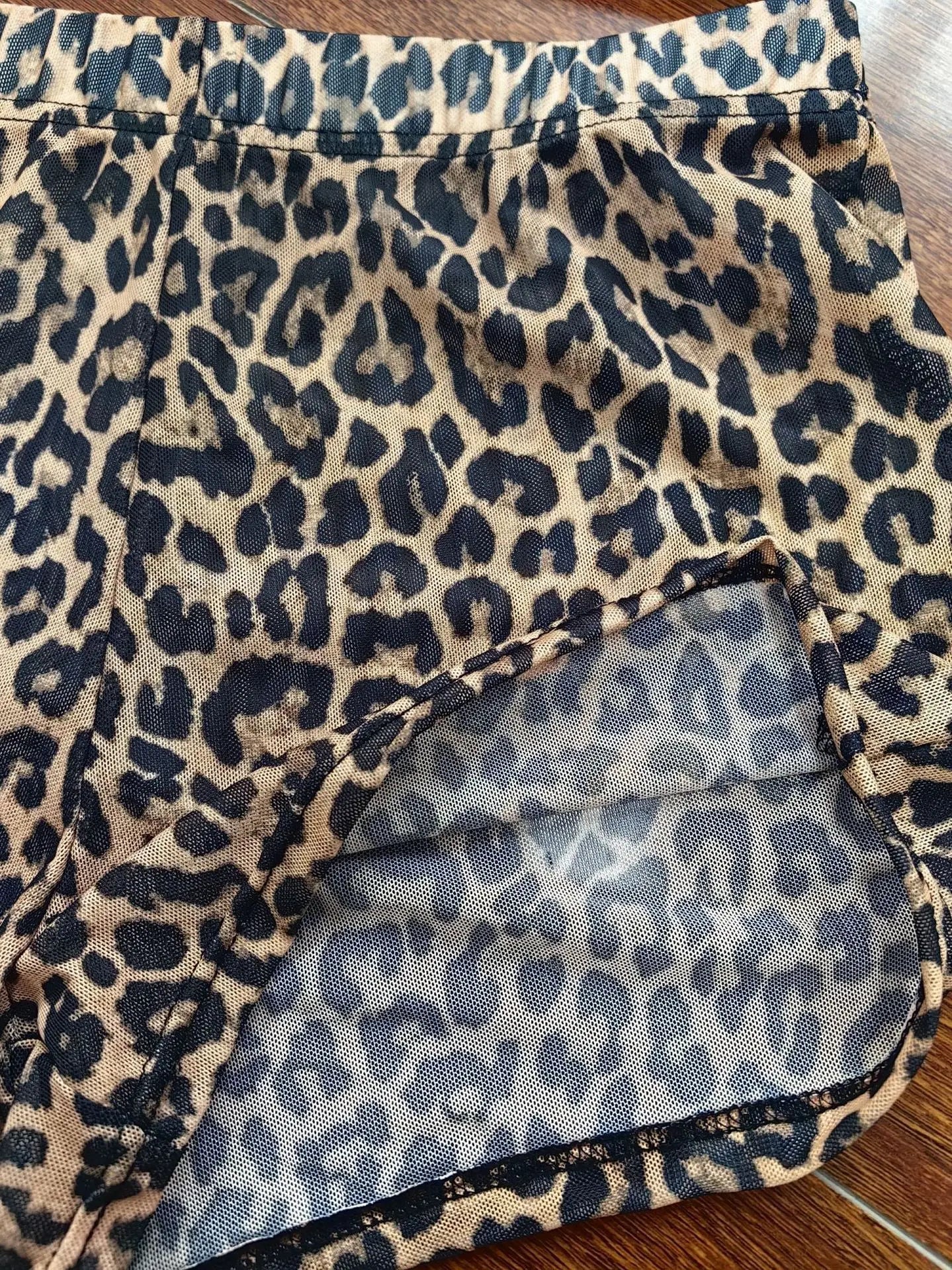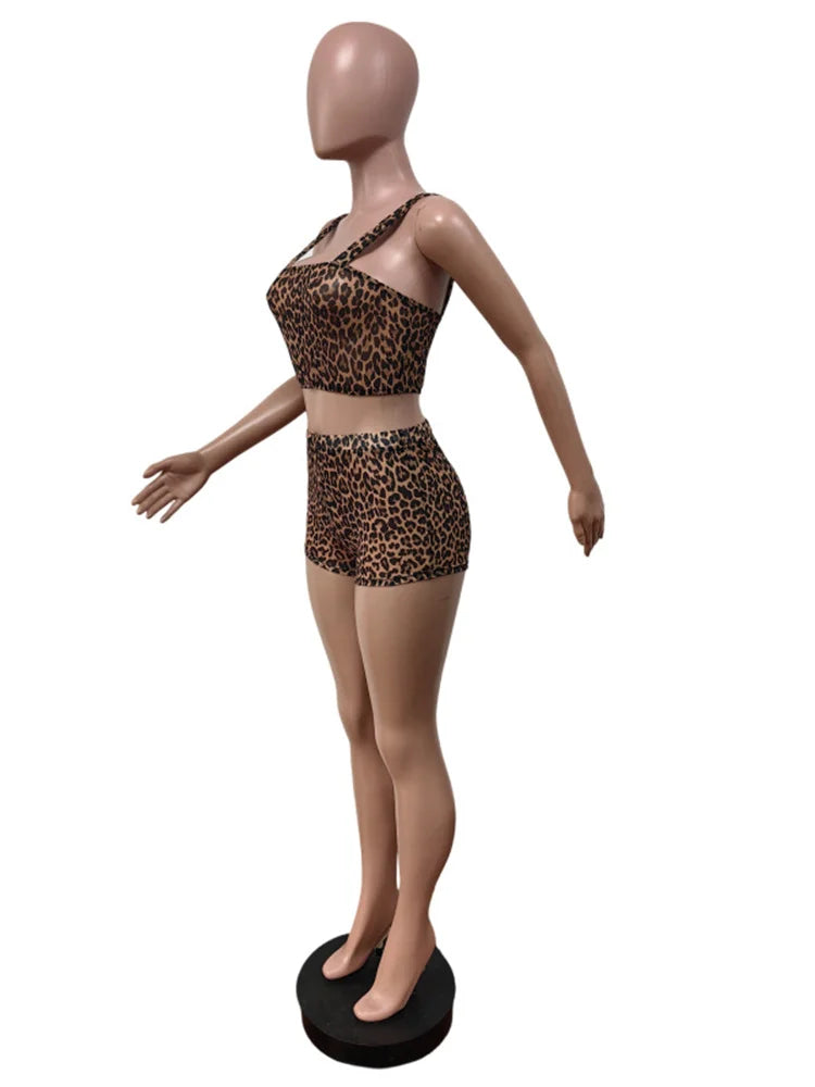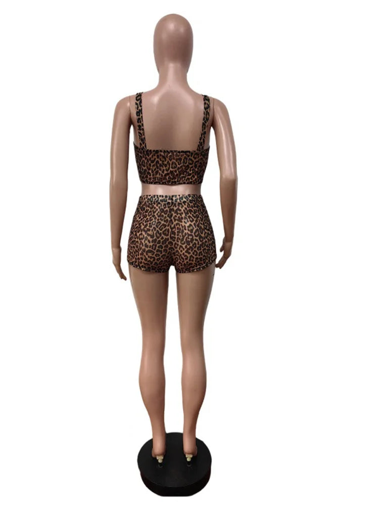 Weird Puss Leopard Print 2 Piece Set Women Square Collar Backless Tank Tops+Peach Hip Shorts Mesh See Through Sexy Trend Outfits