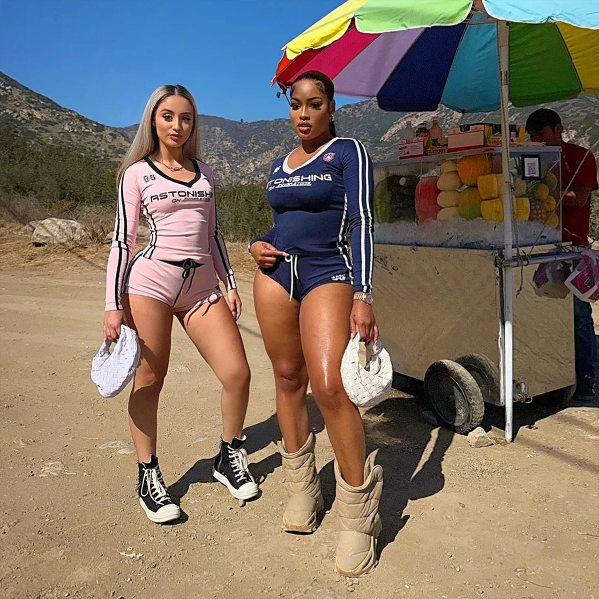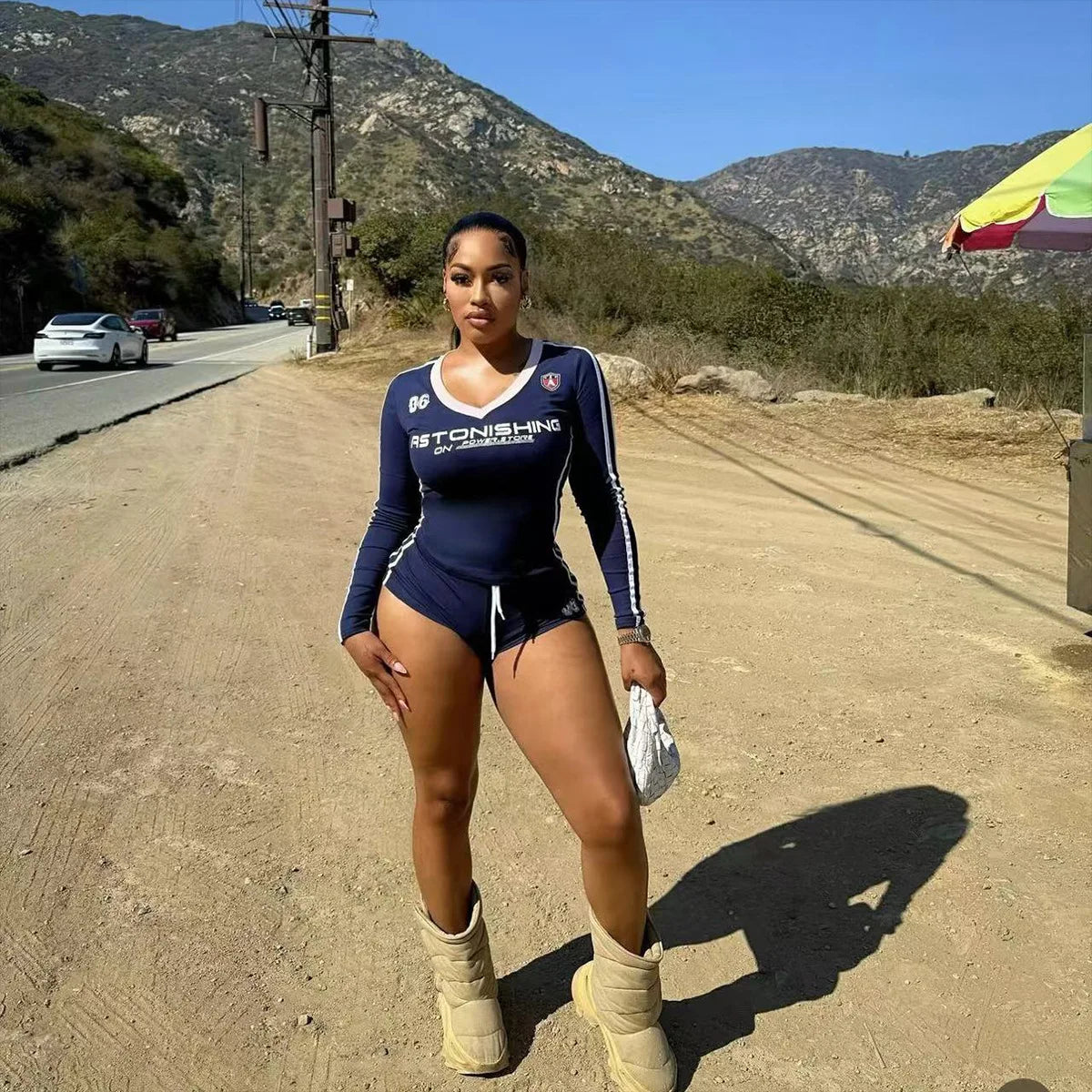 Weird Puss Letter Print Sporty 2 Piece Set Women Tracksuit Stroke Tight Hipster Casual Crop Tops+Shorts Matching Street Outfits