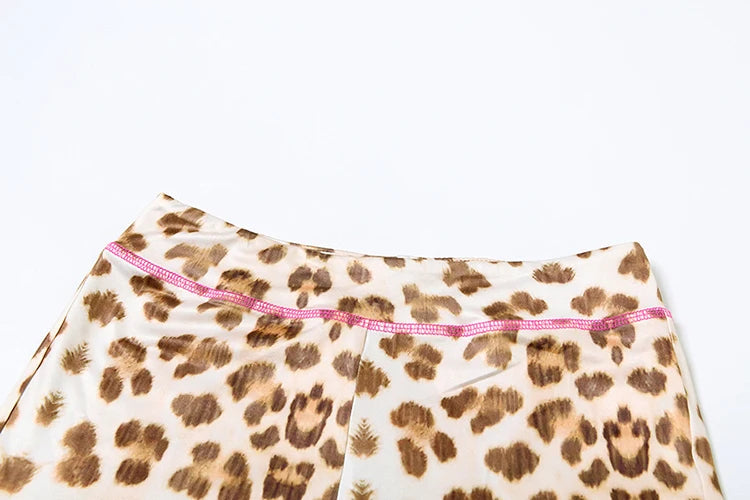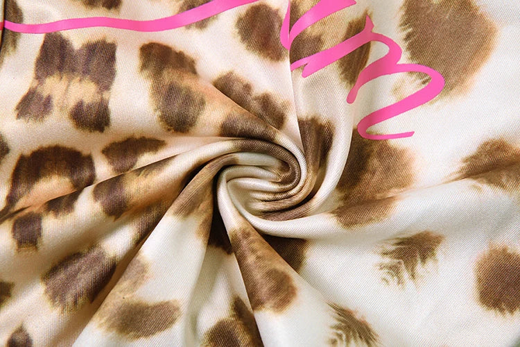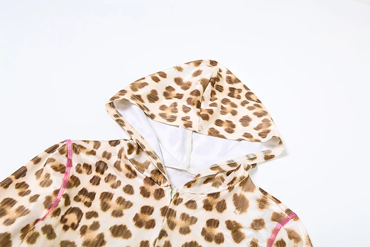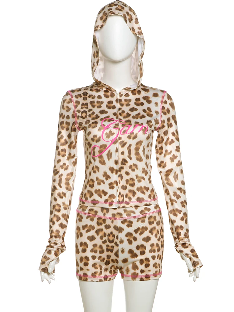 Weird Puss Letter Print Women Tracksuit 2Piece Set Leopard Zip Hooded Jacket+Biker Shorts Matching Street Stretch Activity Suits