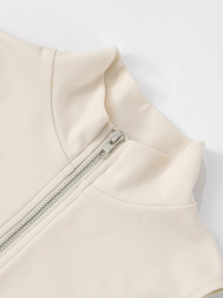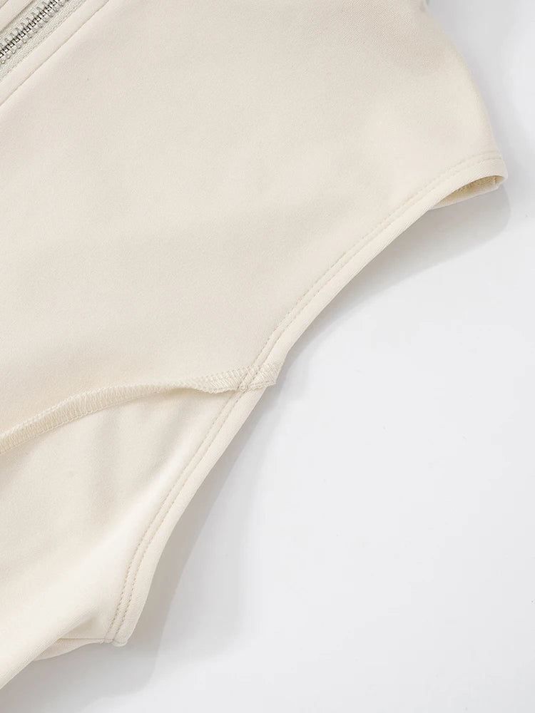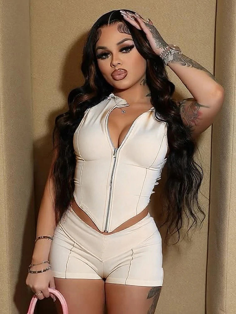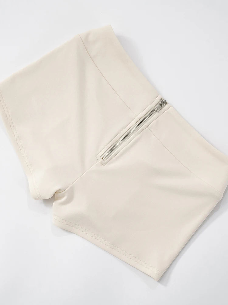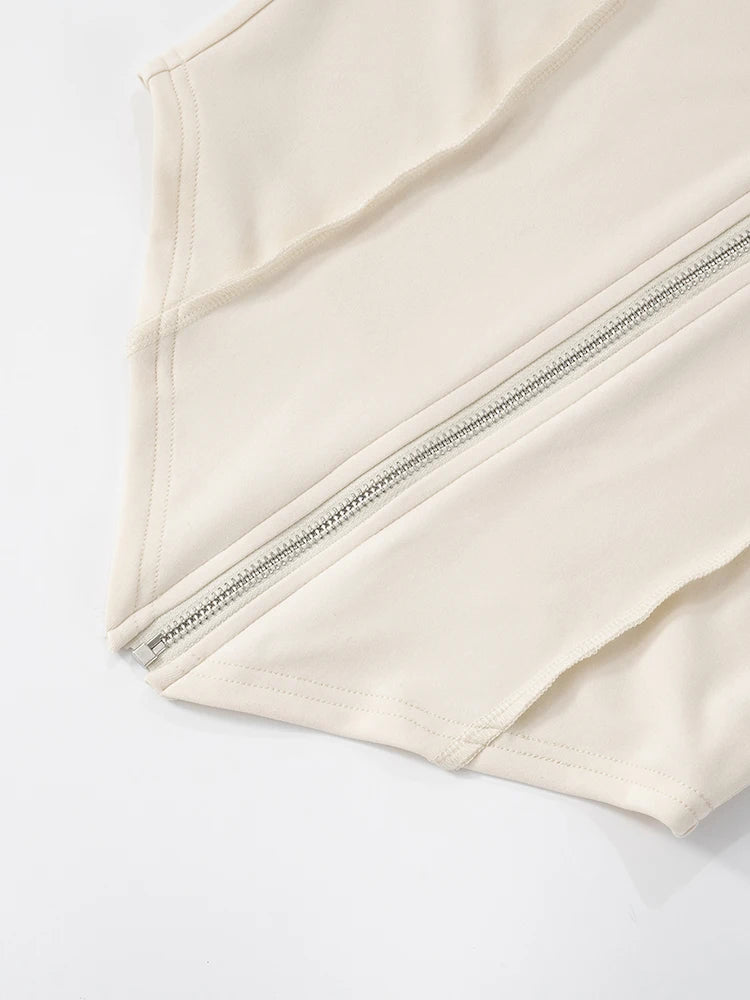 Weird Puss Lines Patchwork 2 Piece Set Women Zipper Cardigan Irregular Crop Top+Skinny Peach Hip Shorts Simple Sporty Streetweas