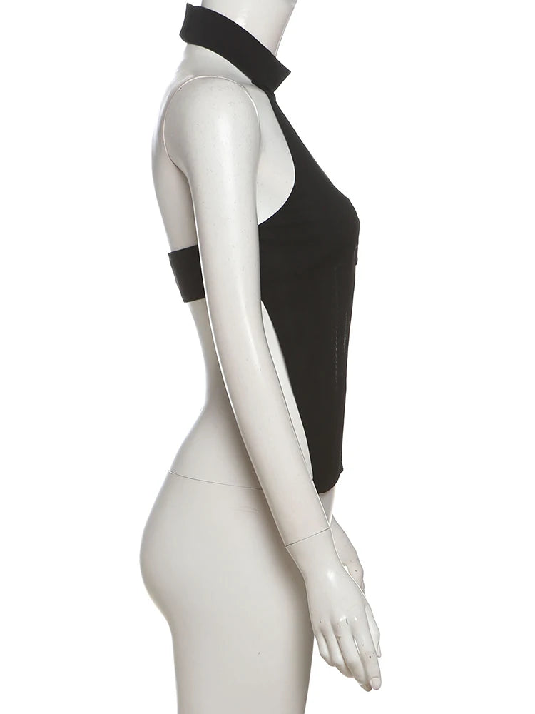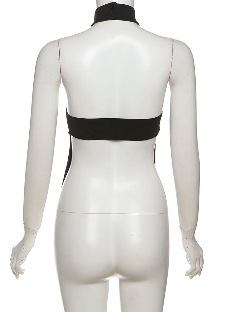 Weird Puss Metal Ring Tank Tops Women Y2K Chic Split Navel Backless Coquette Buttons Halter Sexy Hottie Midnight Wild Basic Vest