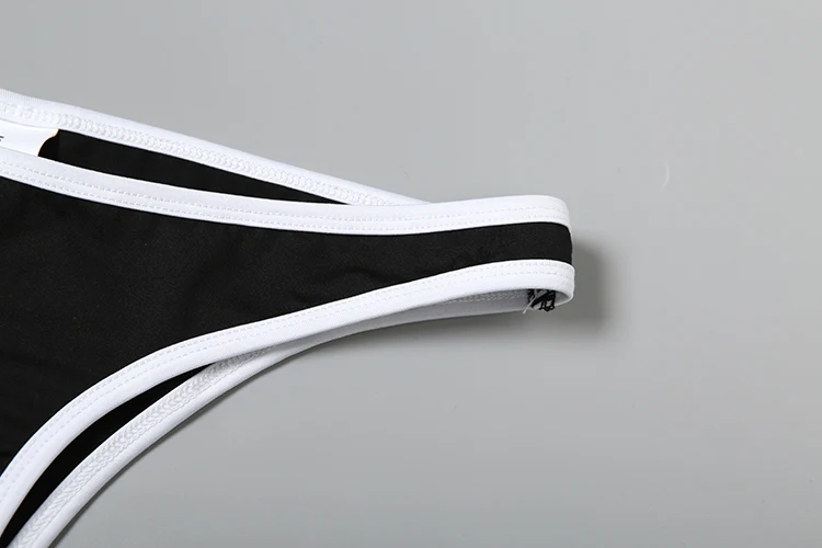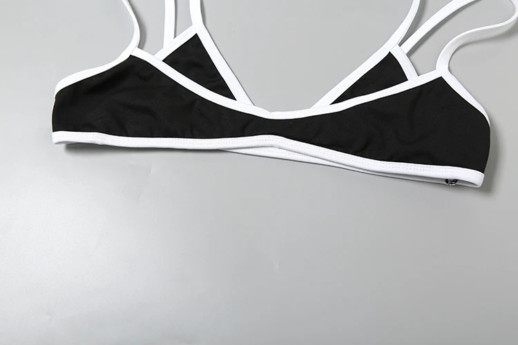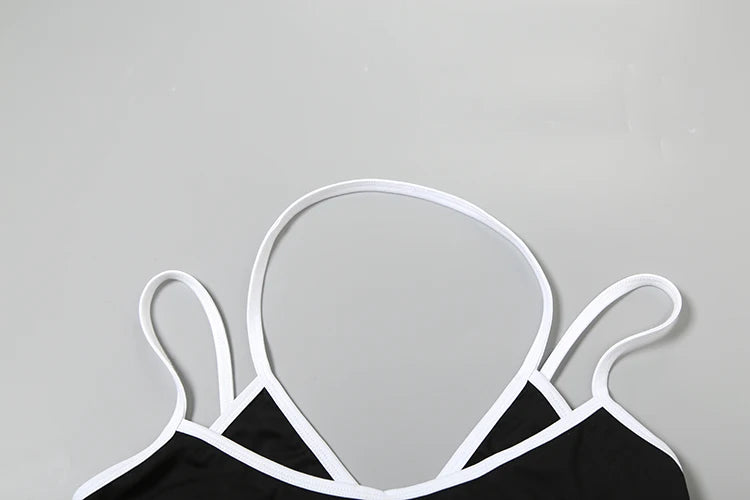 Weird Puss Patchwork 2 Piece Set Women Swimsuit Beach White Border Halter Bra Tops+Panties Basic Skinny Clubwear Vacation Suits