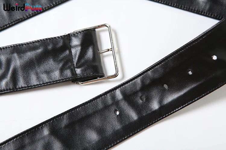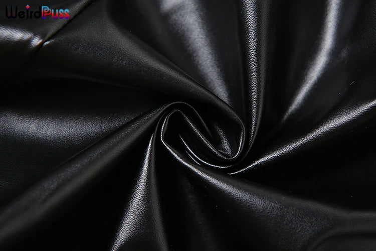 Weird Puss PU Hipster Leather 2 Piece Set Women Fall Trend v-Neck Cross Sash Sexy Crop Tops+Shorts Matching Streetwear Outfits