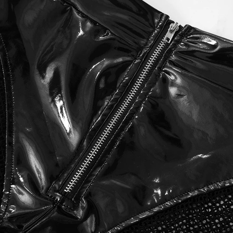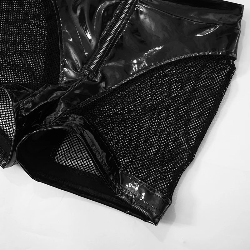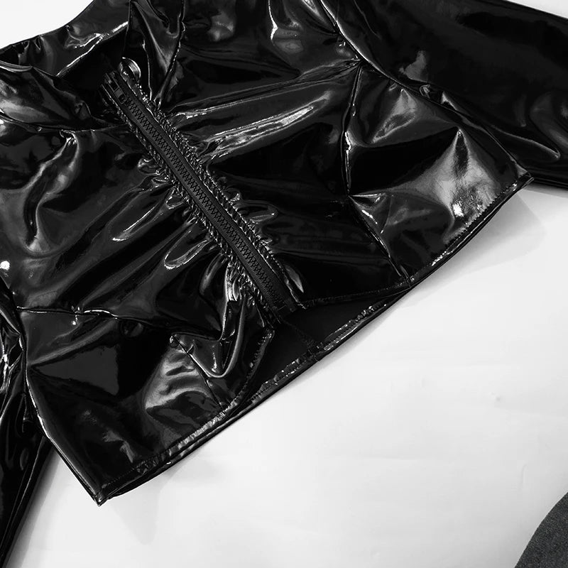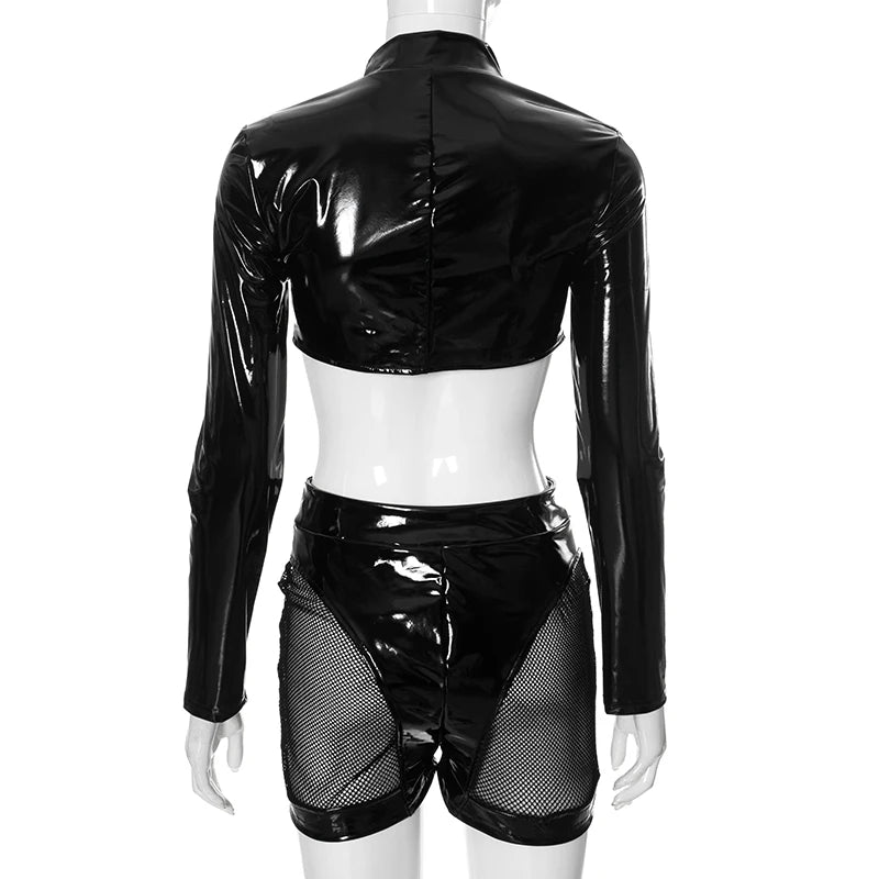 Weird Puss PU Patchwork Sexy 2 Piece Set Women Autumn Hipster Full Zip Crop Jacket+Shorts Matching Clubwear Midnight Outfits