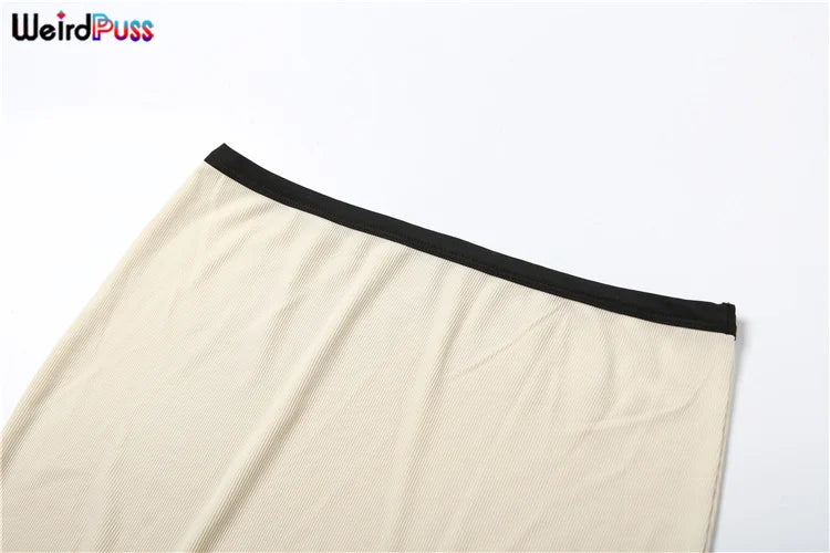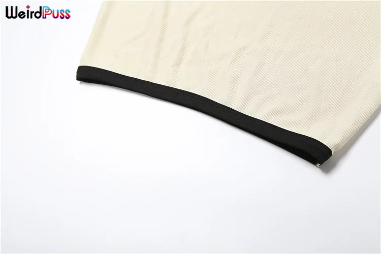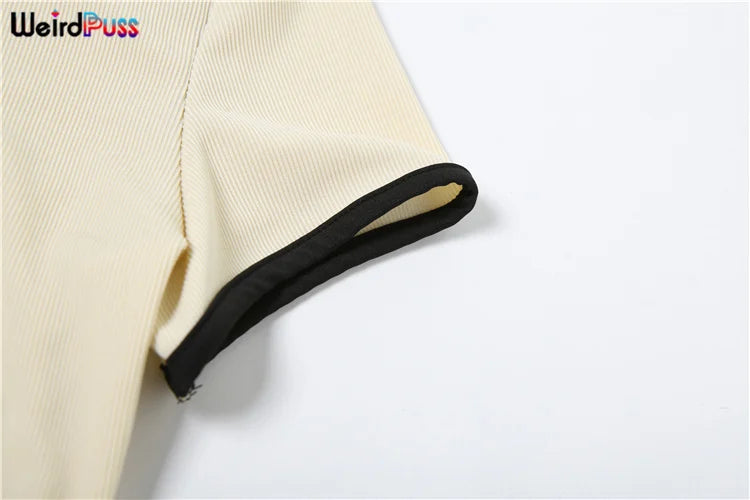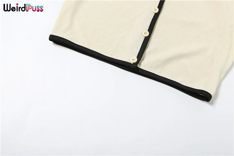 Weird Puss Ribbed Women 2 Piece Set Polo Neck Button Shorts Crop Tops+Mini Skirts Matching Stretch Elegant Streetwear Outfits