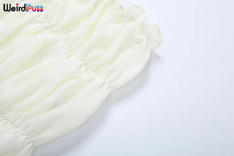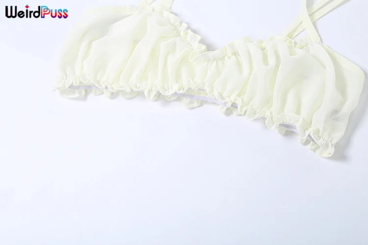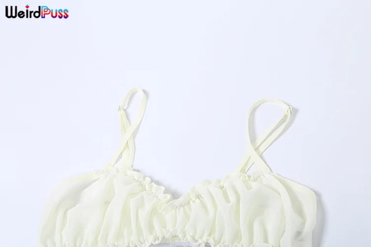 Weird Puss Ruffles 2 Piece Set Women Summer Vacation Beach Style Thin Camisole+Ruched Sexy Peach Hip Skirts Matching Clubwear