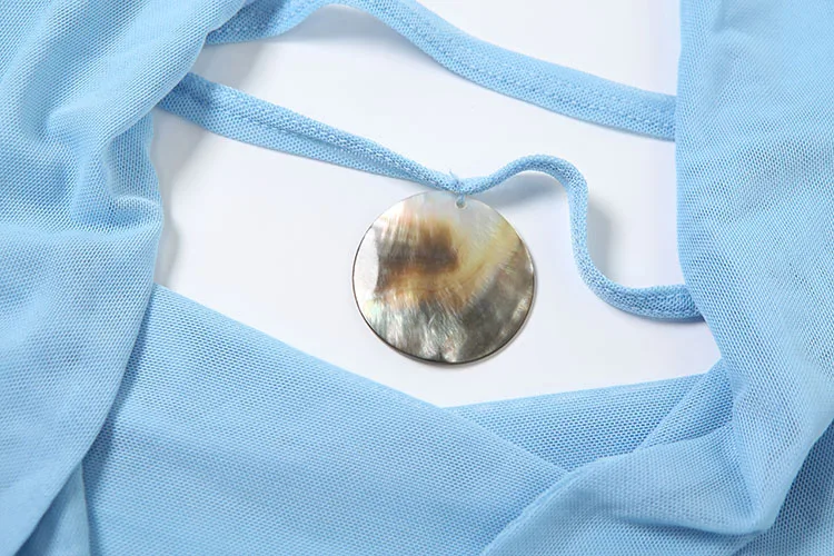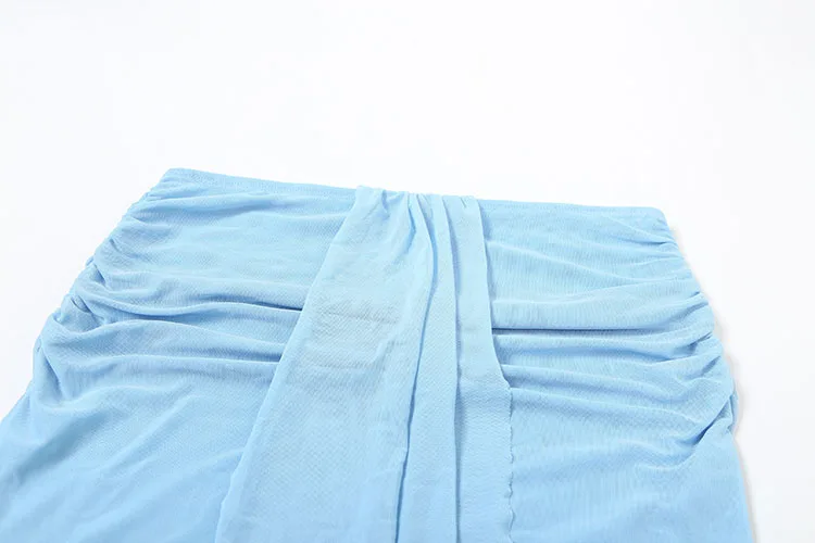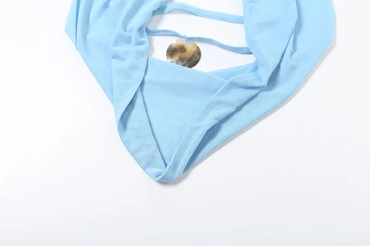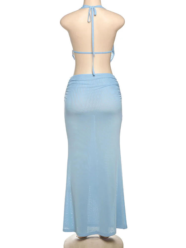 Weird Puss See Through Women 2 Piece Set Y2K Halter Swing Collar Seashell Tank Tops+Ruched Waist Maxi Skirts Midnight Clubwear