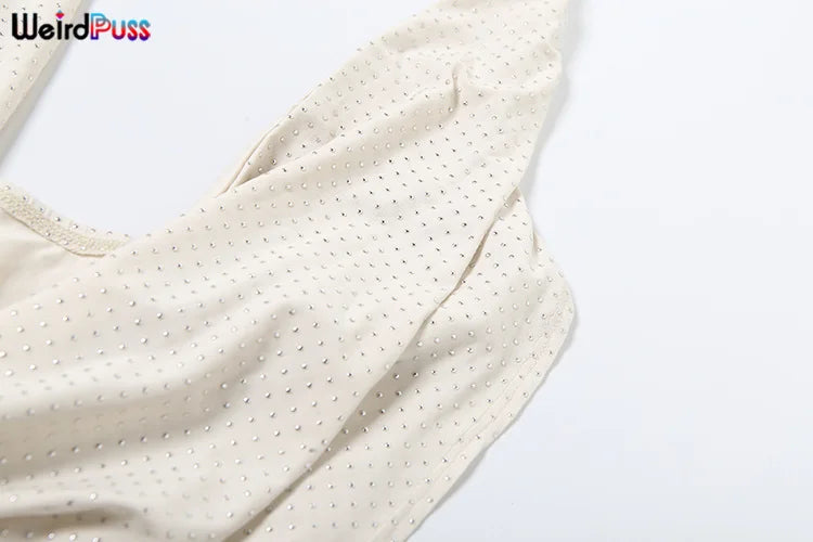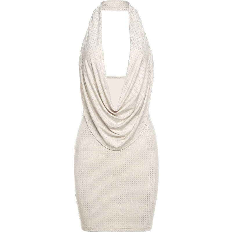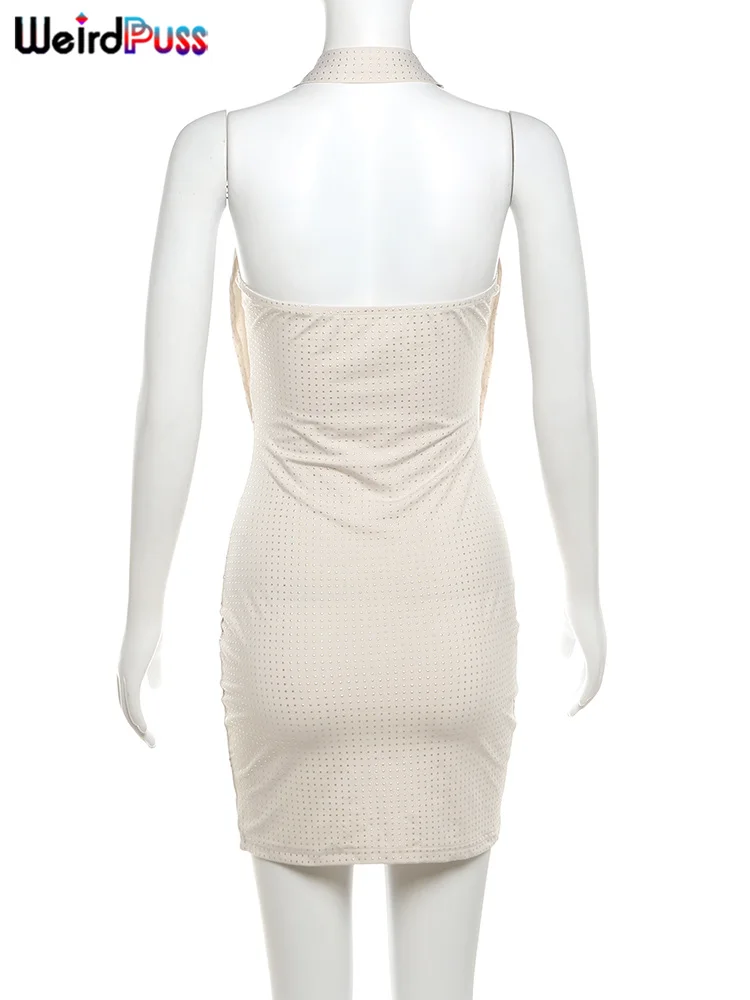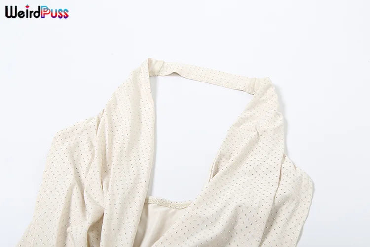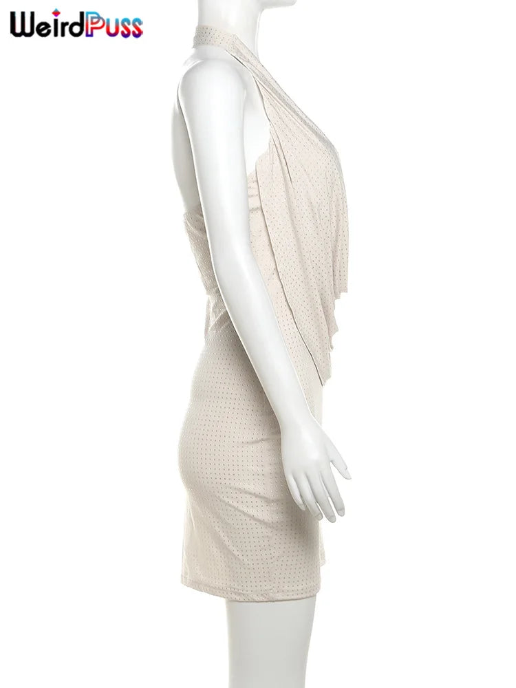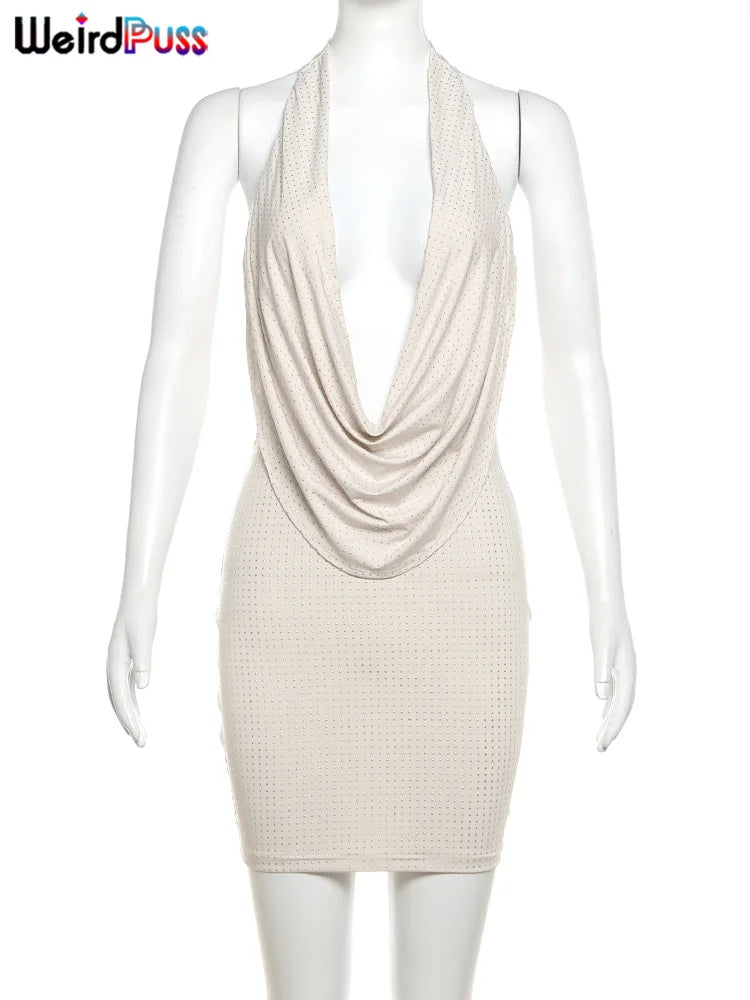 Weird Puss Sequins Shiny Dress Women Backless Halter Low Neck Ruched Skinny Short Bodycon Sexy Slim Midnight Evening Party Robe