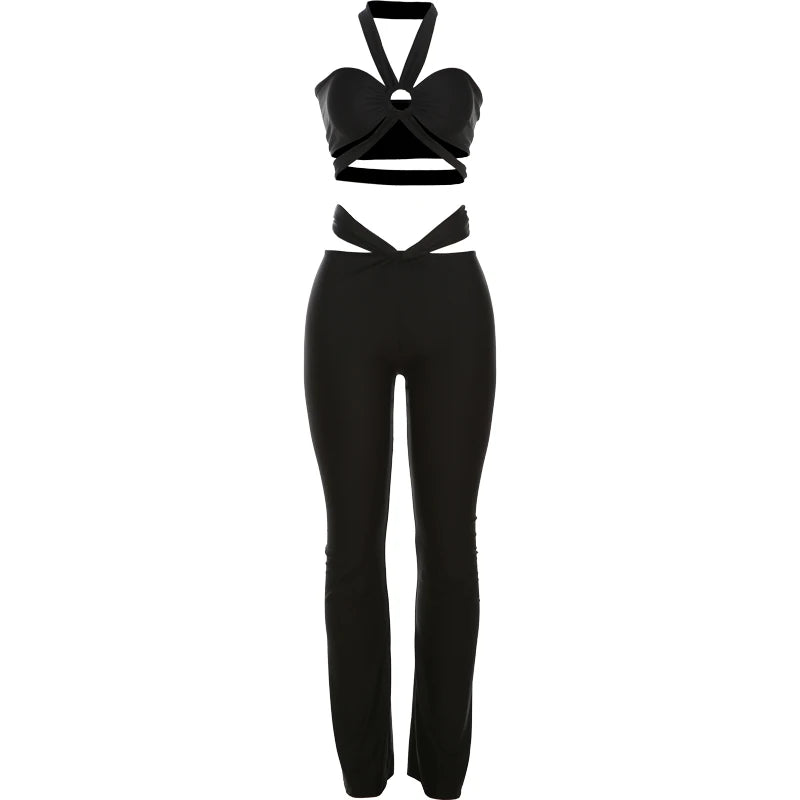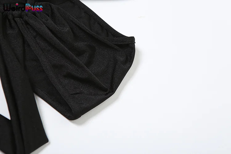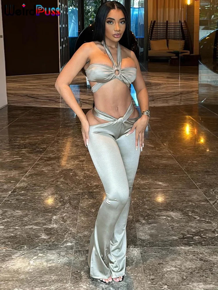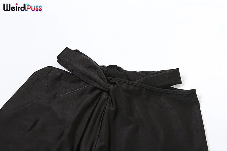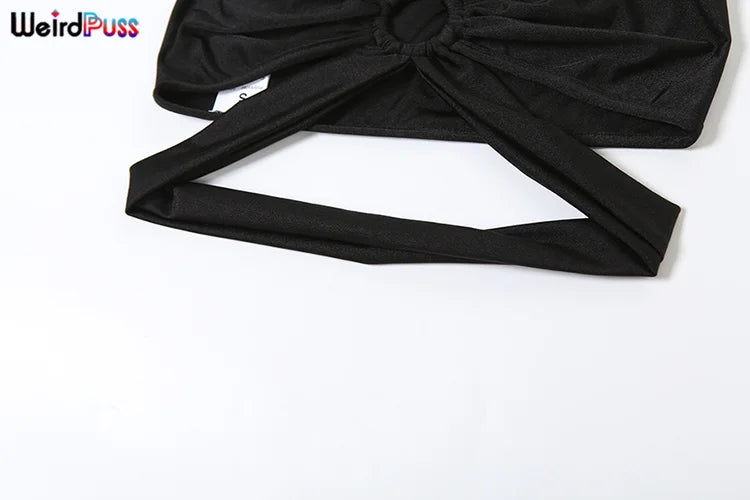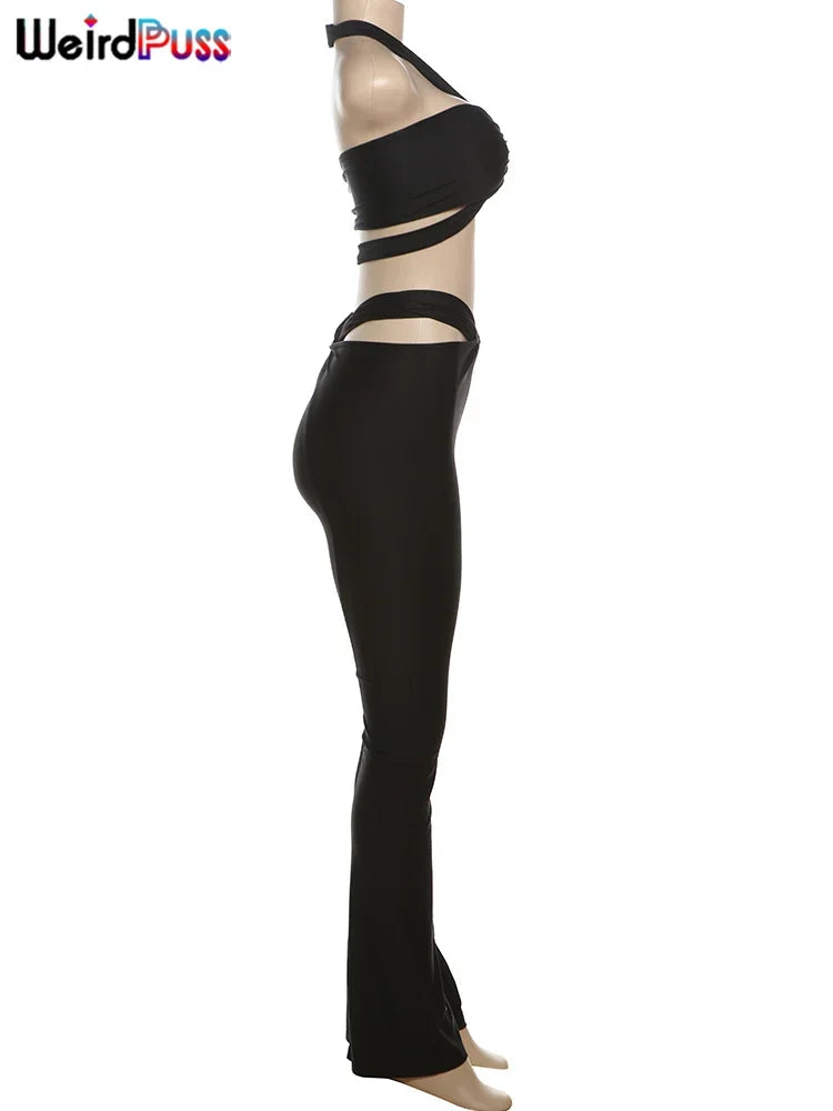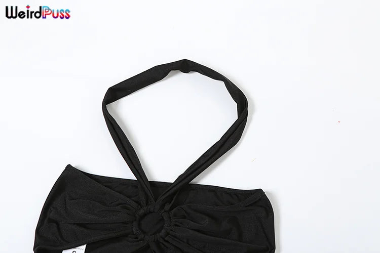 Weird Puss Sexy 2 Piece Set Women Hipster Halter Cross Wrapped Camisole+Ruched Hollow Leggings Street Summer Trend Matching Suit