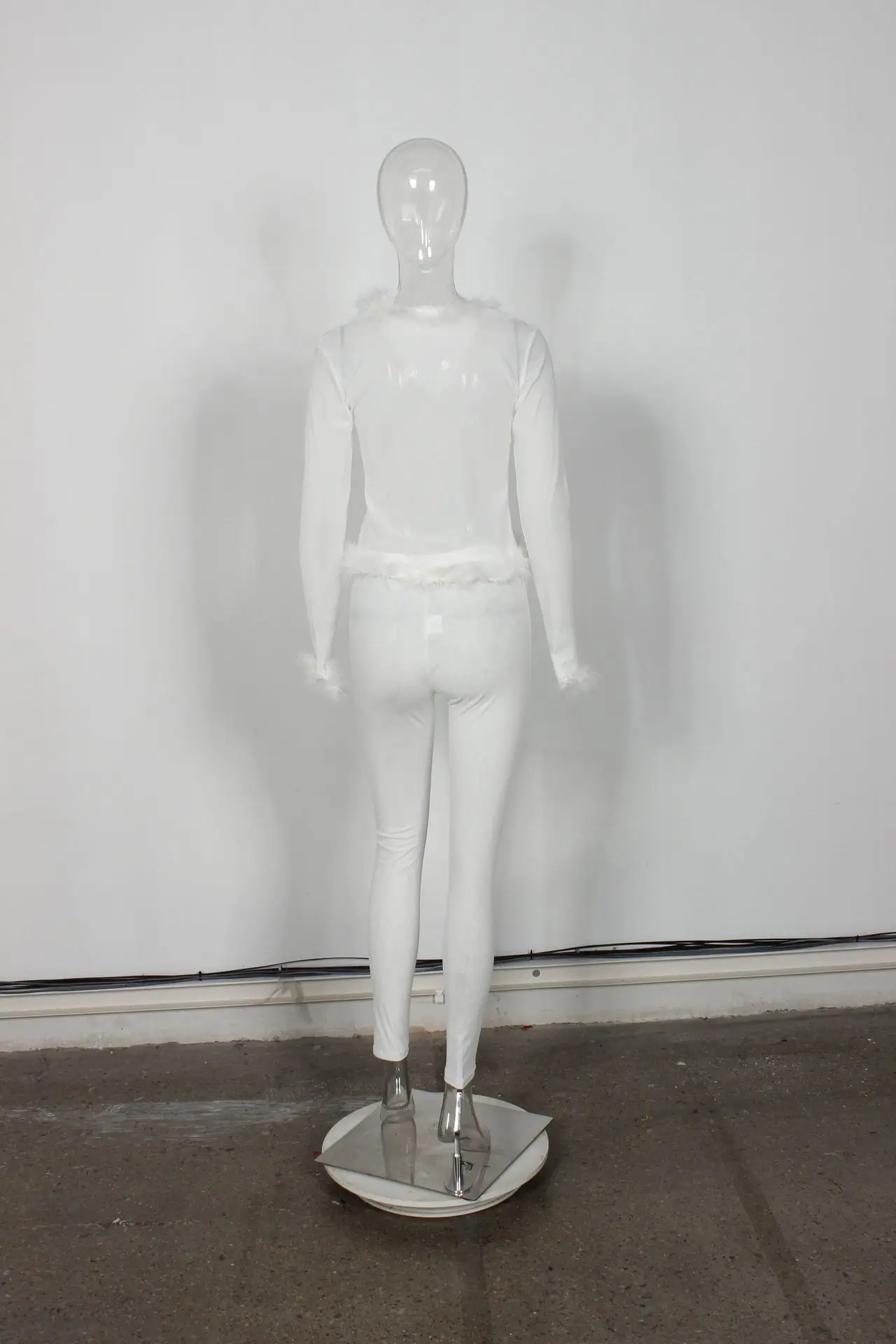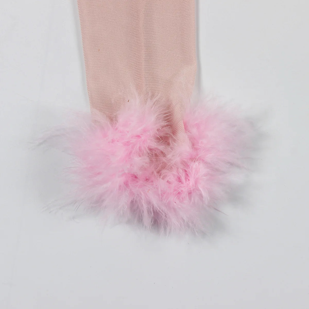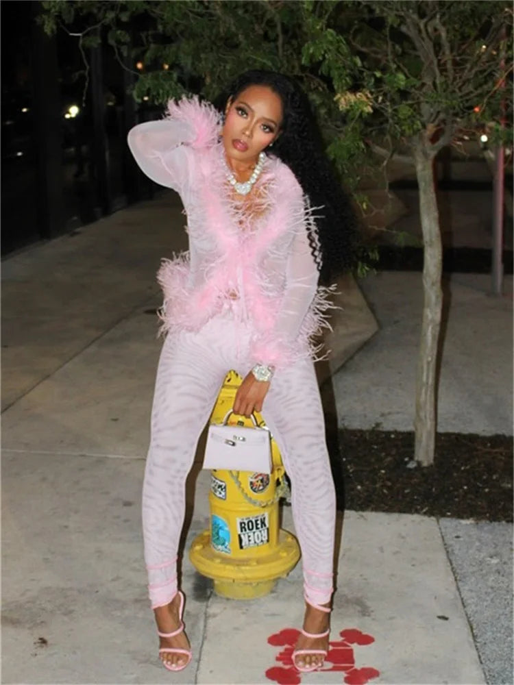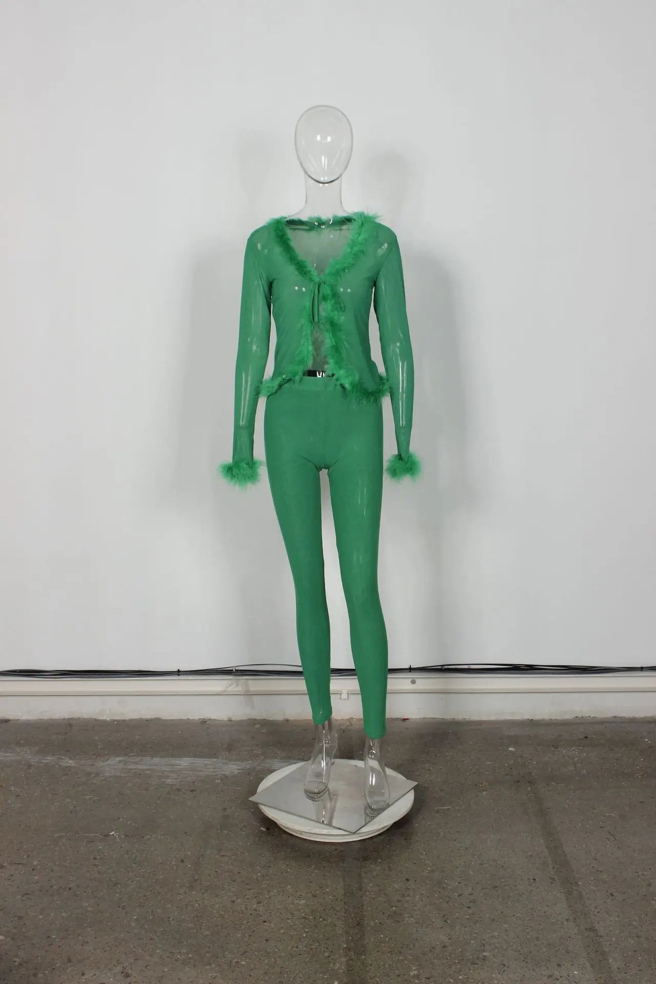 Weird Puss Sexy Fashion 2 Piece Set Women Fluff Patchwork Lace-Up Full Sleeve+Skinny Peach Hip Pants Club Coquett Trend Outfits