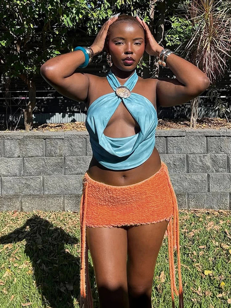 Weird Puss Sexy Furry Side Tassel Skirts Women Y2K Peach Hip Summer Solid Wild Basic Hipster Streetwear Skinny Slim Mini Bottom