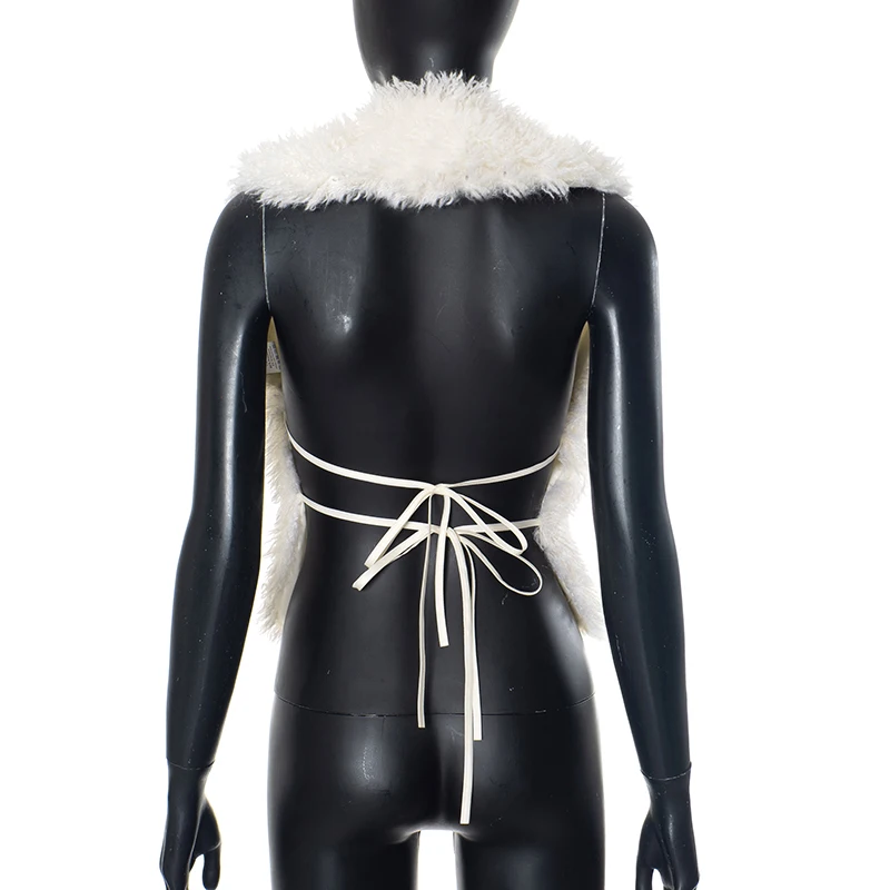 Weird Puss Sexy Furry Tank Tops Women Backless Sexy Midnight Cardigan Autumn Hipster Wild Basic Streetwear Halter Furs Y2K Tops