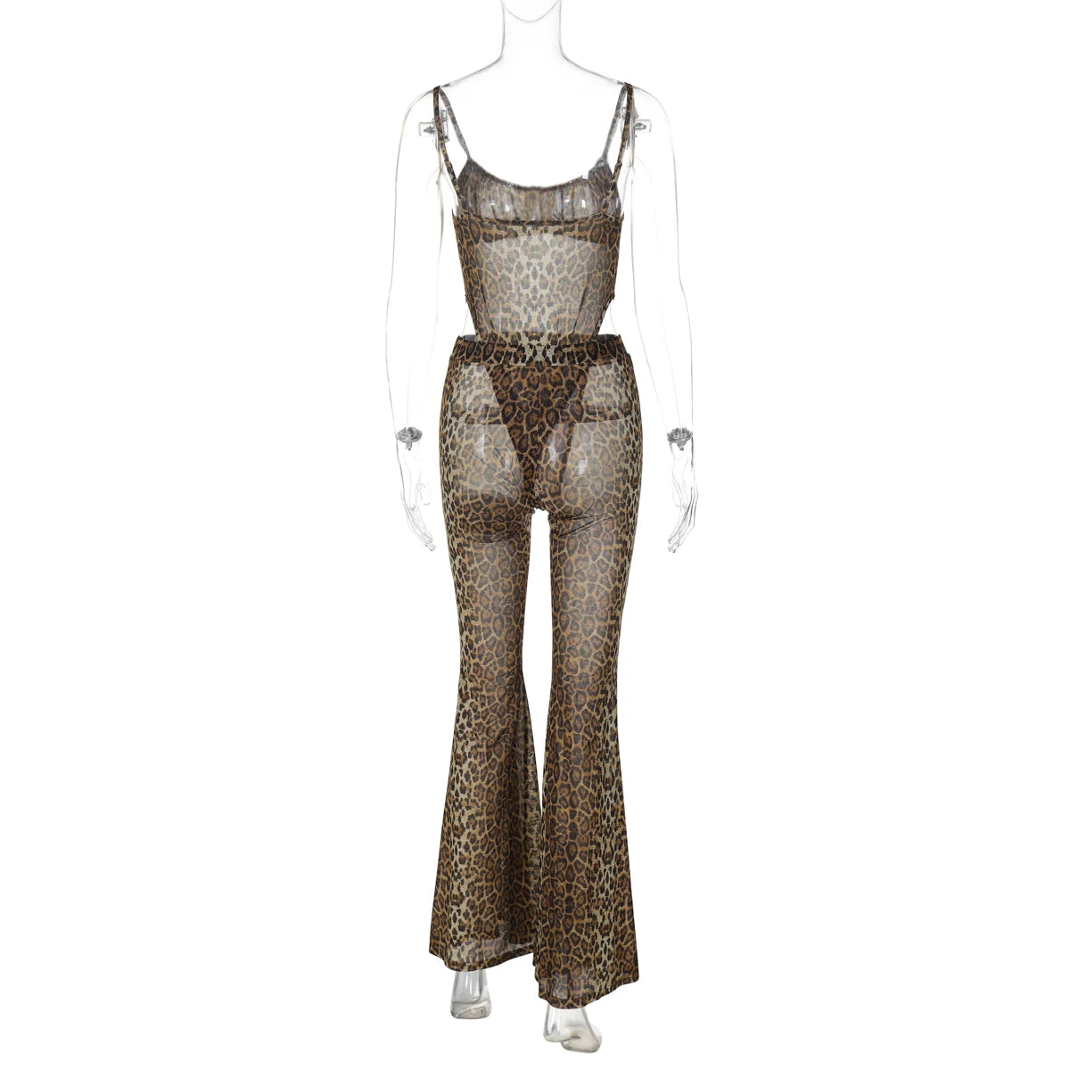 Weird Puss Sexy See Through 2 Piece Set Women Sexy Strapless Bodysuit Tops+Flare Pants Matching Summer Midnight Clubwear Outfits