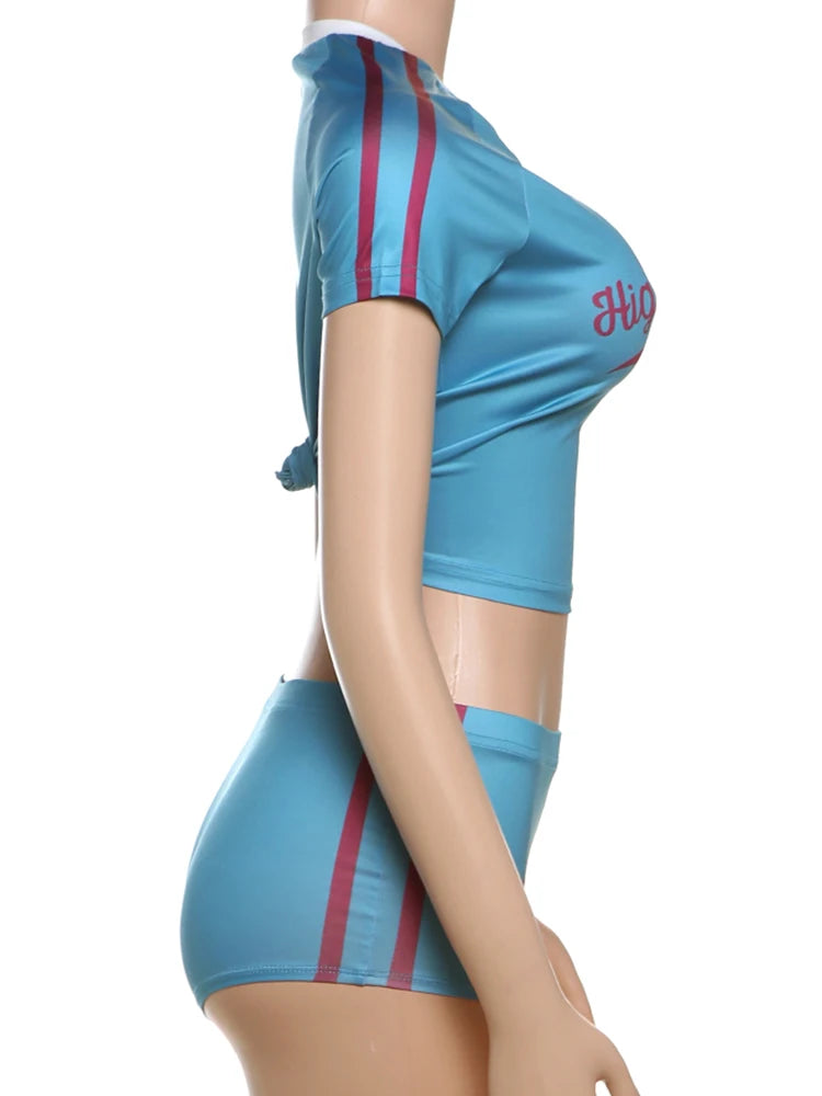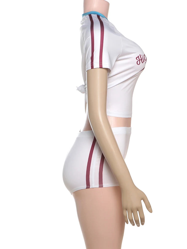 Weird Puss Sporty 2 Piece Set Women Tracksuit Y2K Letter Print Shorts Crop Tops+Shorts Casual Activity Sporty Streetwear Outfits