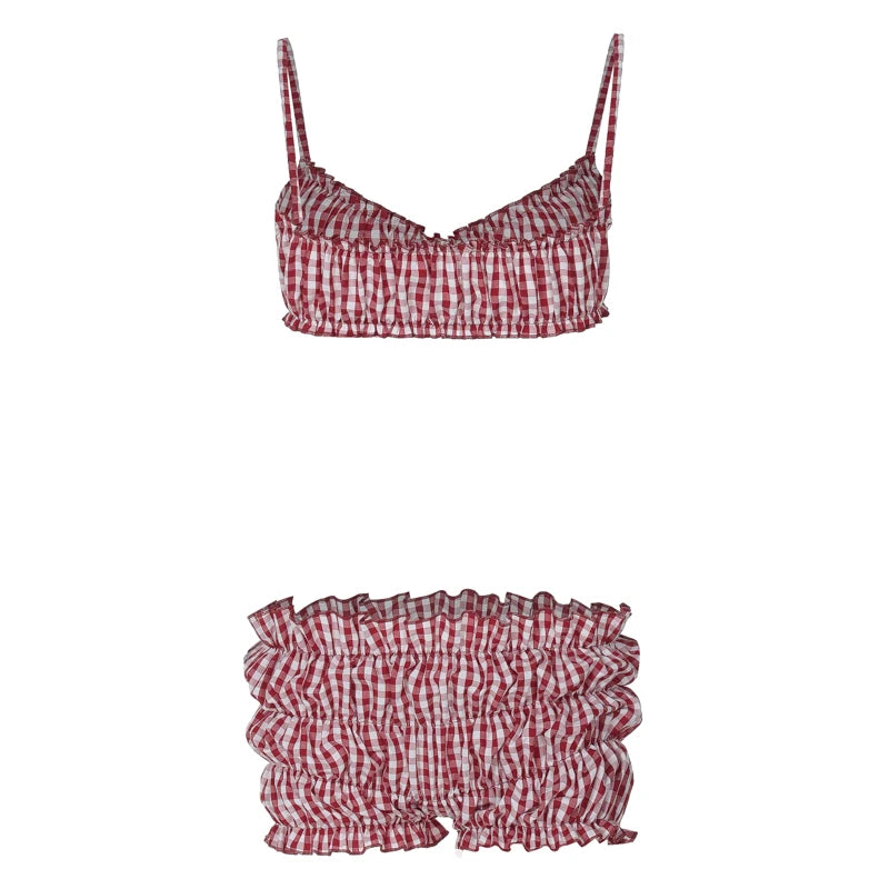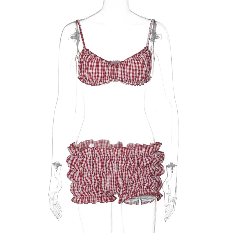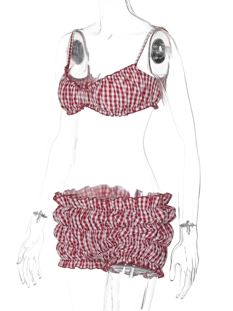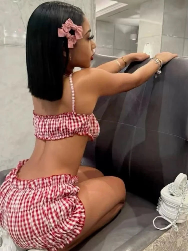 Weird Puss Stripe Women 2 Piece Set Beach Vacation Elastic Camisole+Ruched Shorts Matching Clubwear Midnight Summer Swimsuit