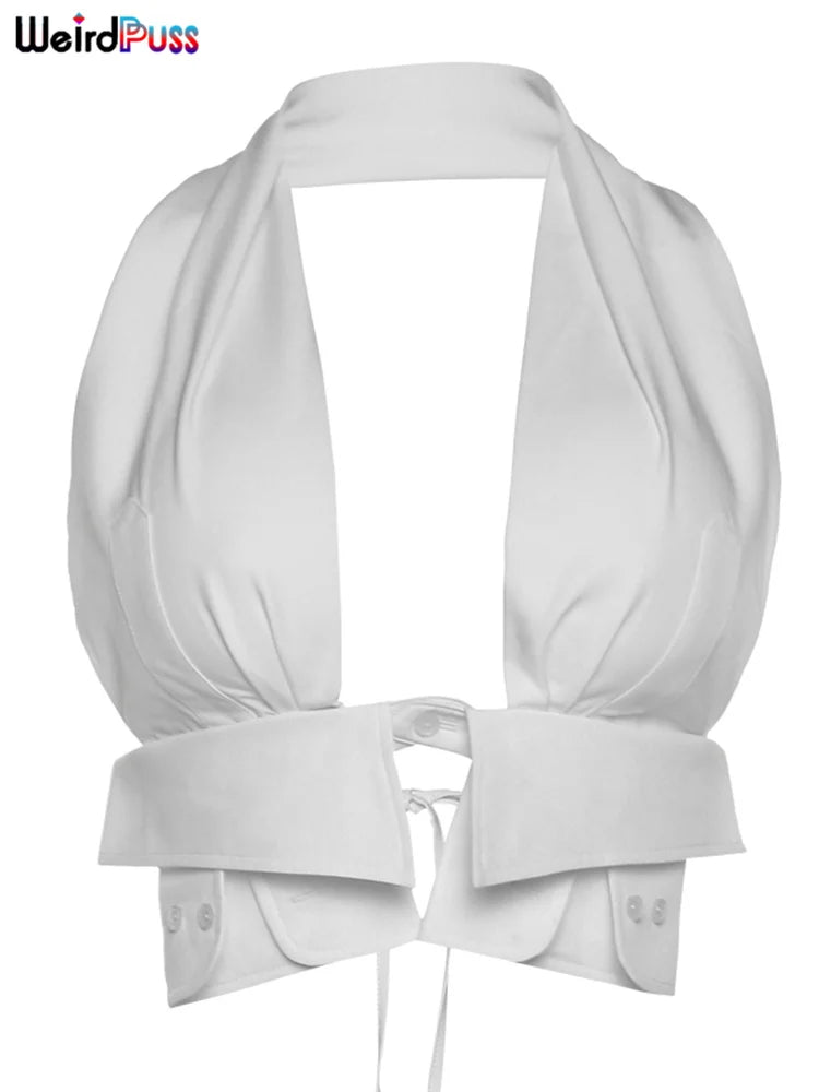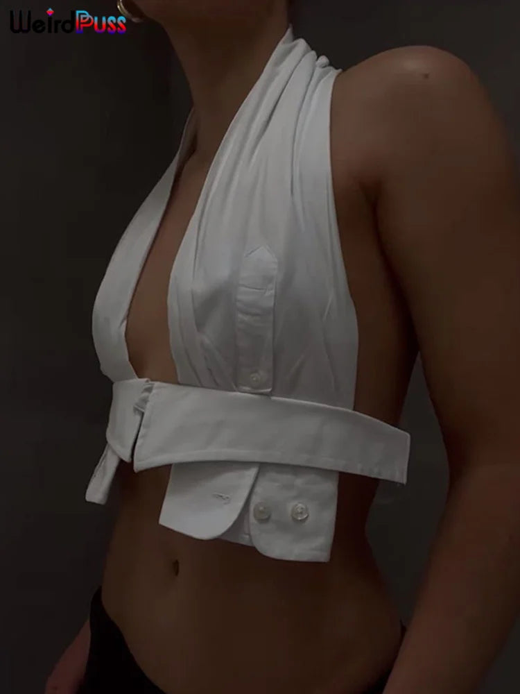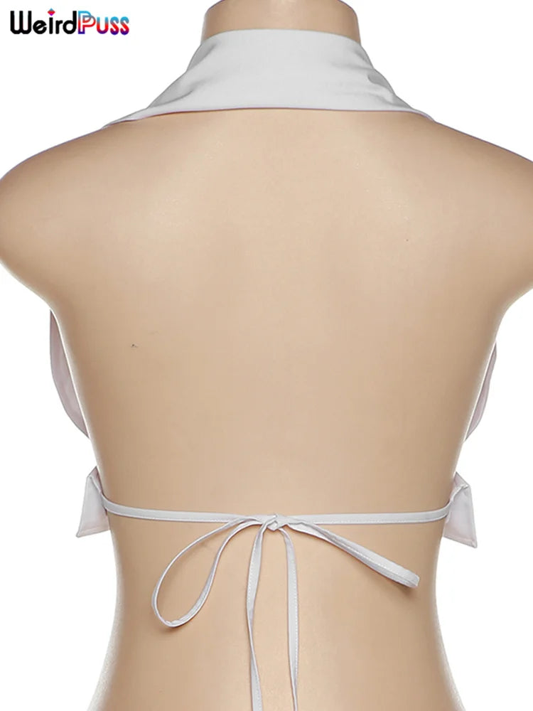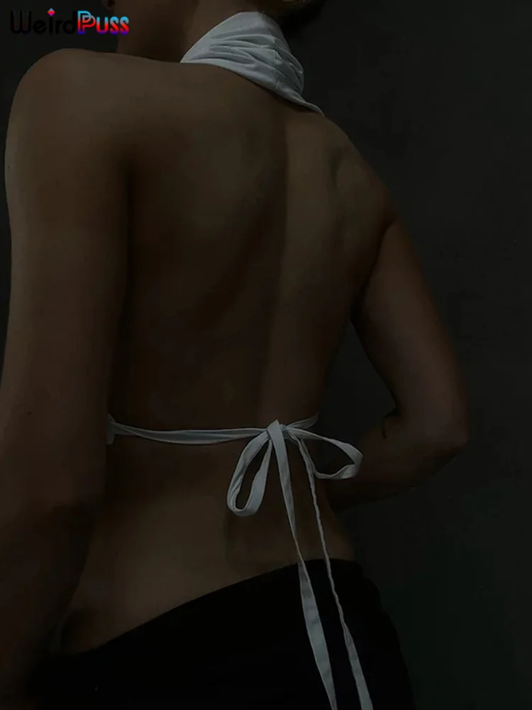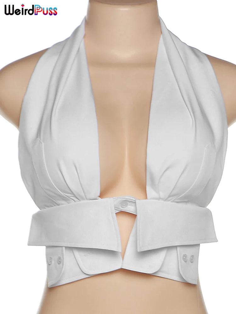Weird Puss Y2K Button Halter Camisole Women V-Neck Skinny Elegant Sexy Summer Fashion 2022 Wild Streetwear Backless Tank Tops