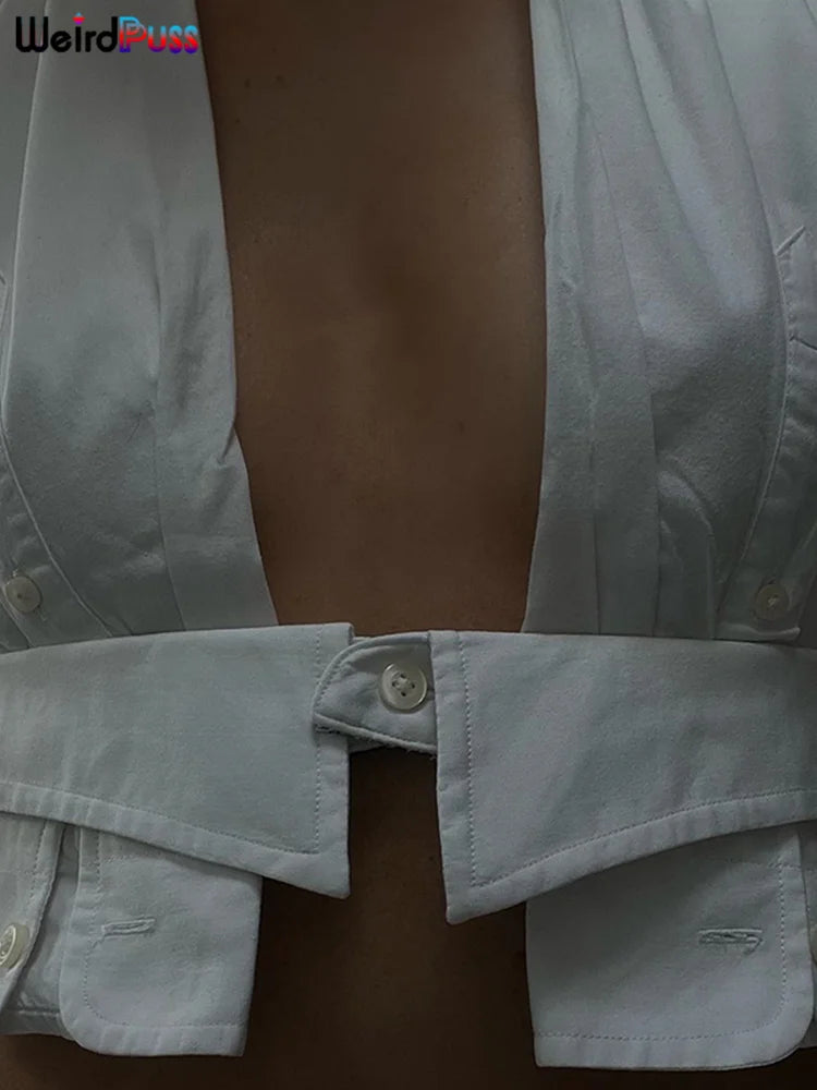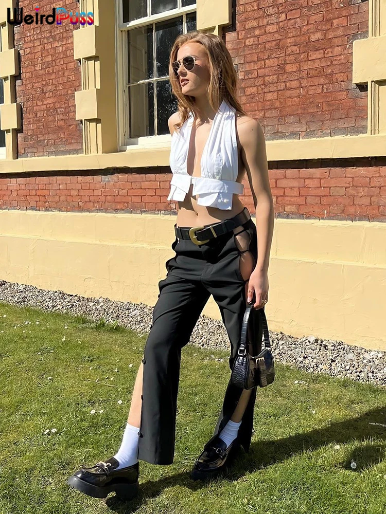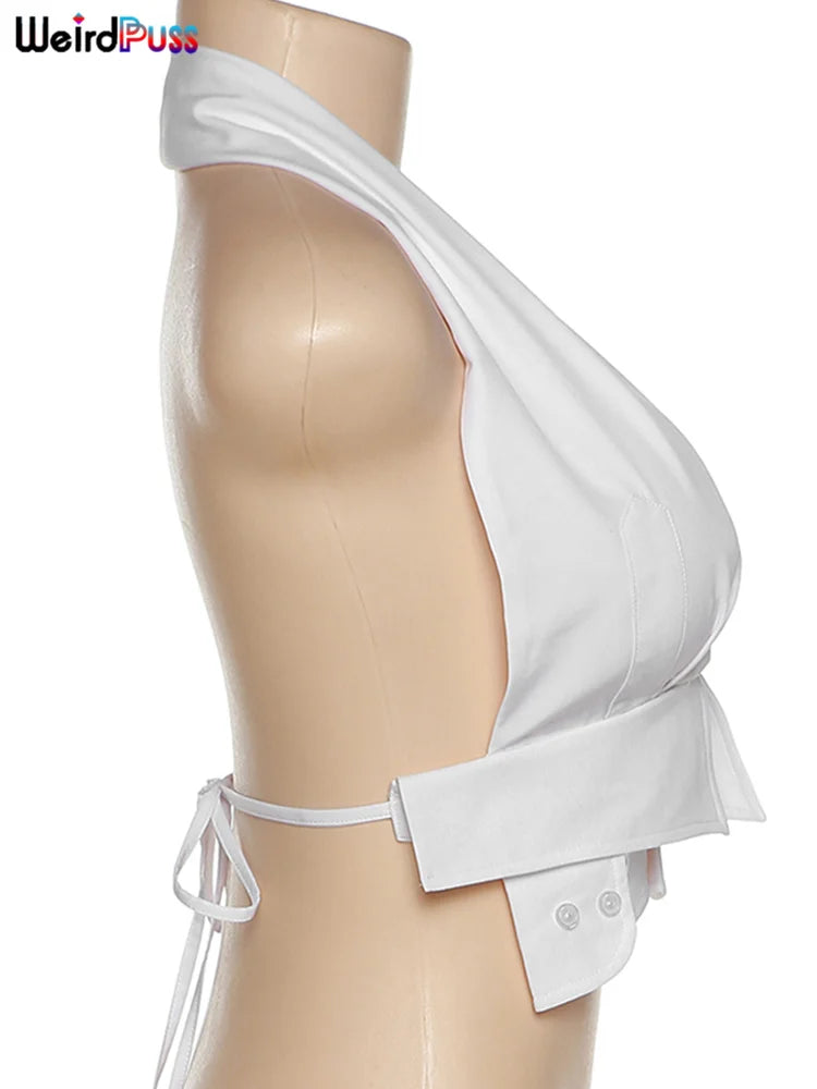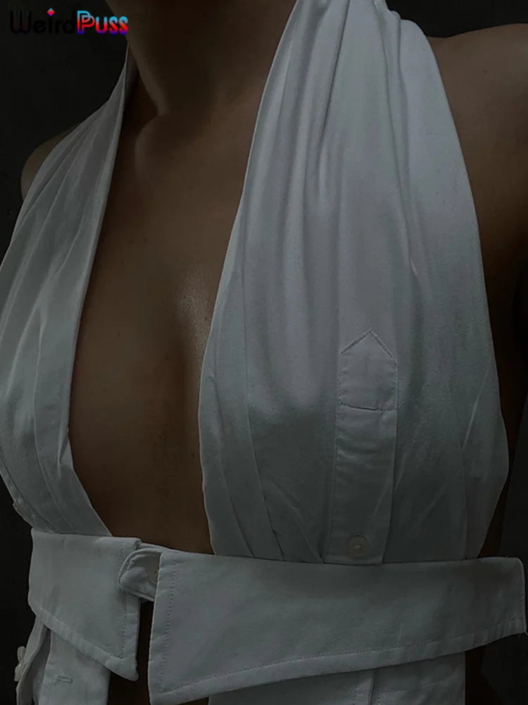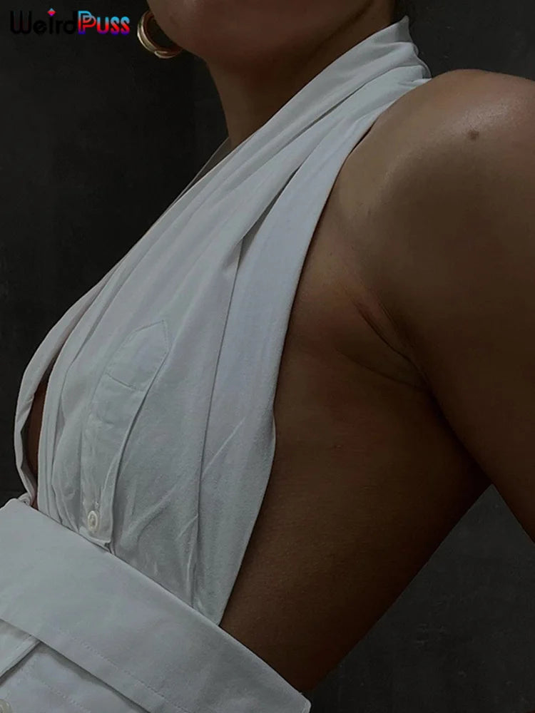 Weird Puss Y2K Button Halter Camisole Women V-Neck Skinny Elegant Sexy Summer Fashion 2022 Wild Streetwear Backless Tank Tops