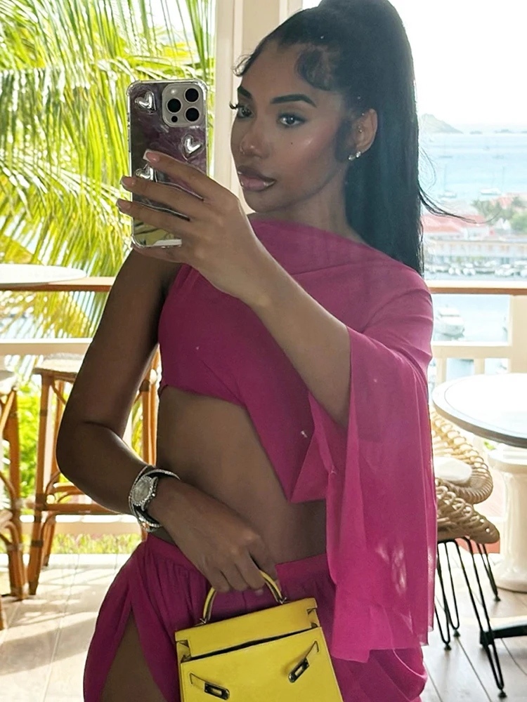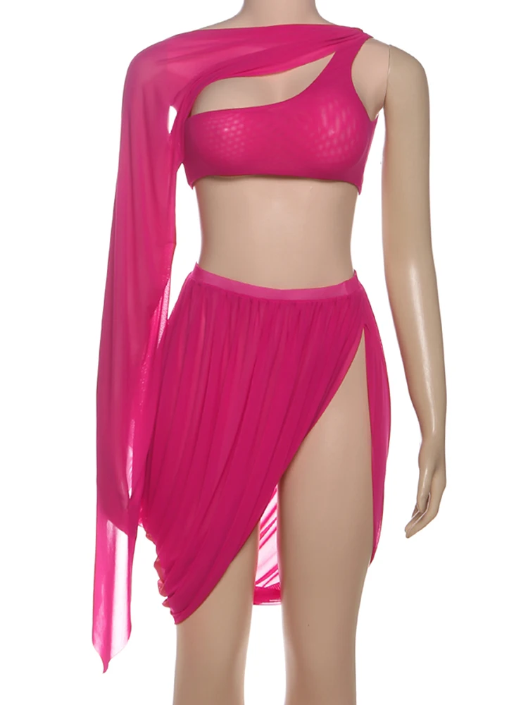 Weird Puss Y2K Sexy 2 Piece Set Women See Through Midnight Irregular Full Sleeve Crop Tops+Ruched Split Skirts Matching Clubwear