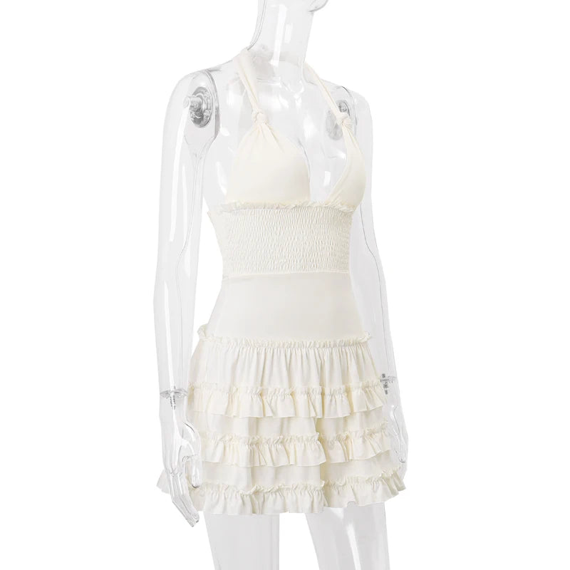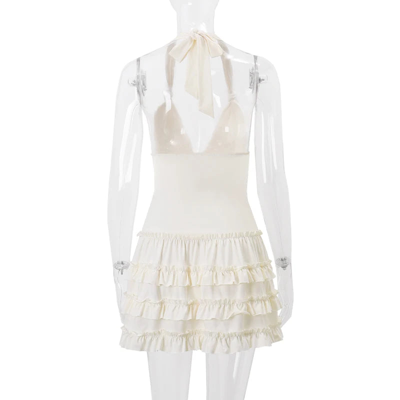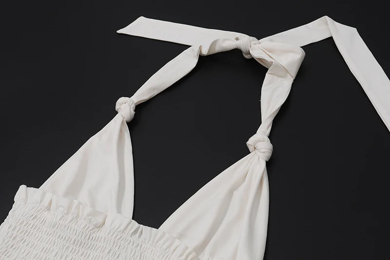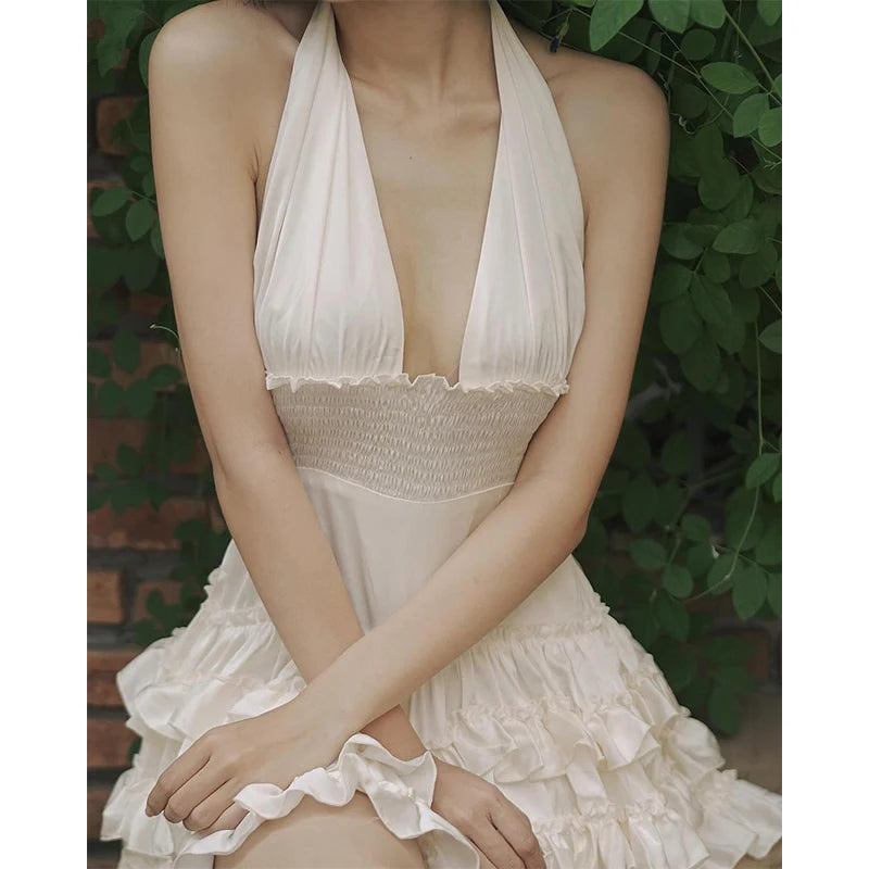 WhereMery Korean Style Sexy Beach V-neck Dress Summer Y2K Charming Backless Handling Neck Dress Swimming Pool Party Mini Dresses