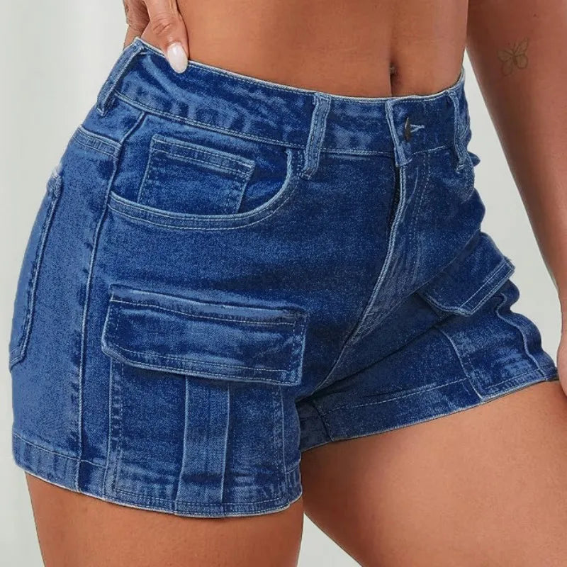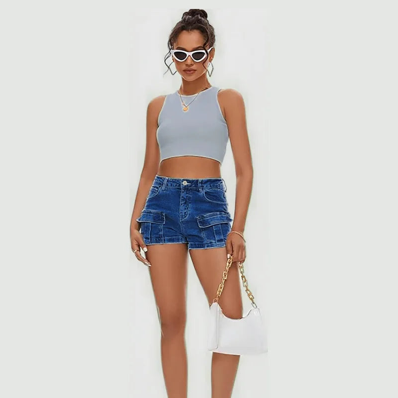 Ladies jeans Shorts High Waisted Blue Cargo Style Shorts Trendy Summer short jeans pants, Popular Choice