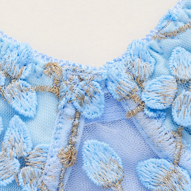 Women Blue Camisole Vest Bra Embroidery Flower Corsets Slim Fit Versatile Lady Corset Top Sexy Lace Rayon Ultra-Thin Thick Bra