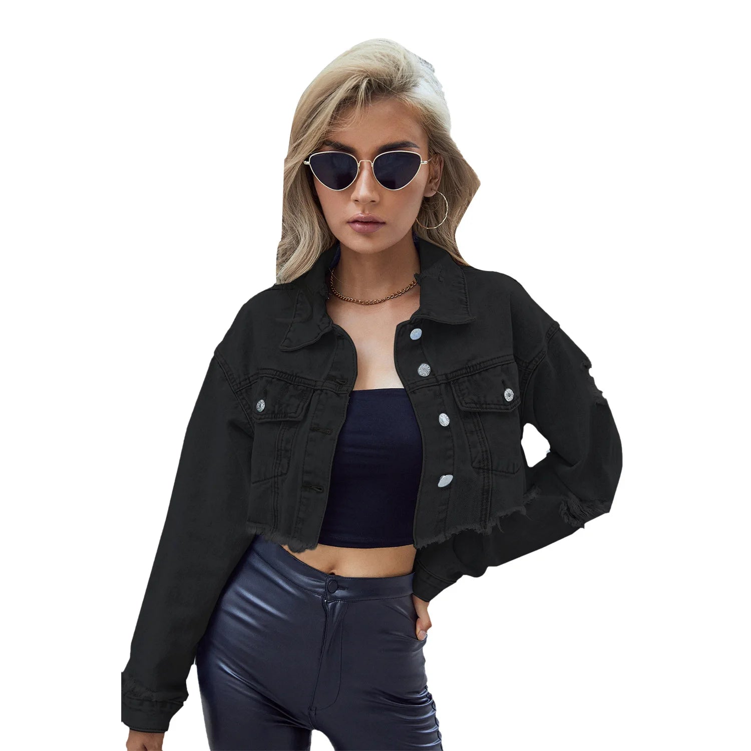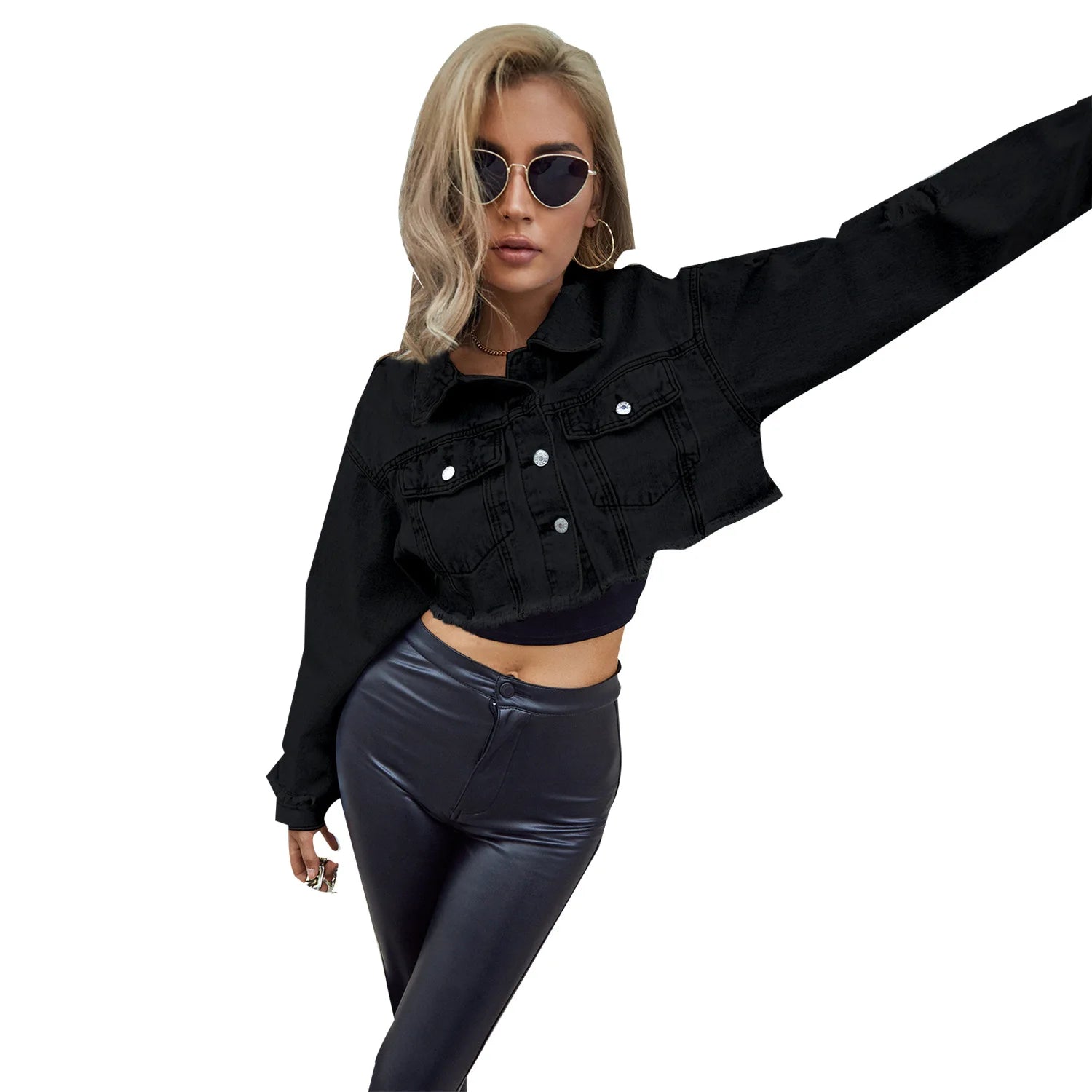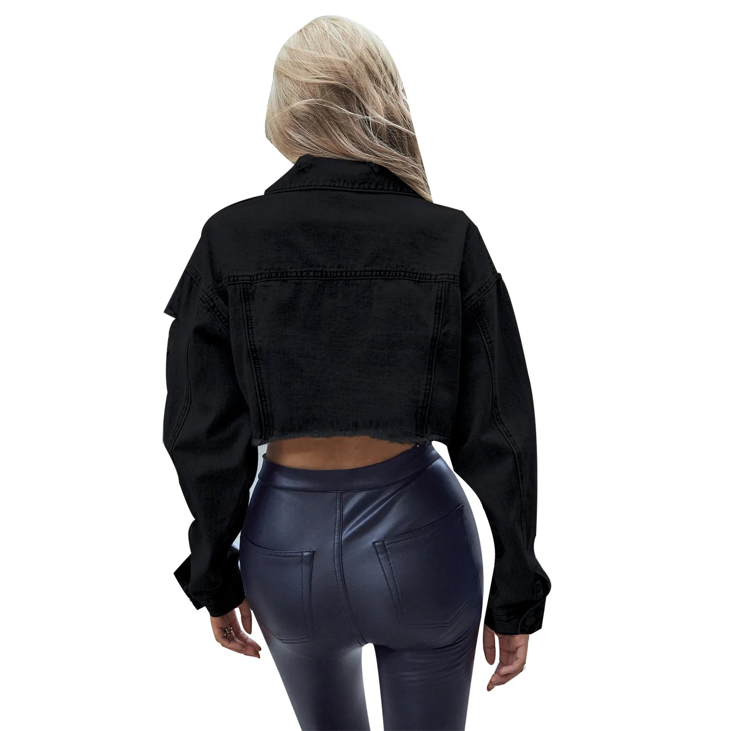 Women Clothing Single Breasted jeans Coat Long Sleeve Turn Down Washed Jackets Loose Fit Cardigan Streetwear Solid Pockets