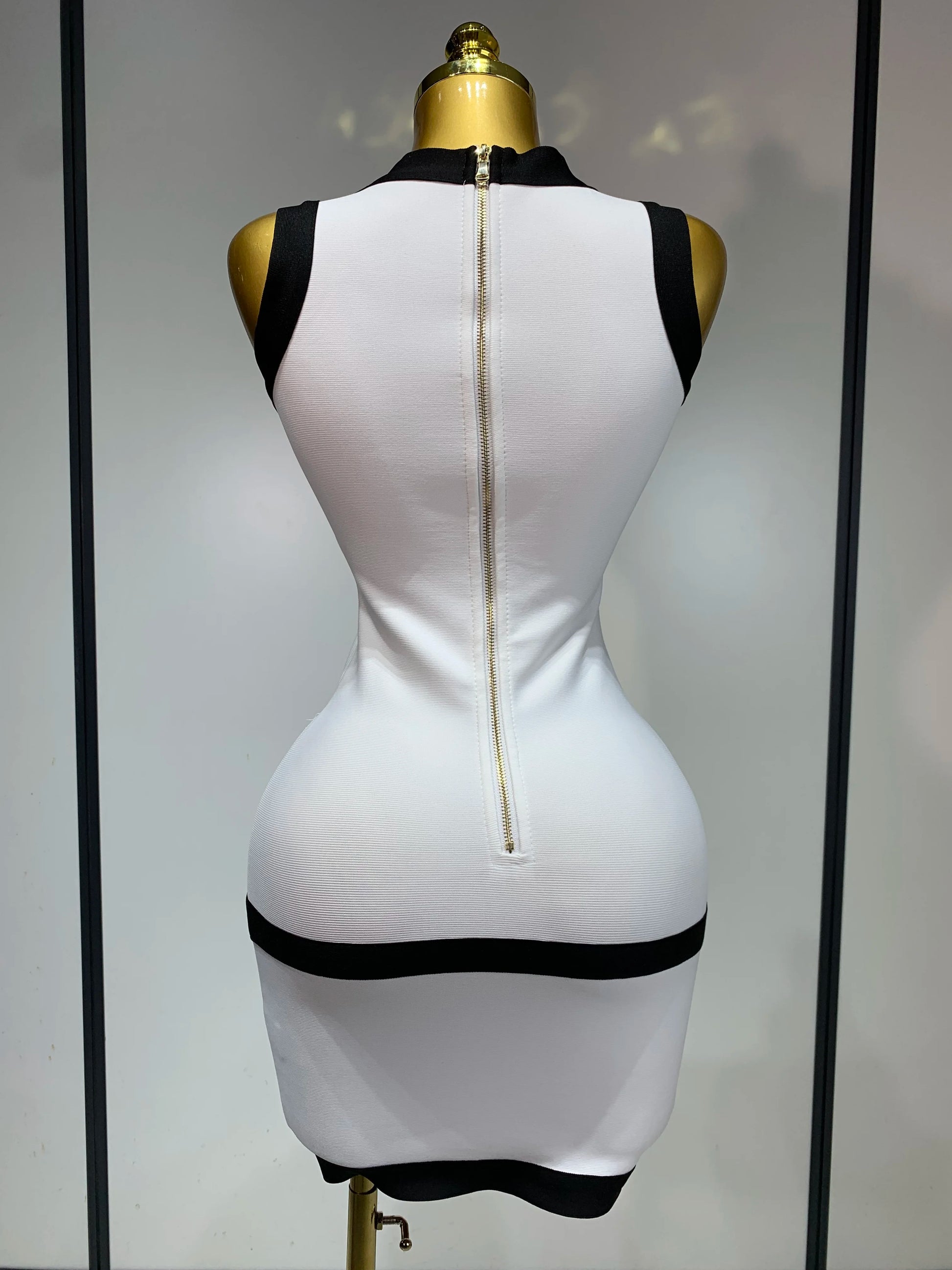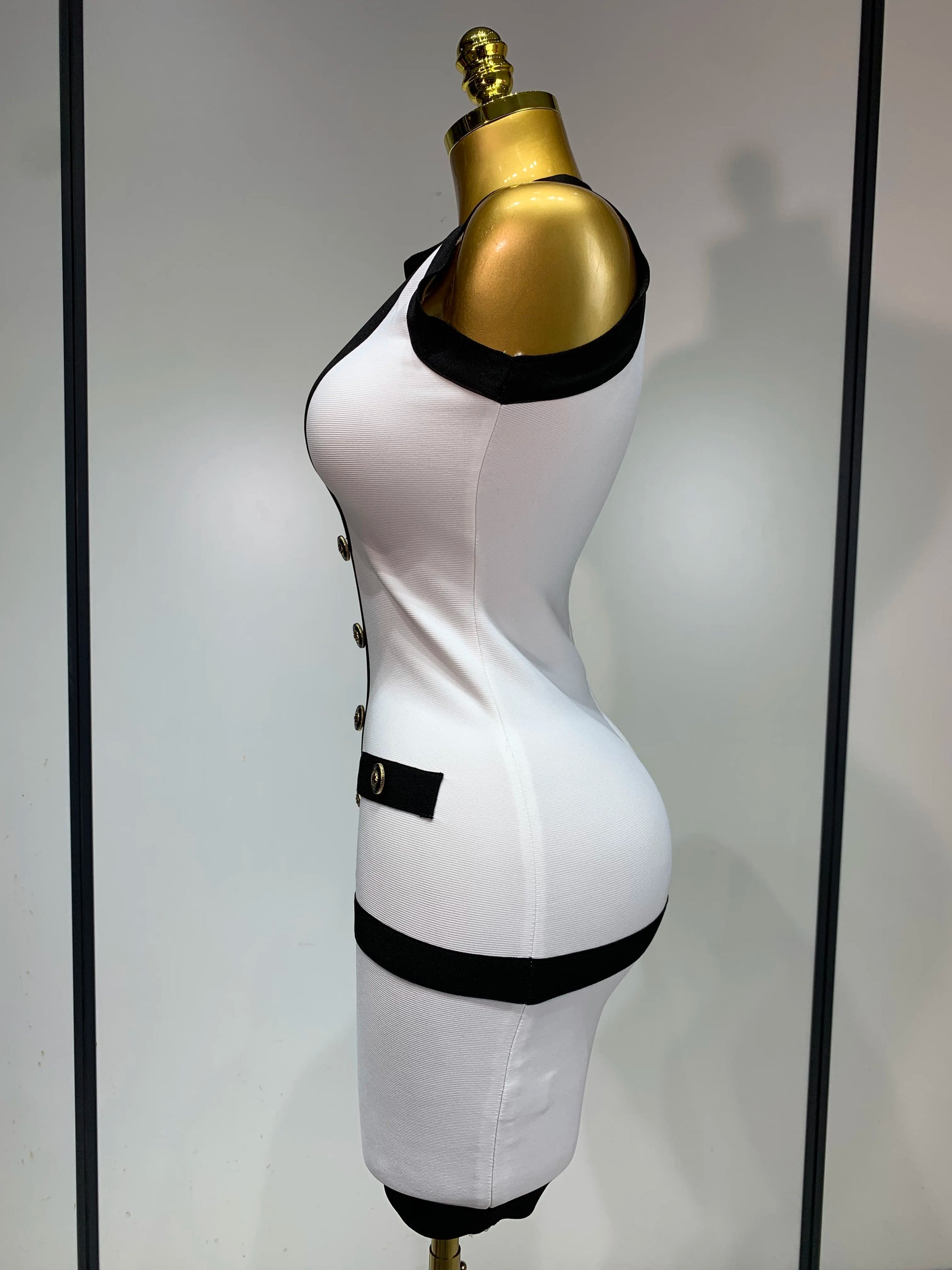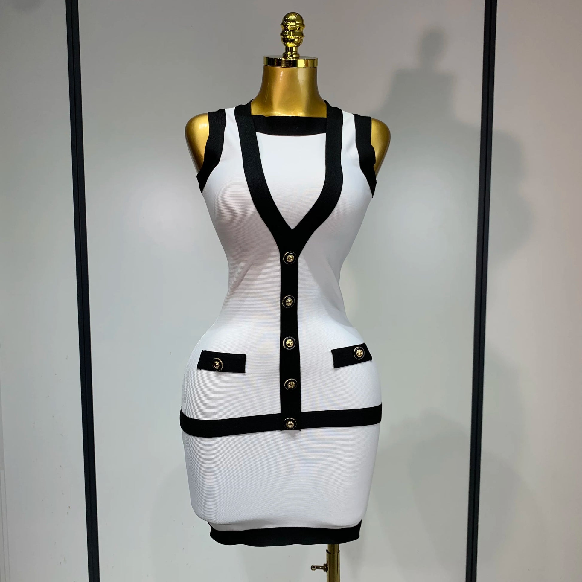 Women Sexy Backless Black White Button Mini Bandage Short Dress Celebrity Elegant Evening Party Holiday Club Dress