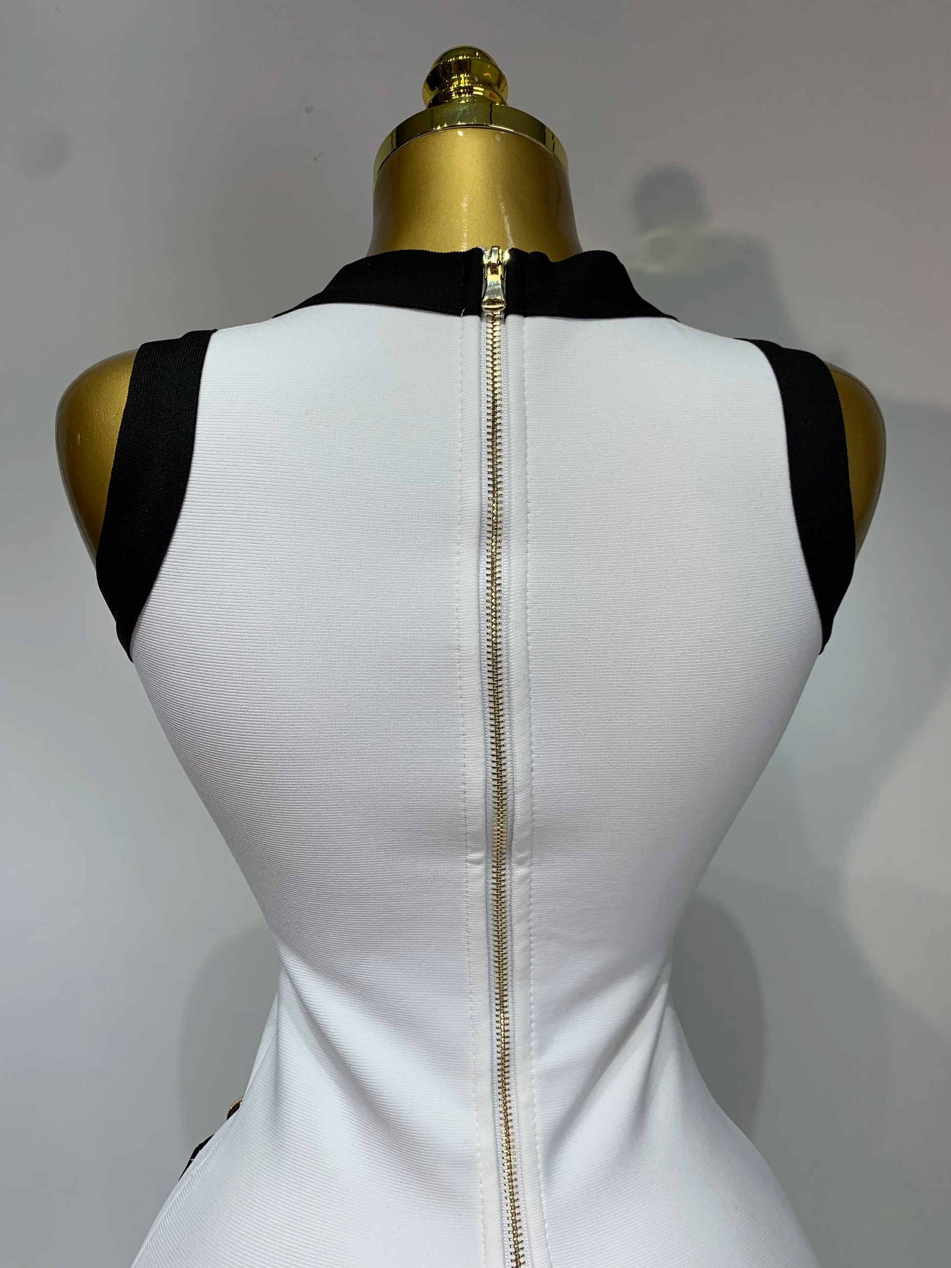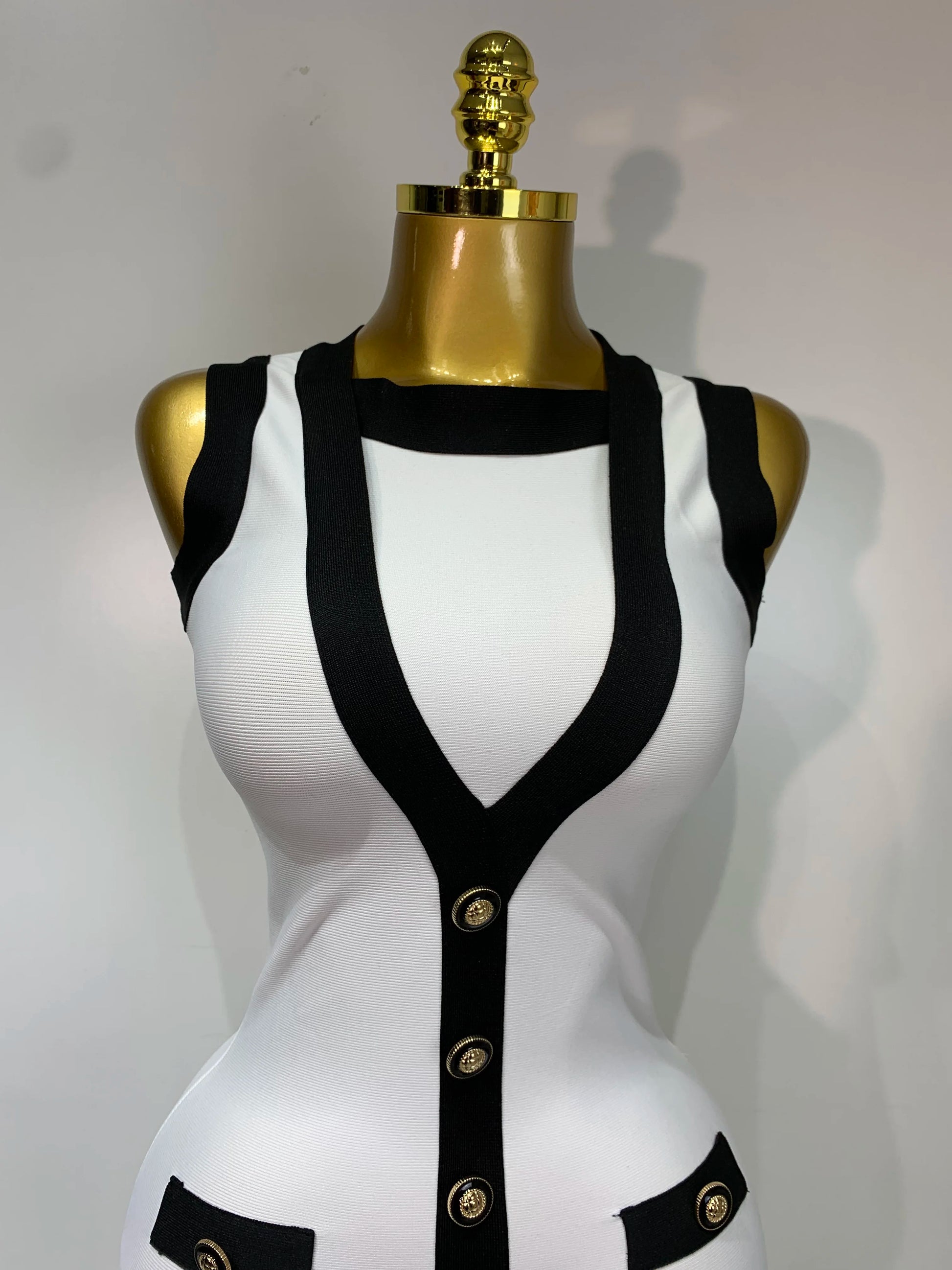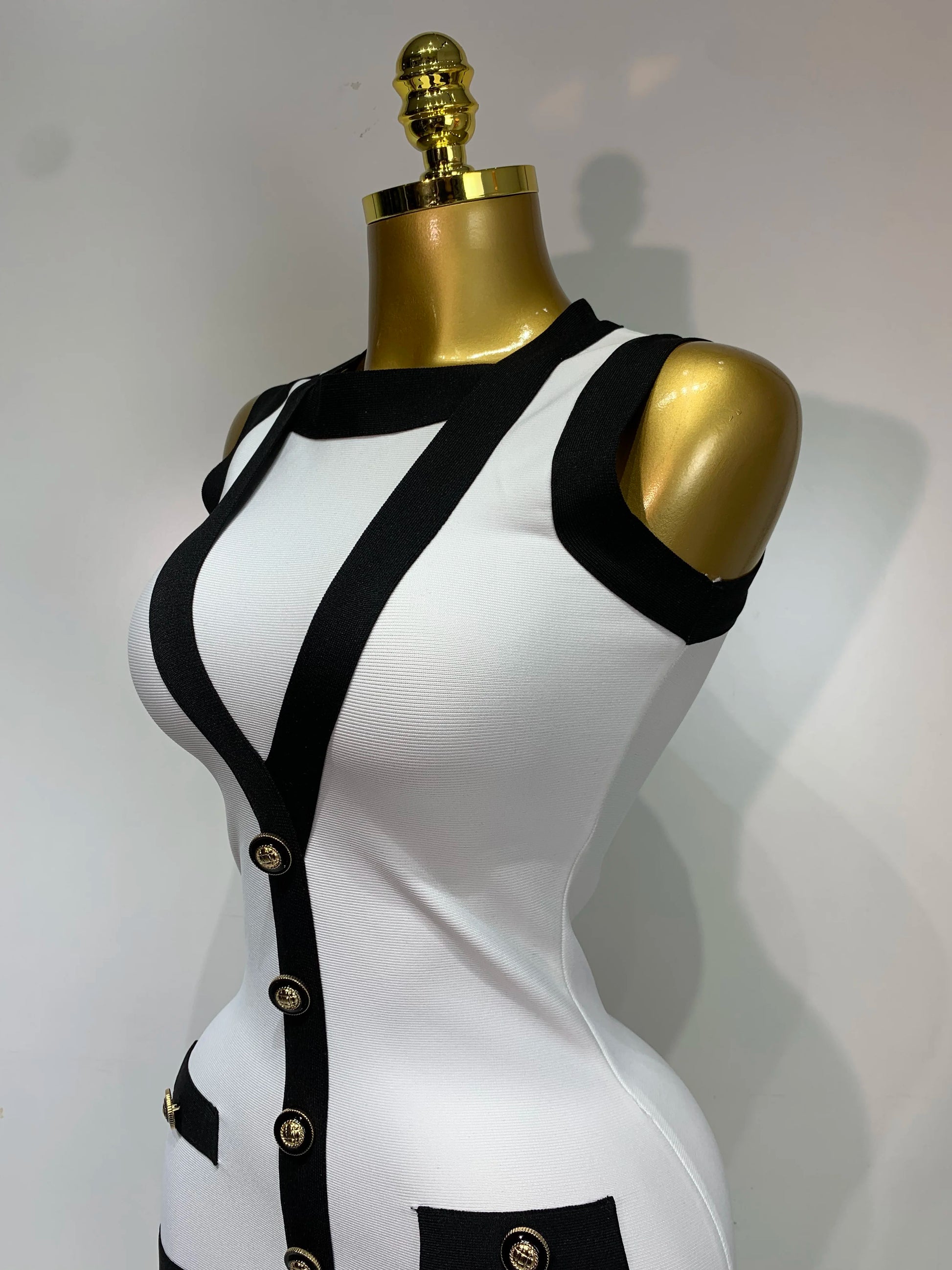 Women Sexy Backless Black White Button Mini Bandage Short Dress Celebrity Elegant Evening Party Holiday Club Dress