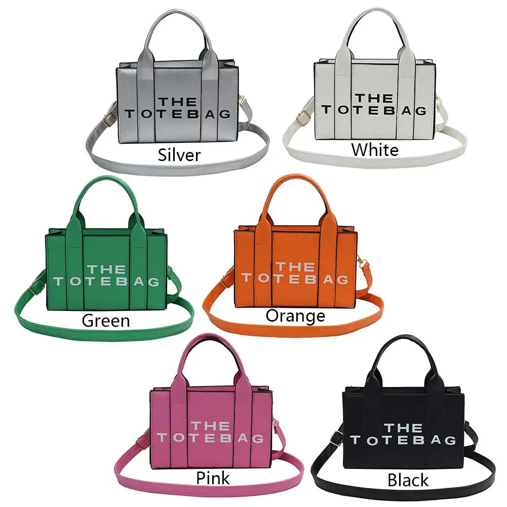 Women Ladies Tote Bag Contrast Letters Fashion Top-Handle Bags PU Leather Portable Casual Simple Female Satchel