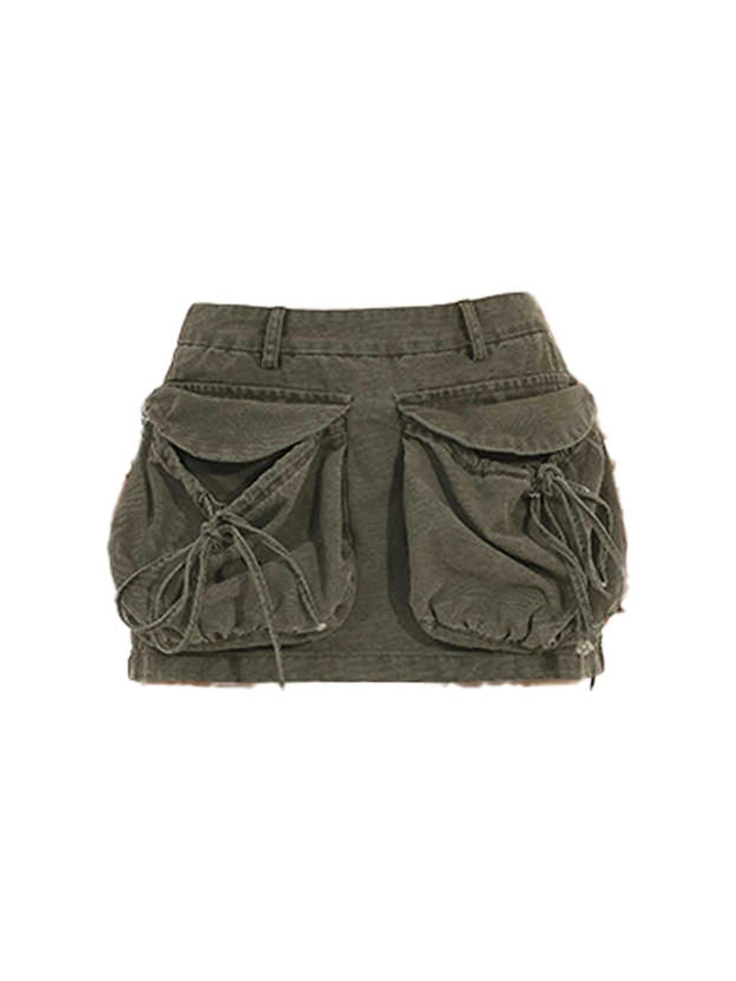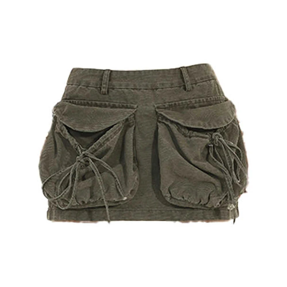 Women's Army Green A-line Cargo Skirt Vintage Y2k Gyaru Mini Cowboy Skirts Harajuku Short Skirts 2000s Clothes 2025 Summer
