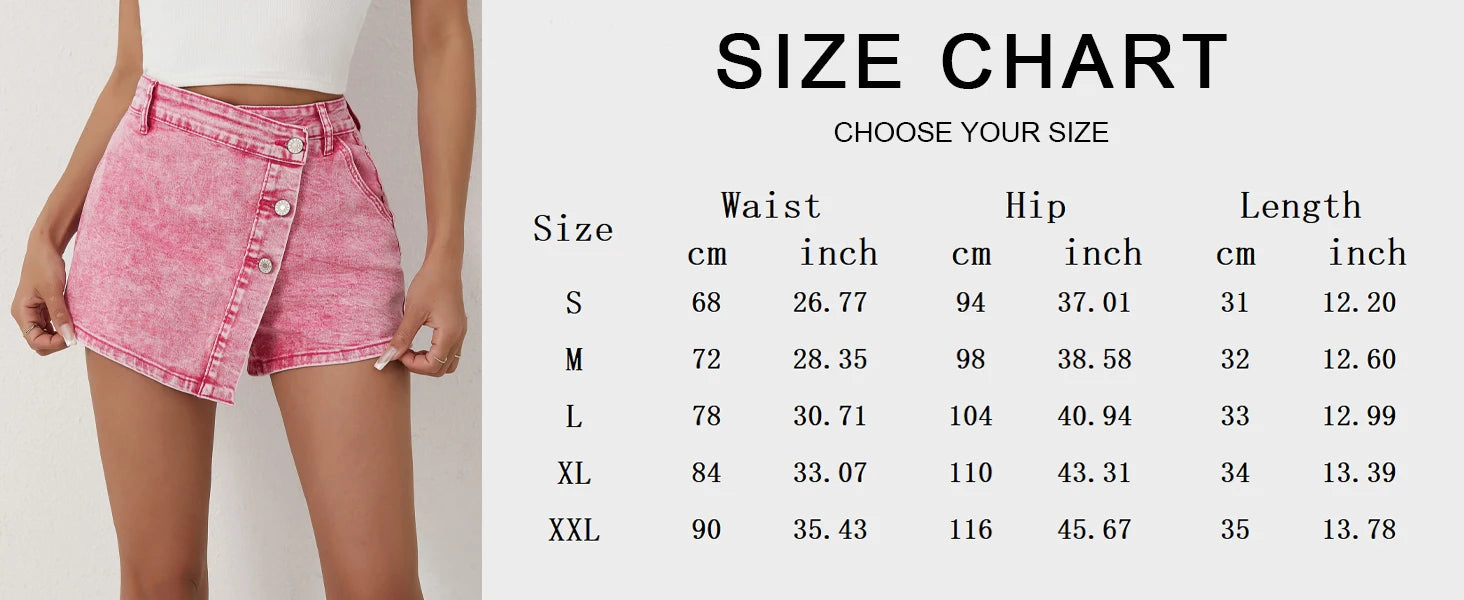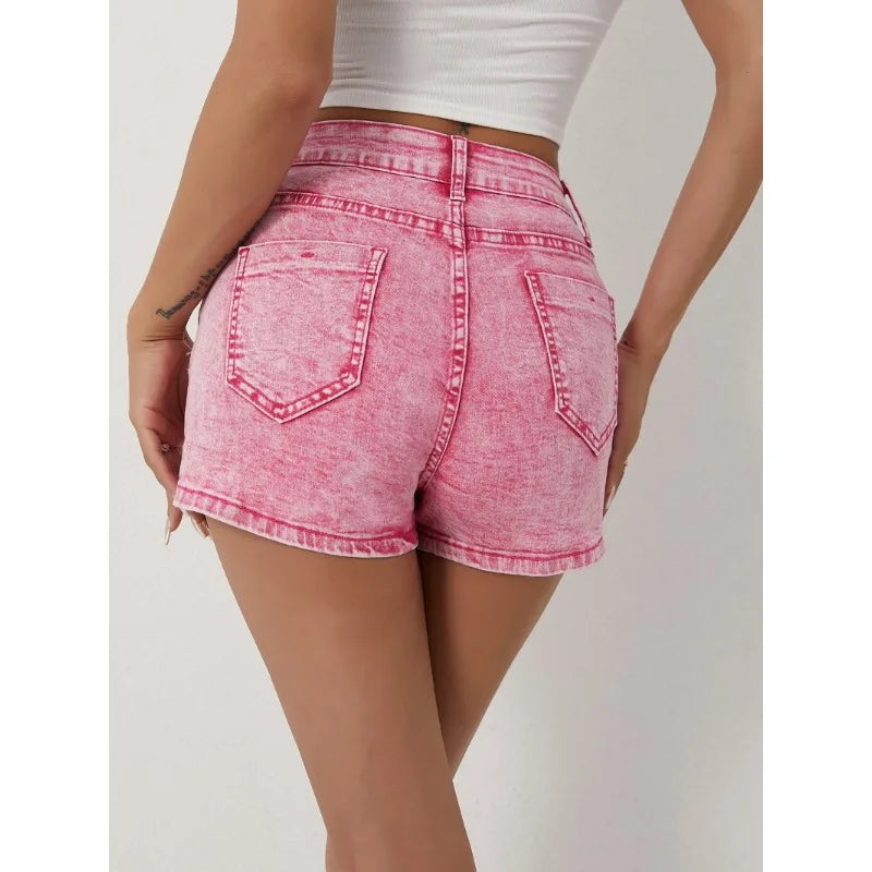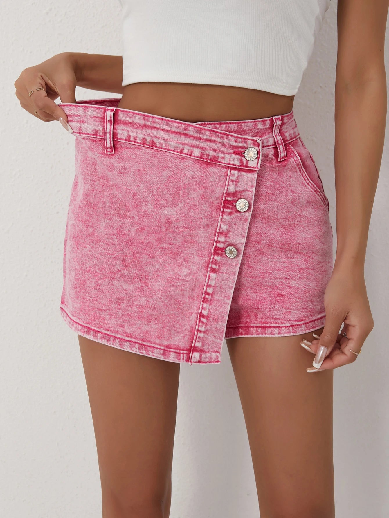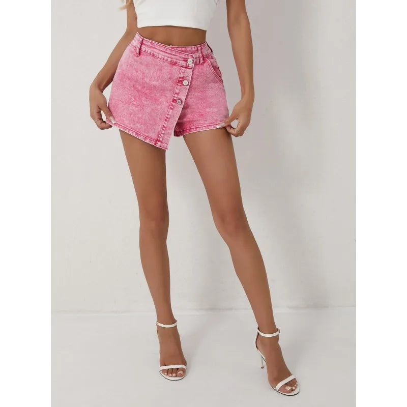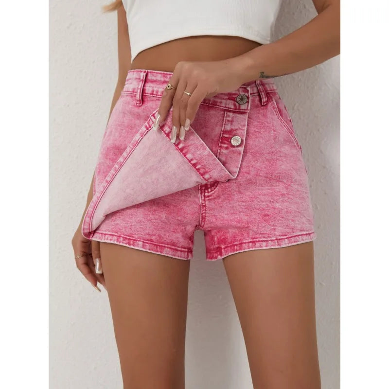 Ladies Shorts Casual Fashion Style High Waisted Pants with Asymmetrical Buttons 2025 New Pink Jeans